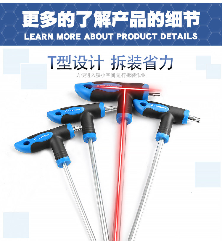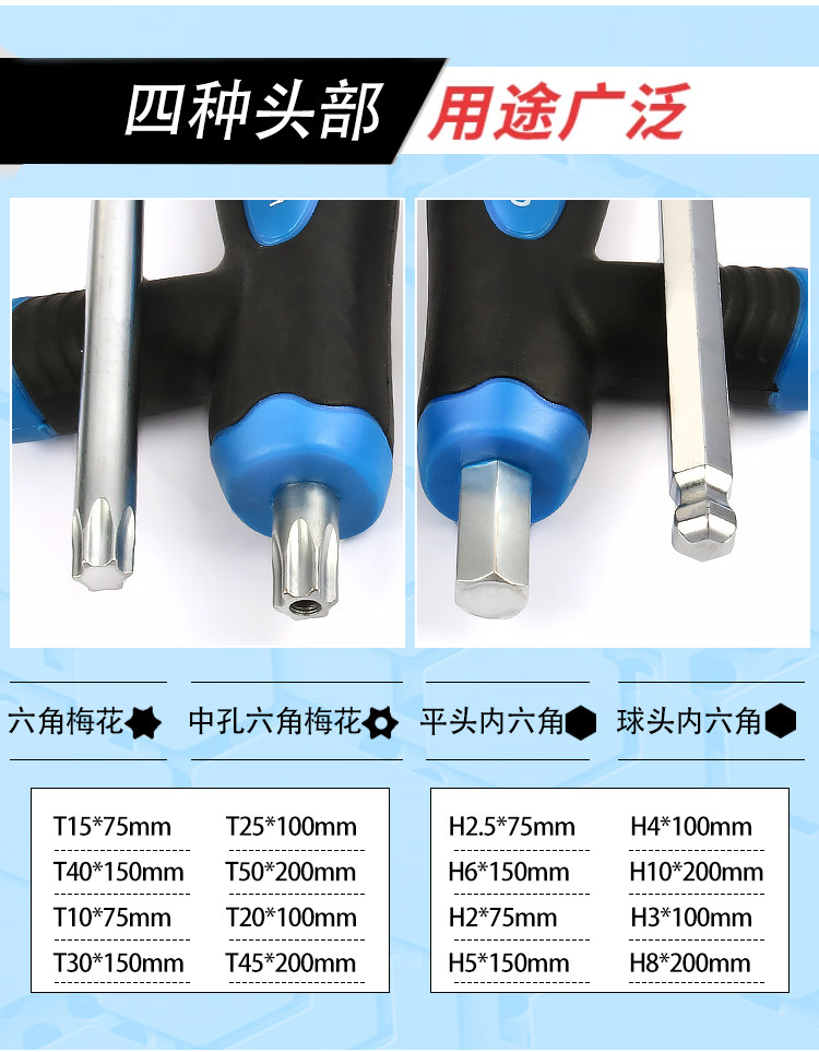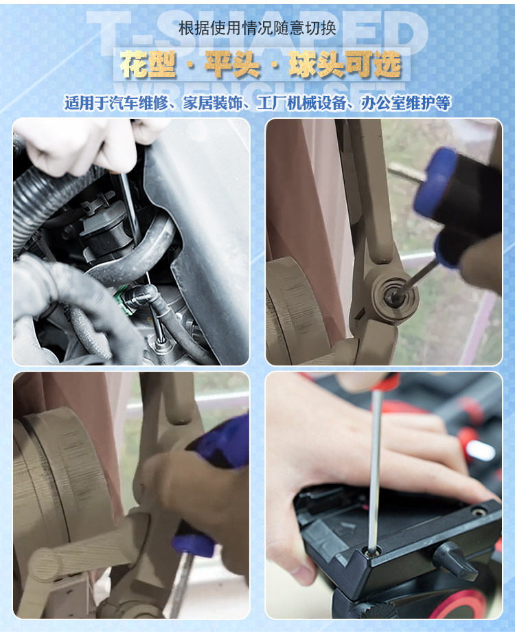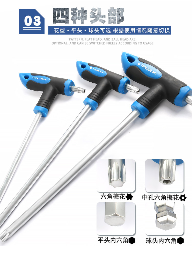 T-Shaped Hex Key Wrench 6-Point Square T-Handle Extended Ball Head Flat Head Wrench Screwdriver Tool