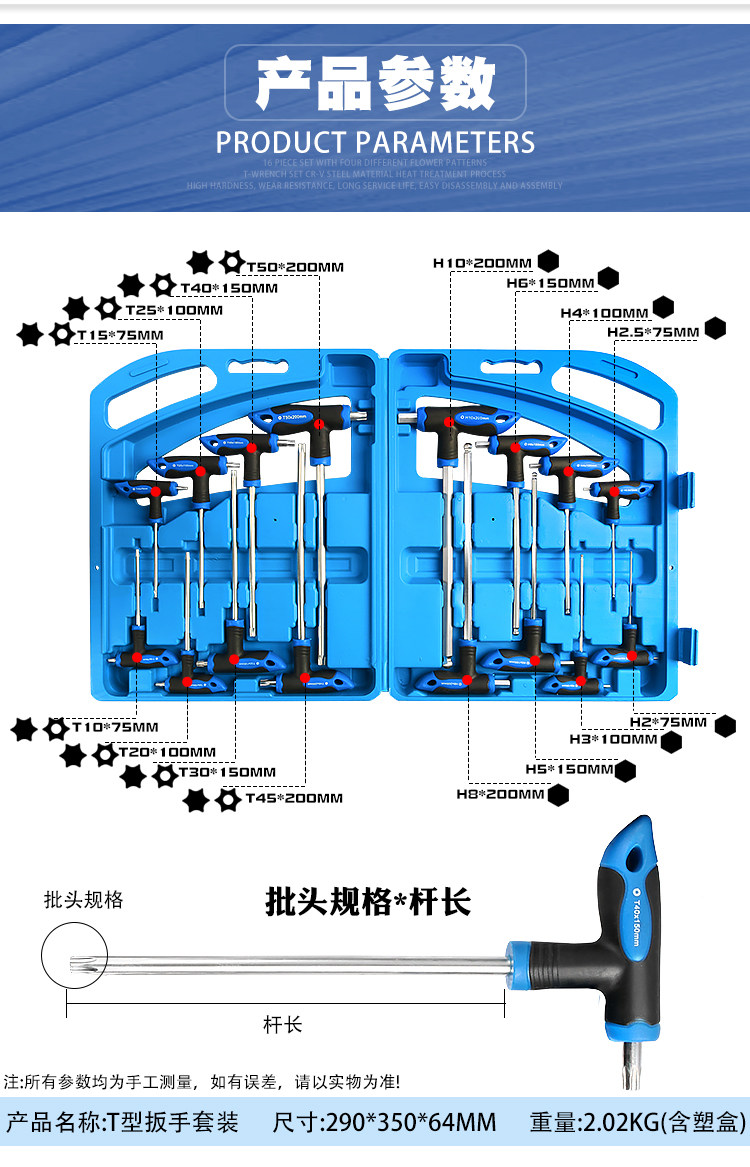 Color Classification 16 Pieces T-Type Wrenches (Blue Box)