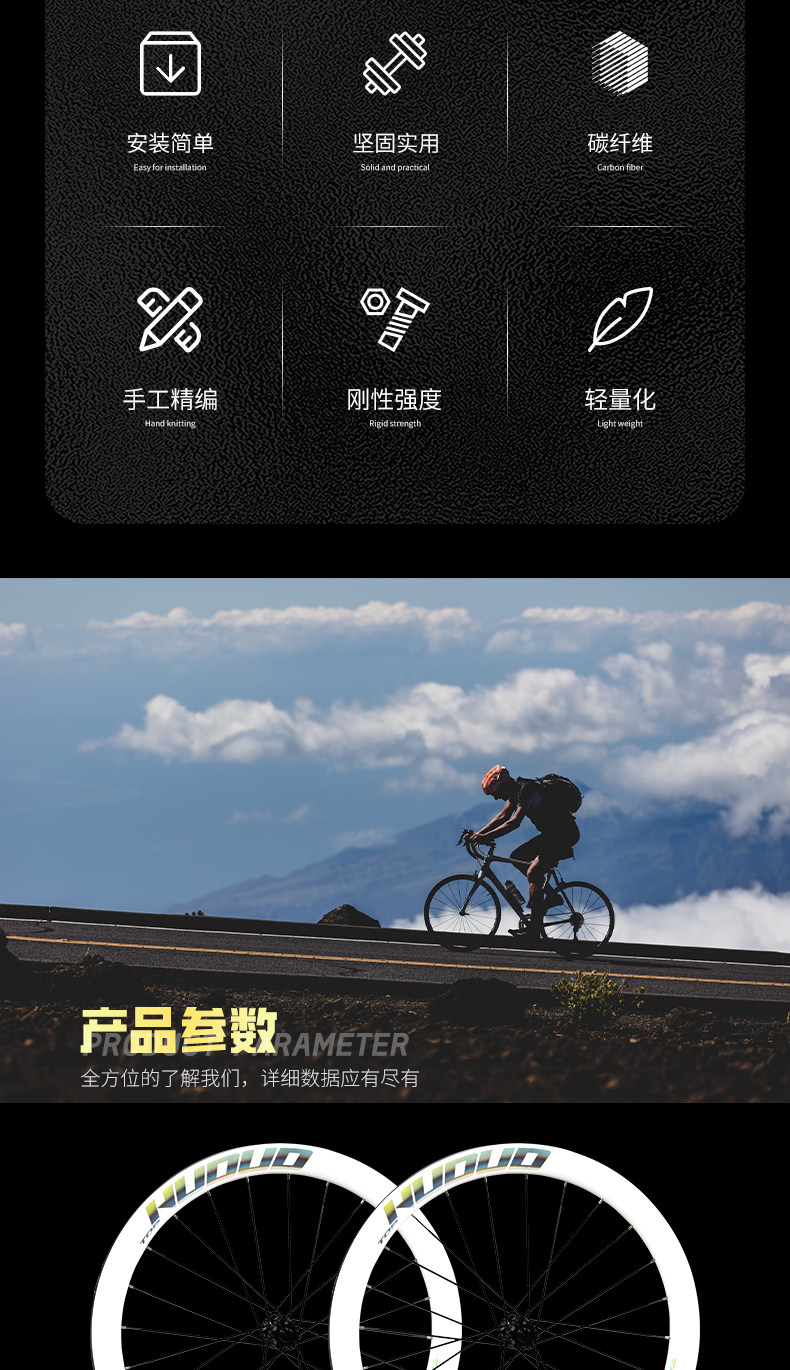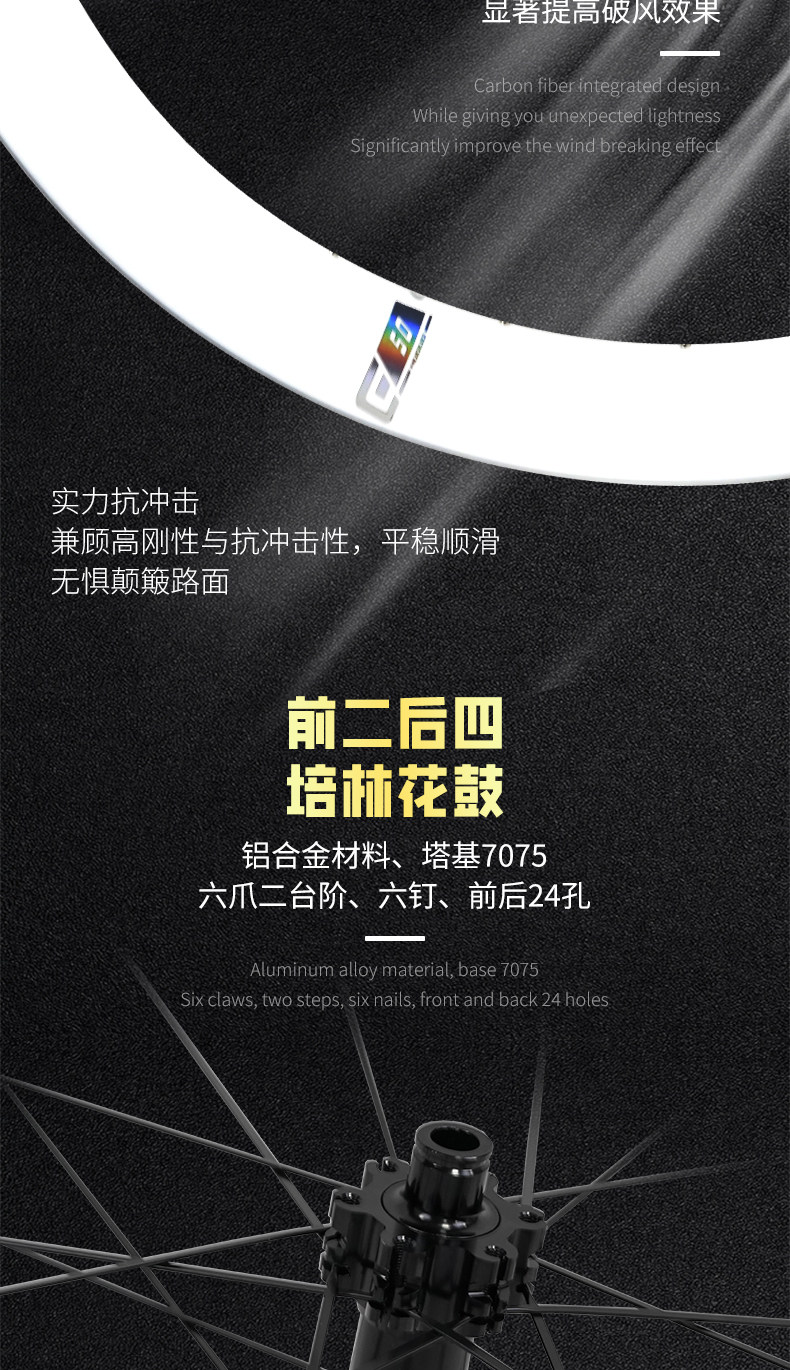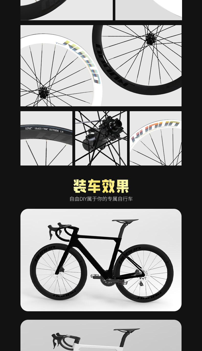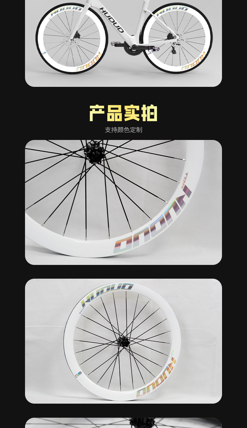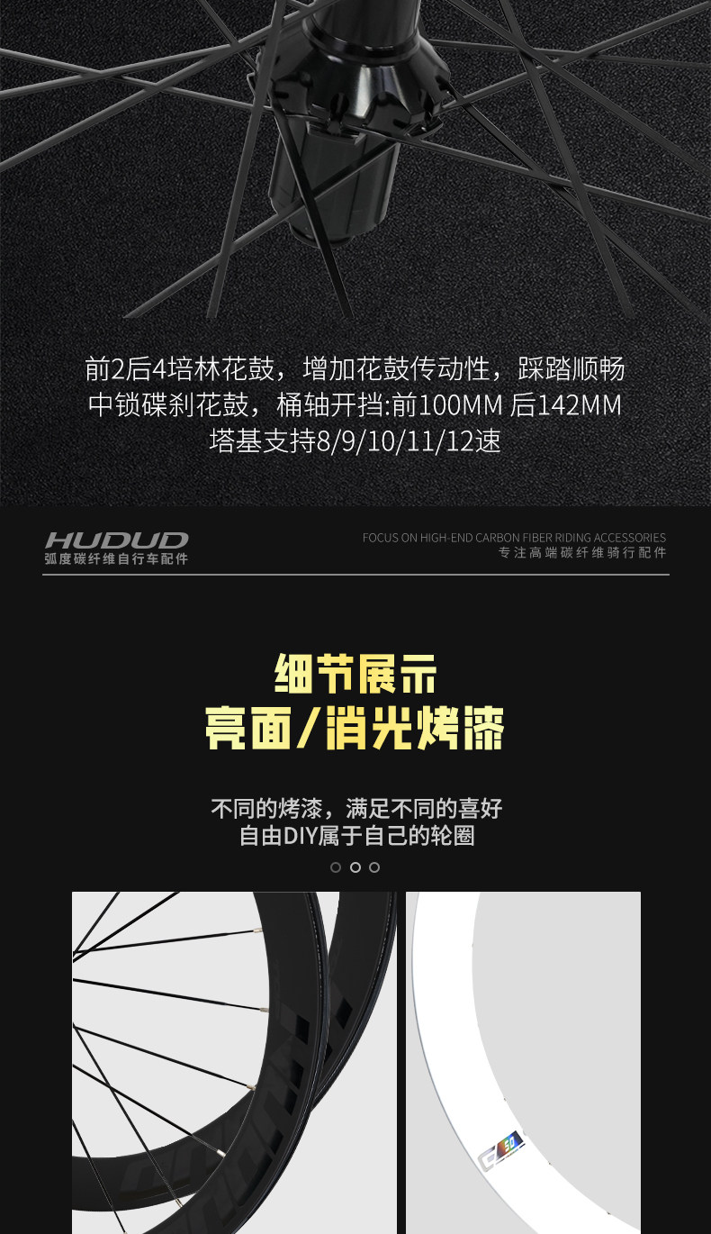 Hudud Curved Road Bike Carbon Fiber Wheelset Thru-Axle Disc Brake 50mm Frame Height 700C Carbon Blade Rim Hub