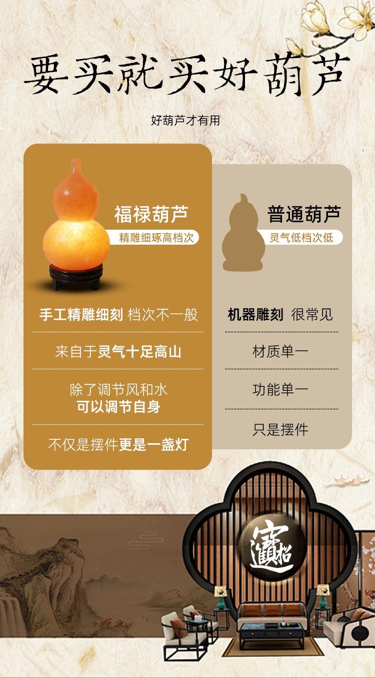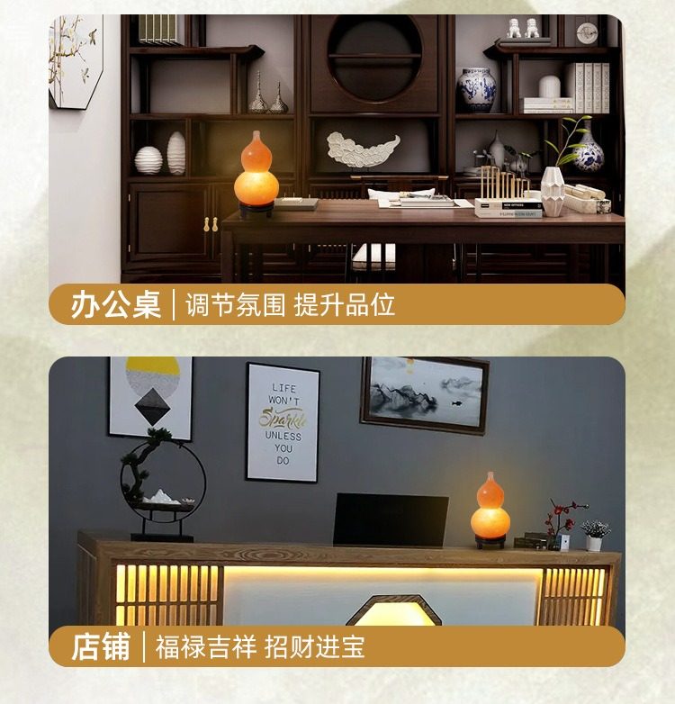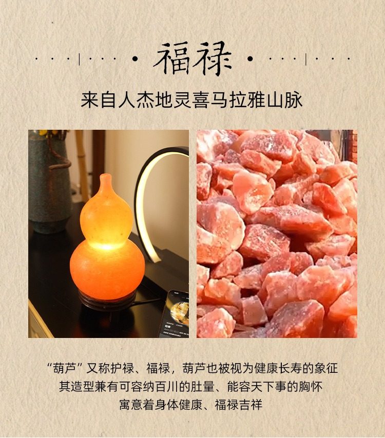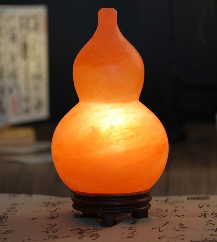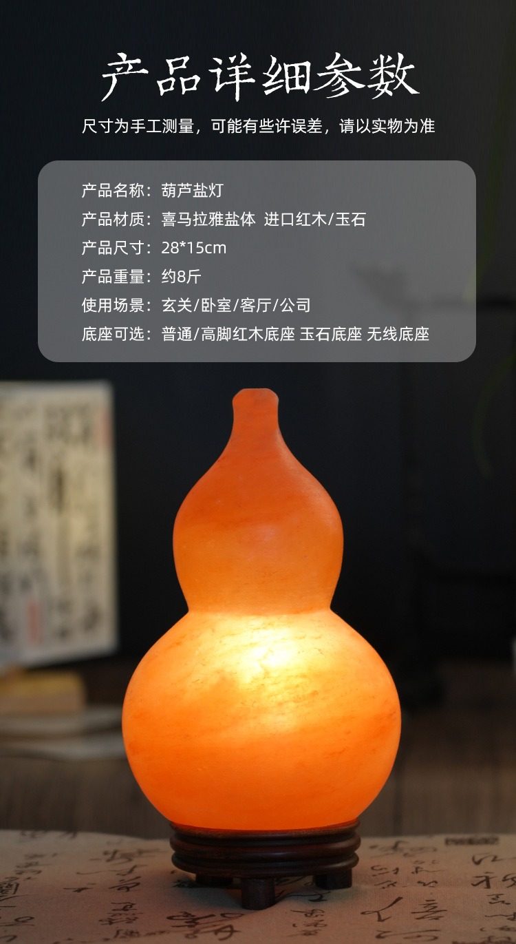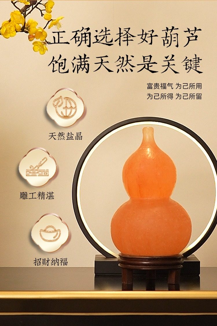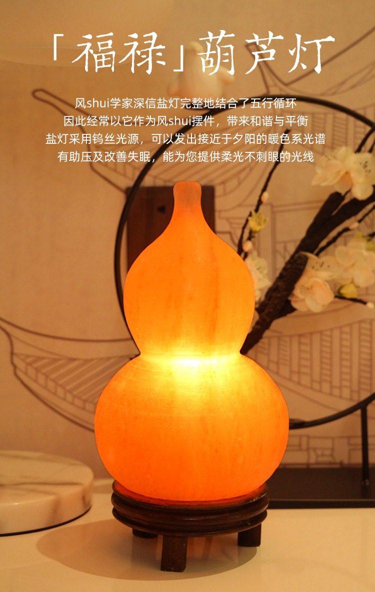 Gourd Salt Lamp, Himalayan Natural Crystal Everlasting Lamp, Bedroom Feng Shui Table Lamp, Living Room Fortune-Attracting Ornament, Night Light