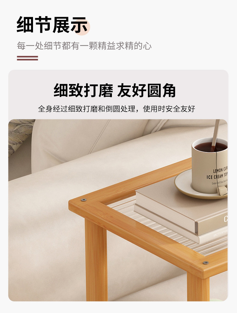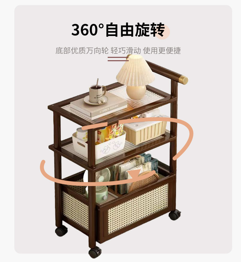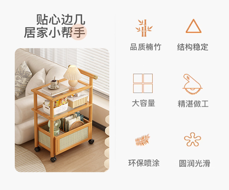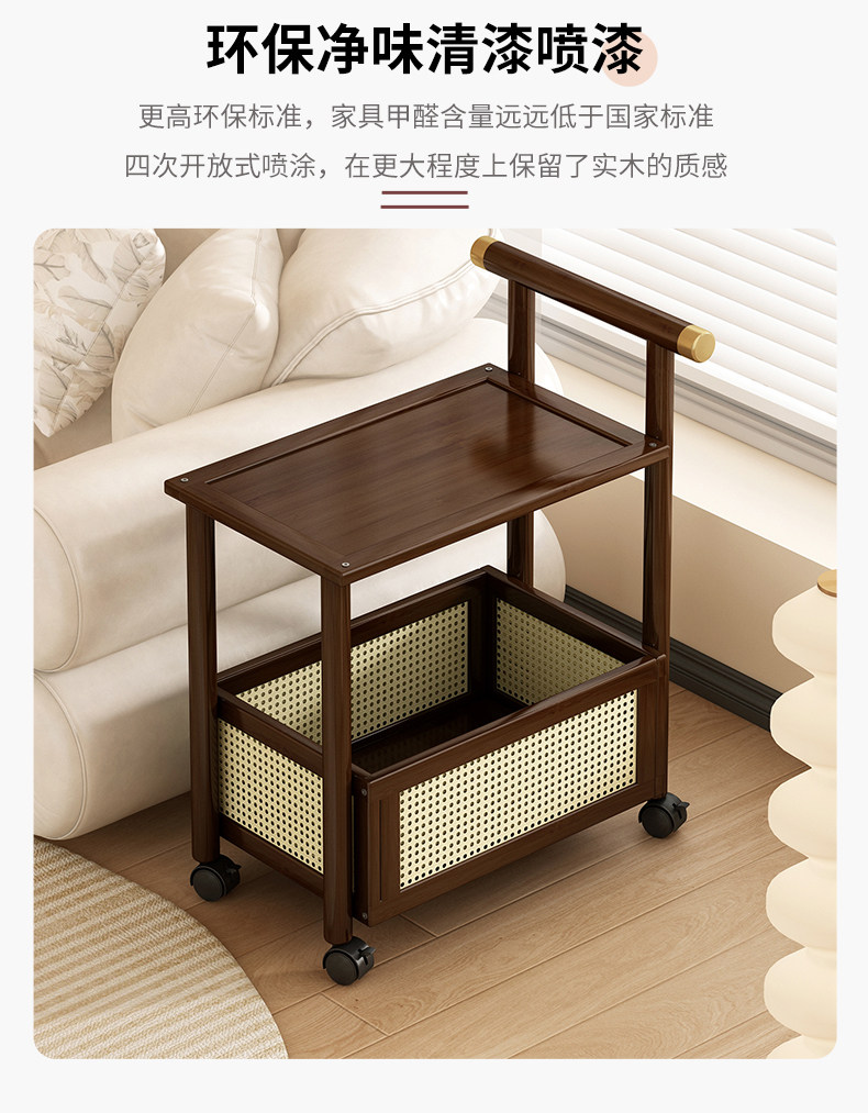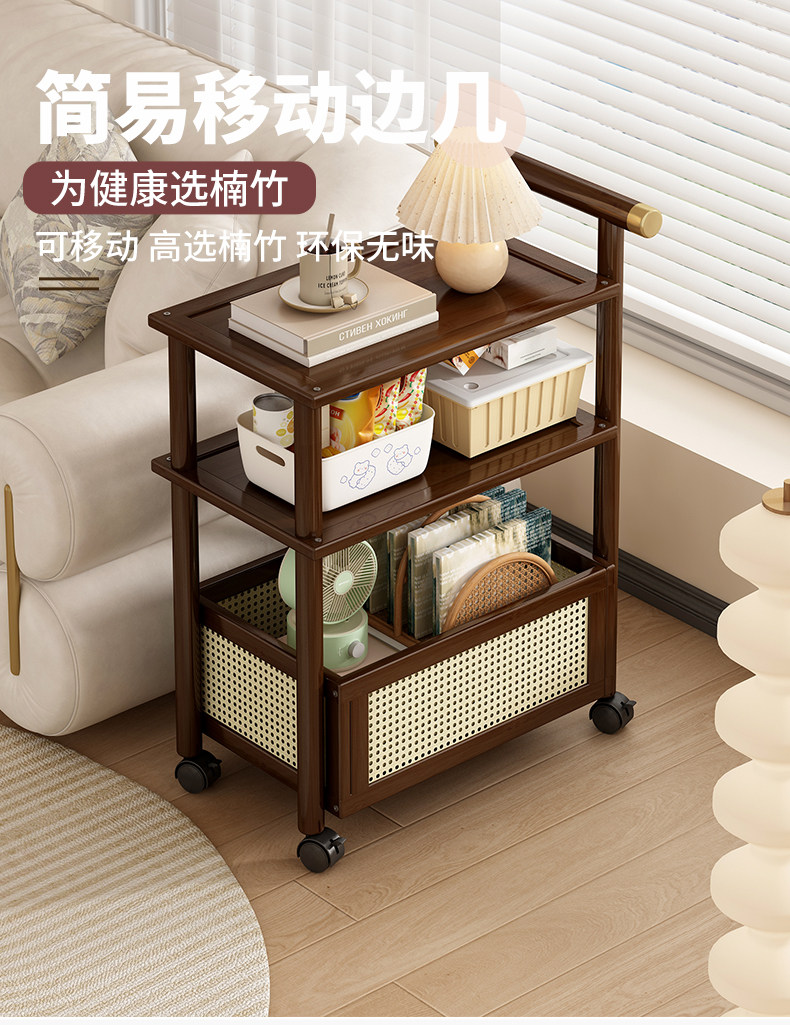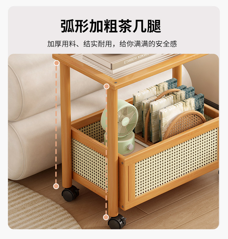 Mobile Japanese-Style Small Coffee Table, Simple Living Room Sofa Side Table with Wheels, Household Small Square Table, Bedside Storage Rack