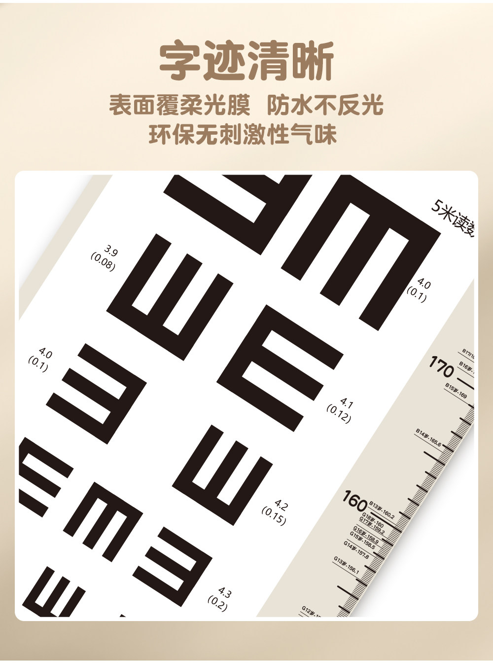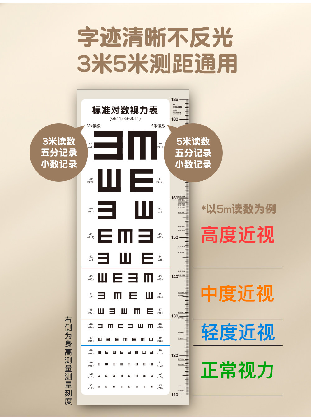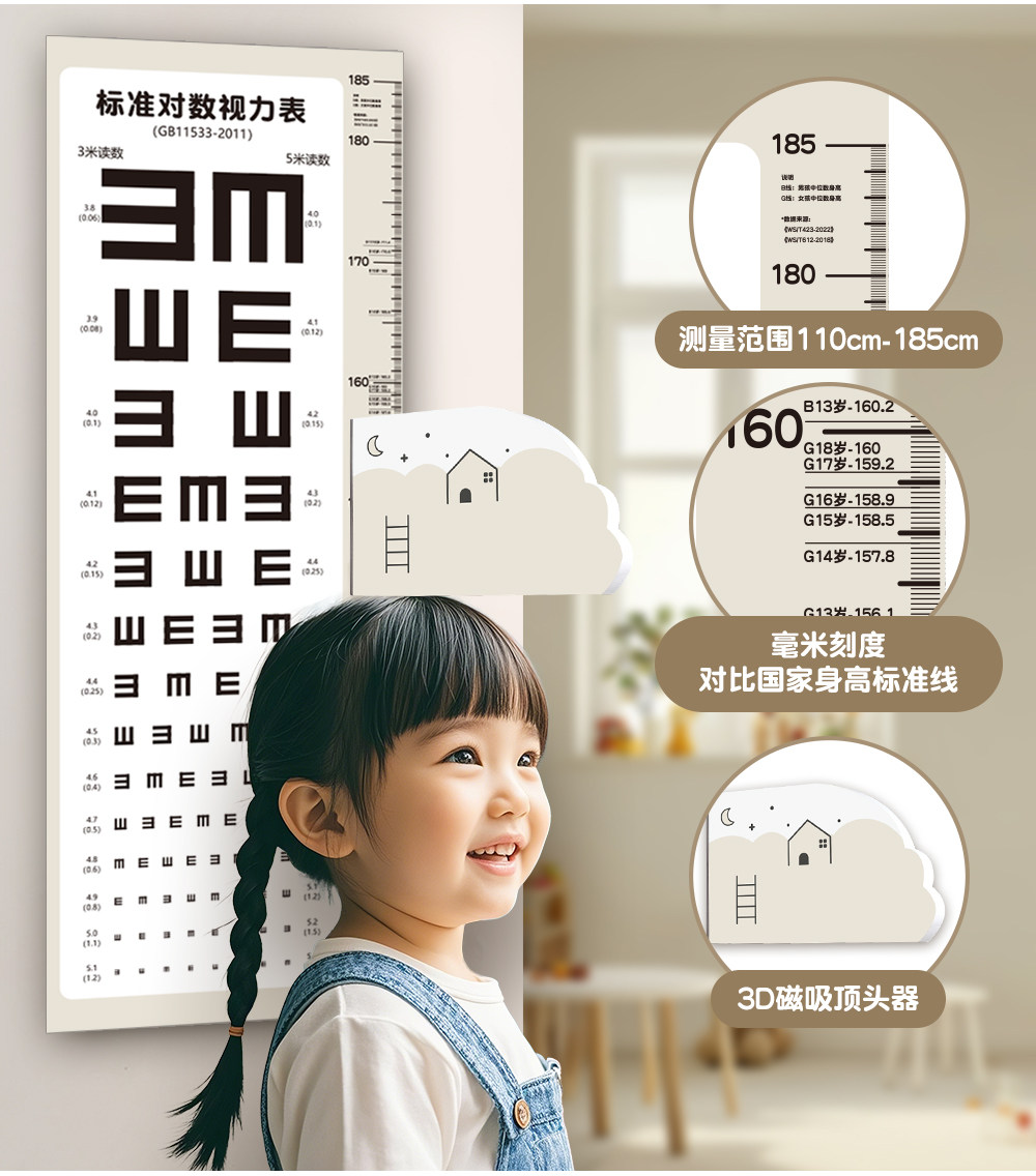Vision chart and height sticker 2-in-1 international standard household standard vision test chart children's height measurement wall sticker