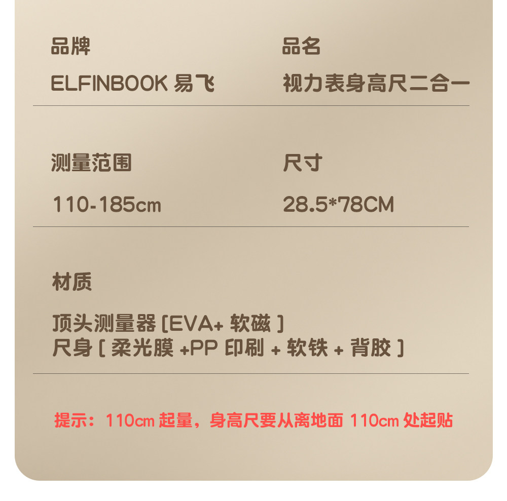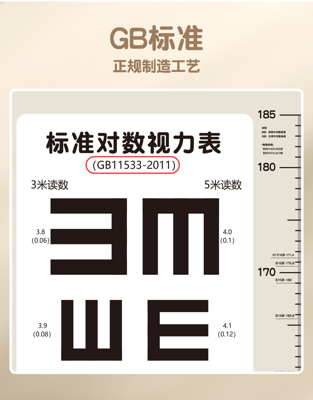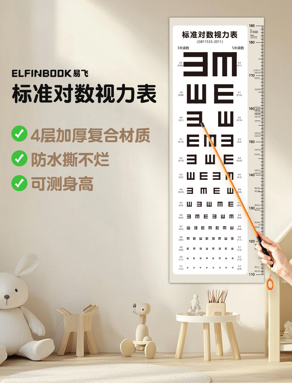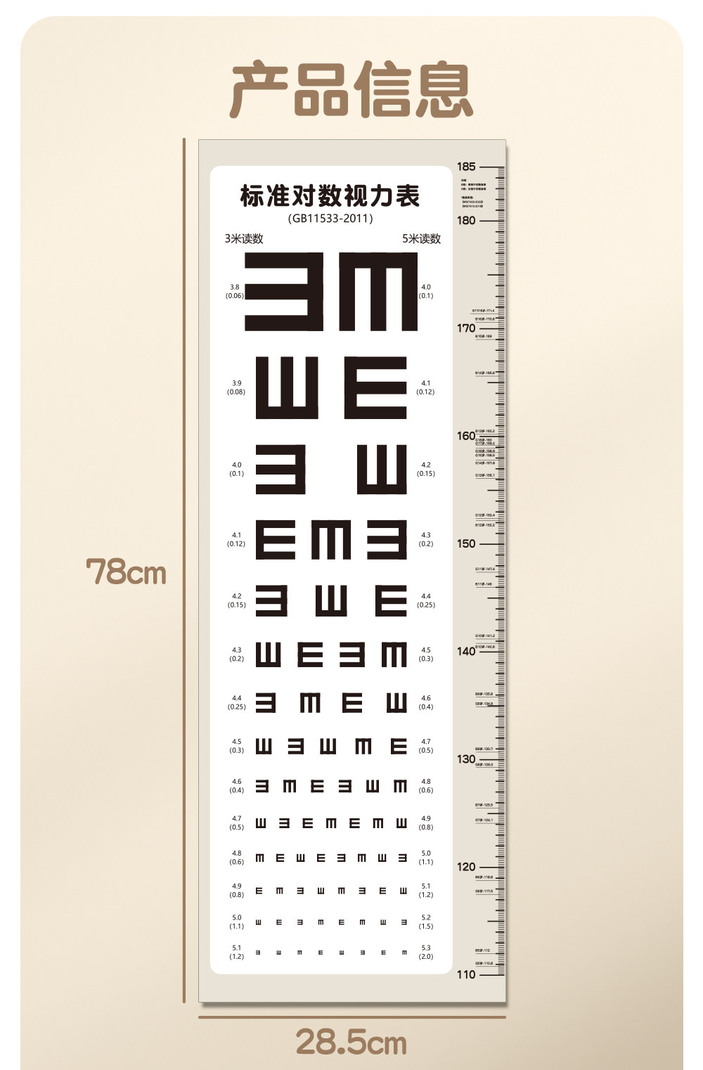 Vision chart and height sticker 2-in-1 international standard household standard vision test chart children's height measurement wall sticker