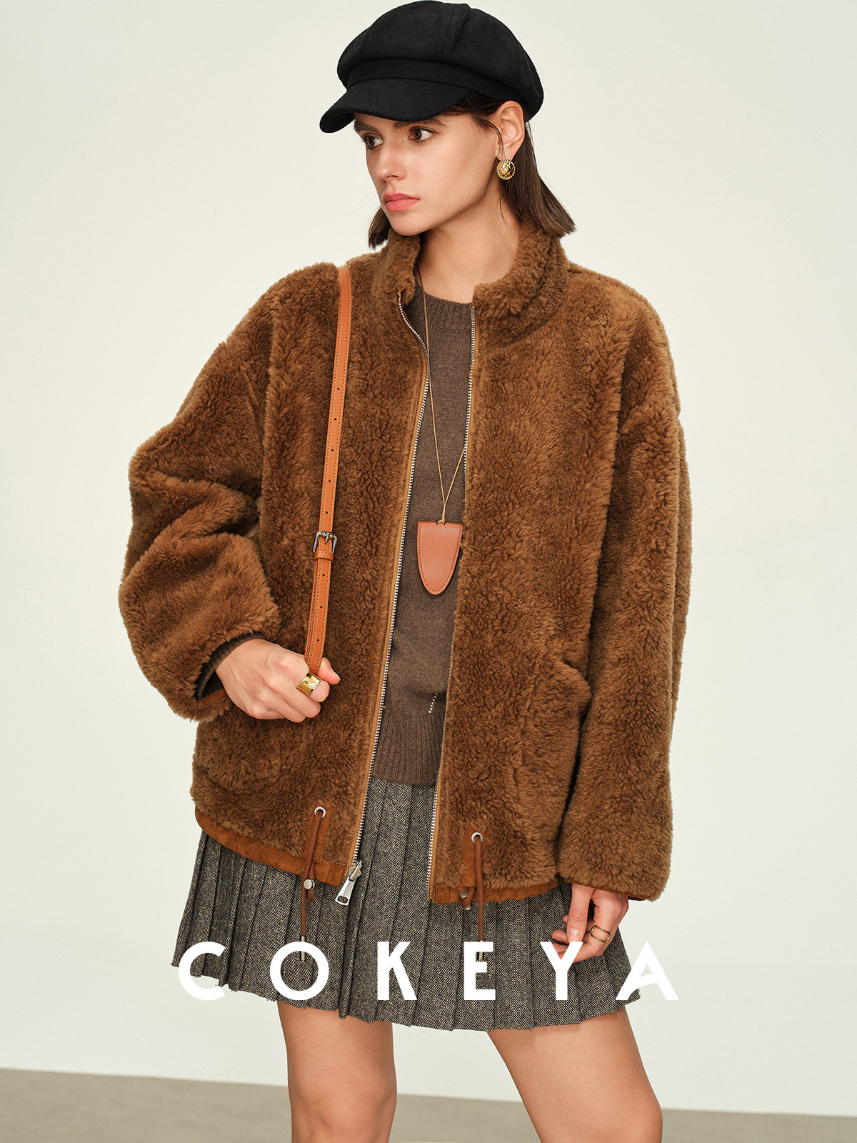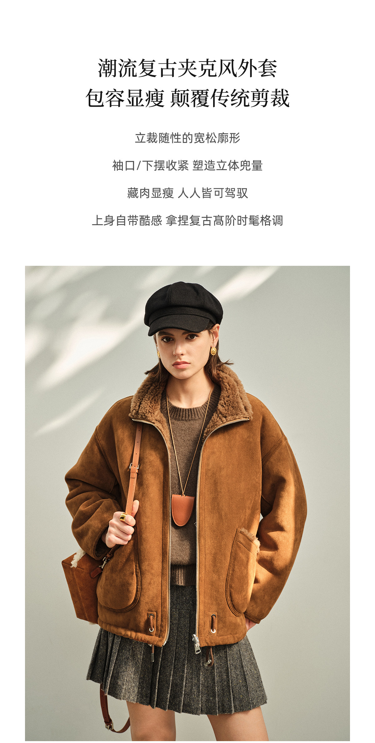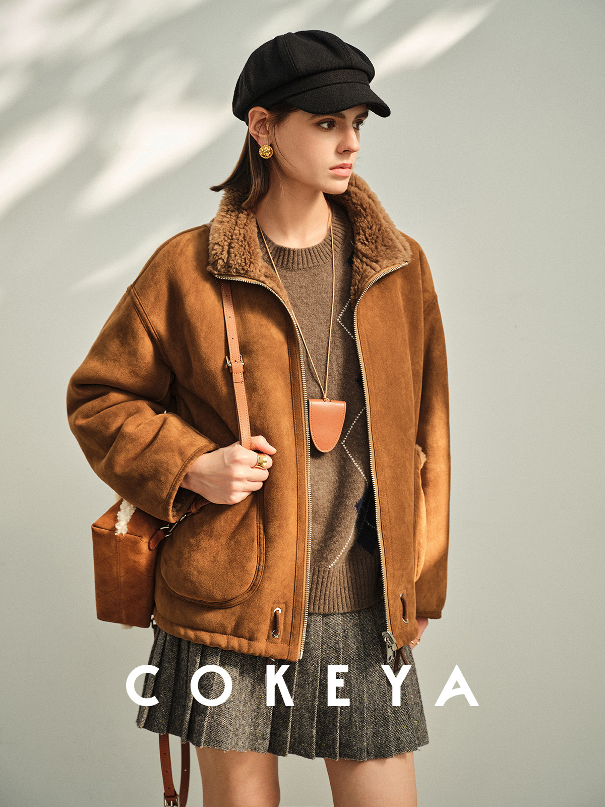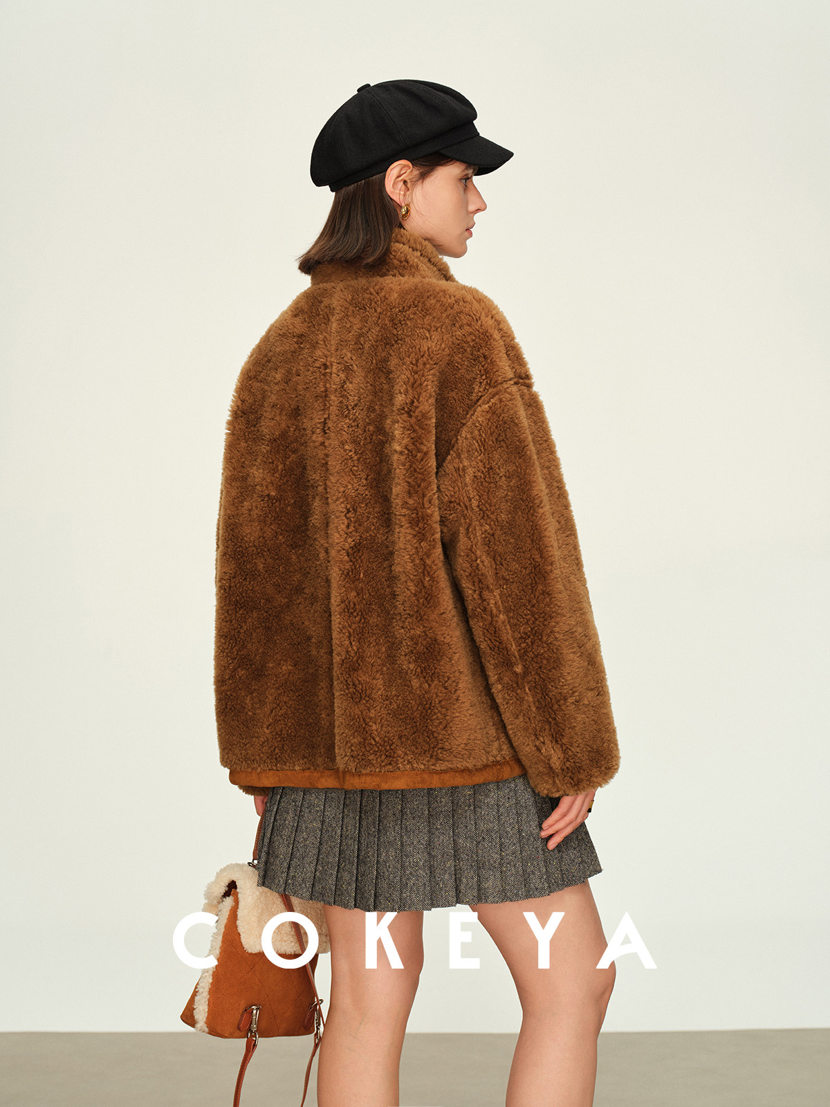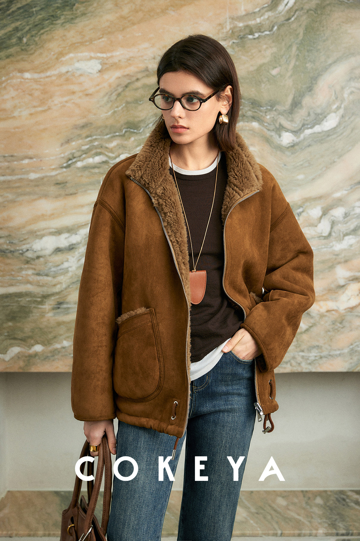 Cokeya/Coffee-Colored Melard~ Suede Lambskin Fur Integrated Reversible Thickened Fur Jacket for Women
