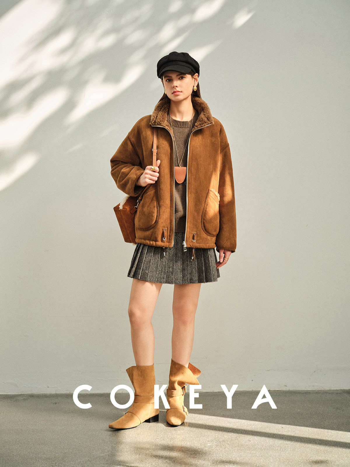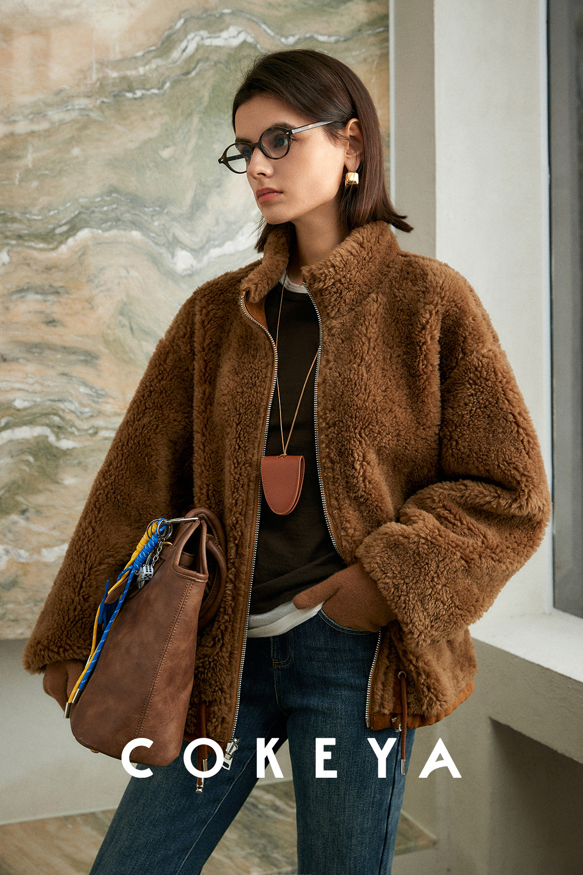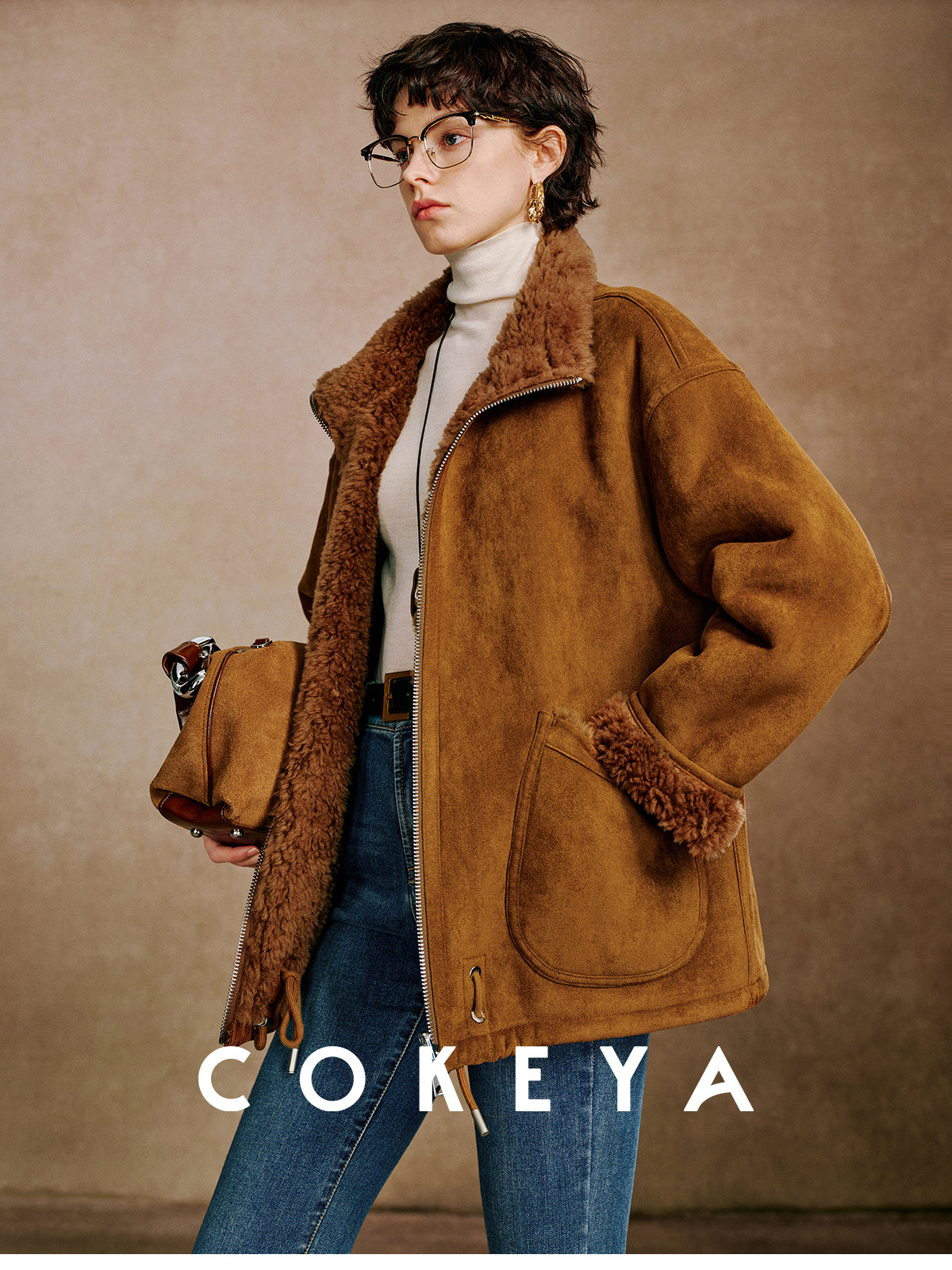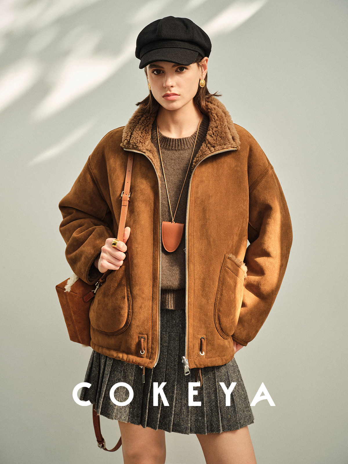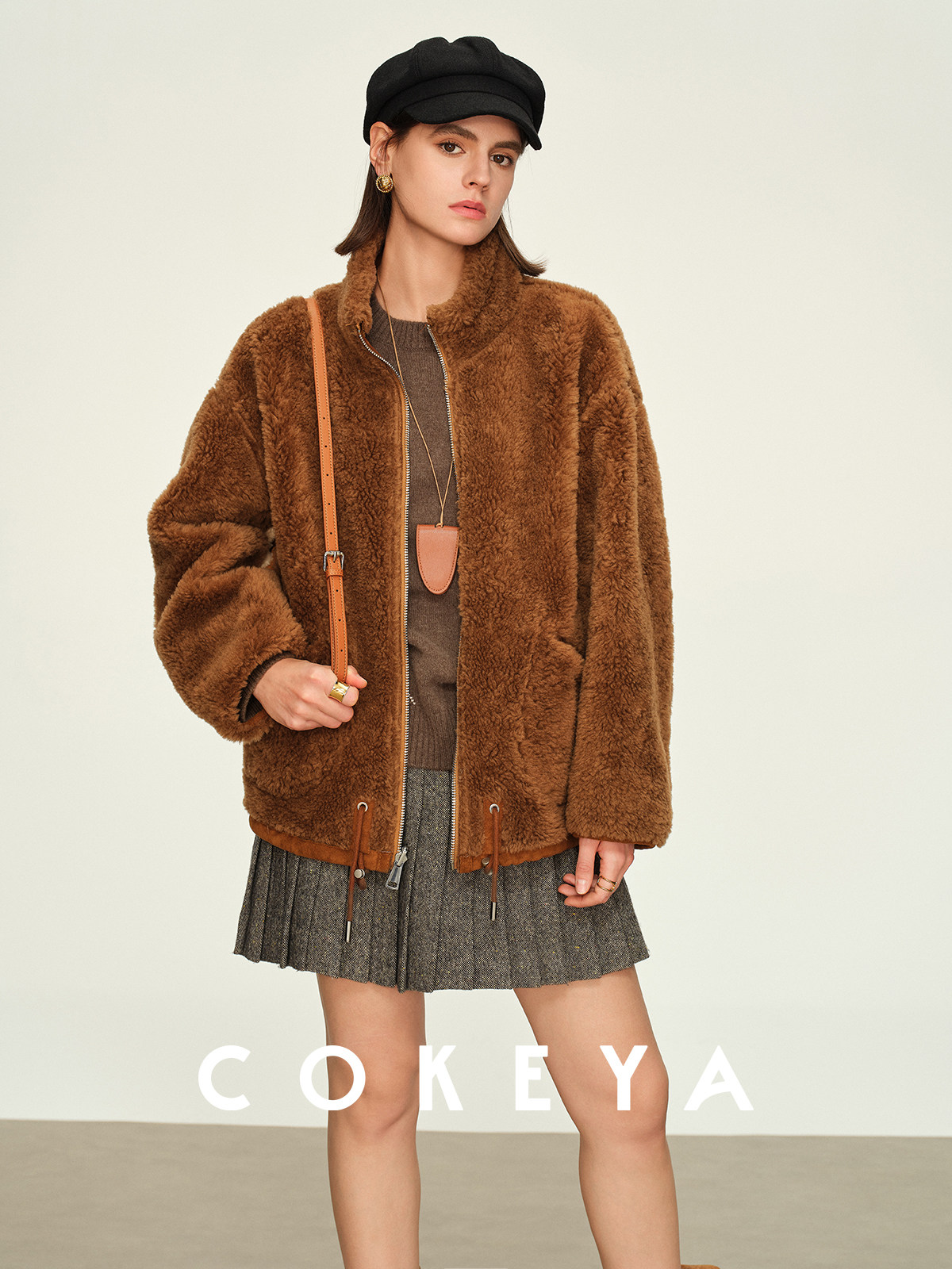 Cokeya/Coffee-Colored Melard~ Suede Lambskin Fur Integrated Reversible Thickened Fur Jacket for Women