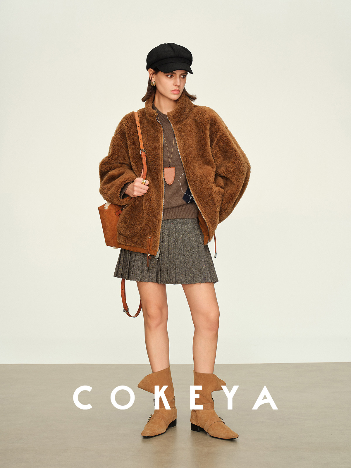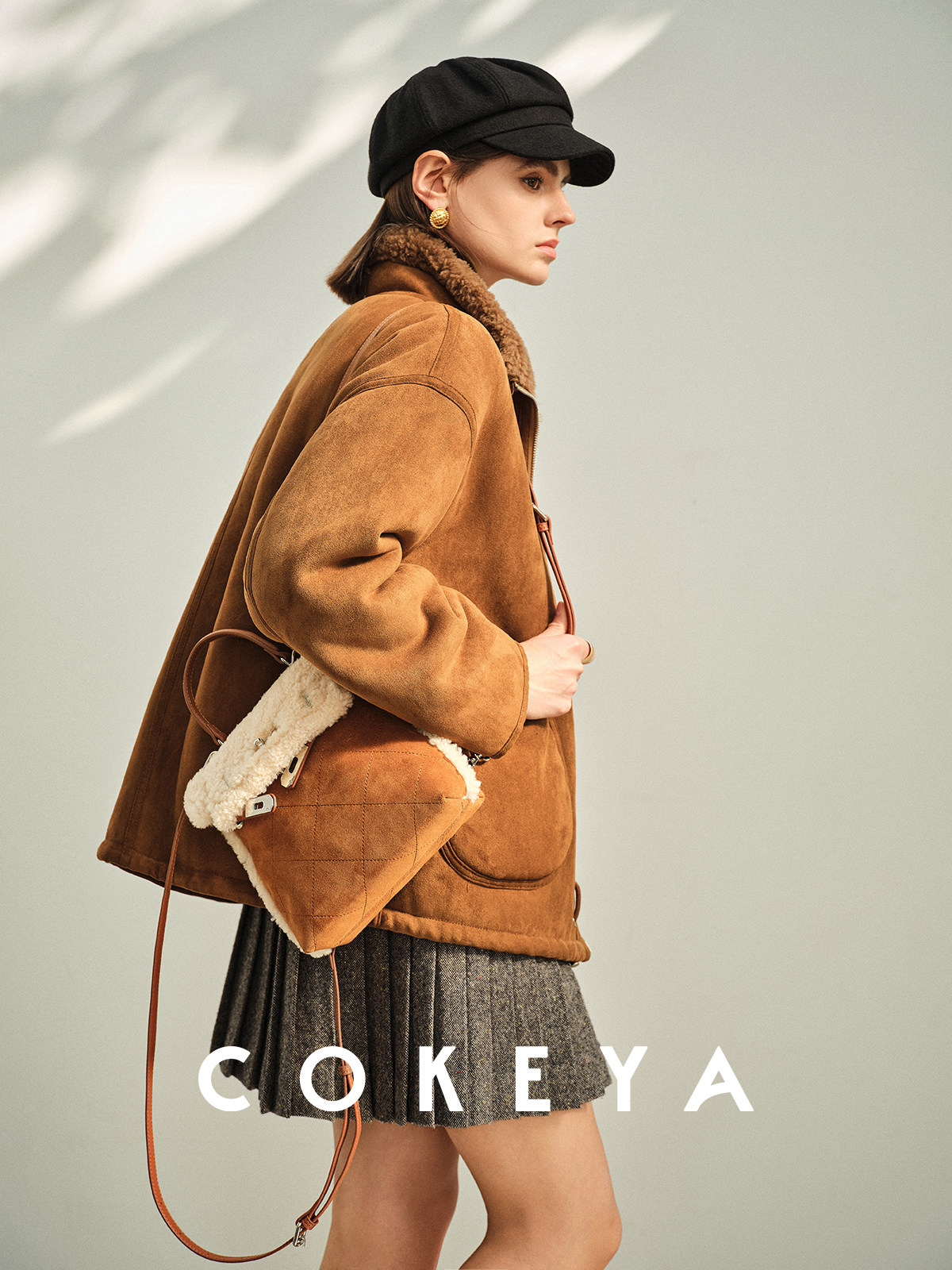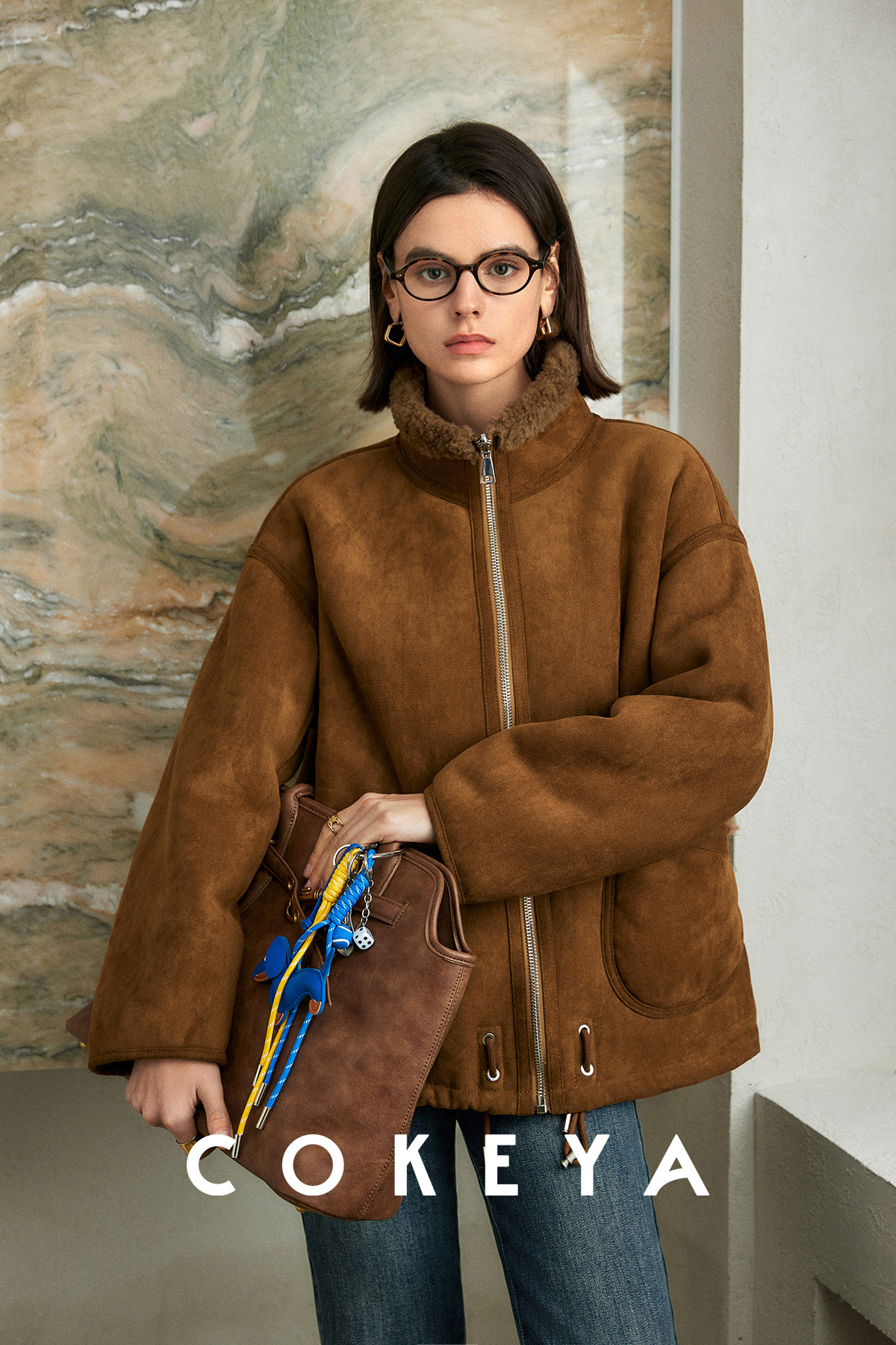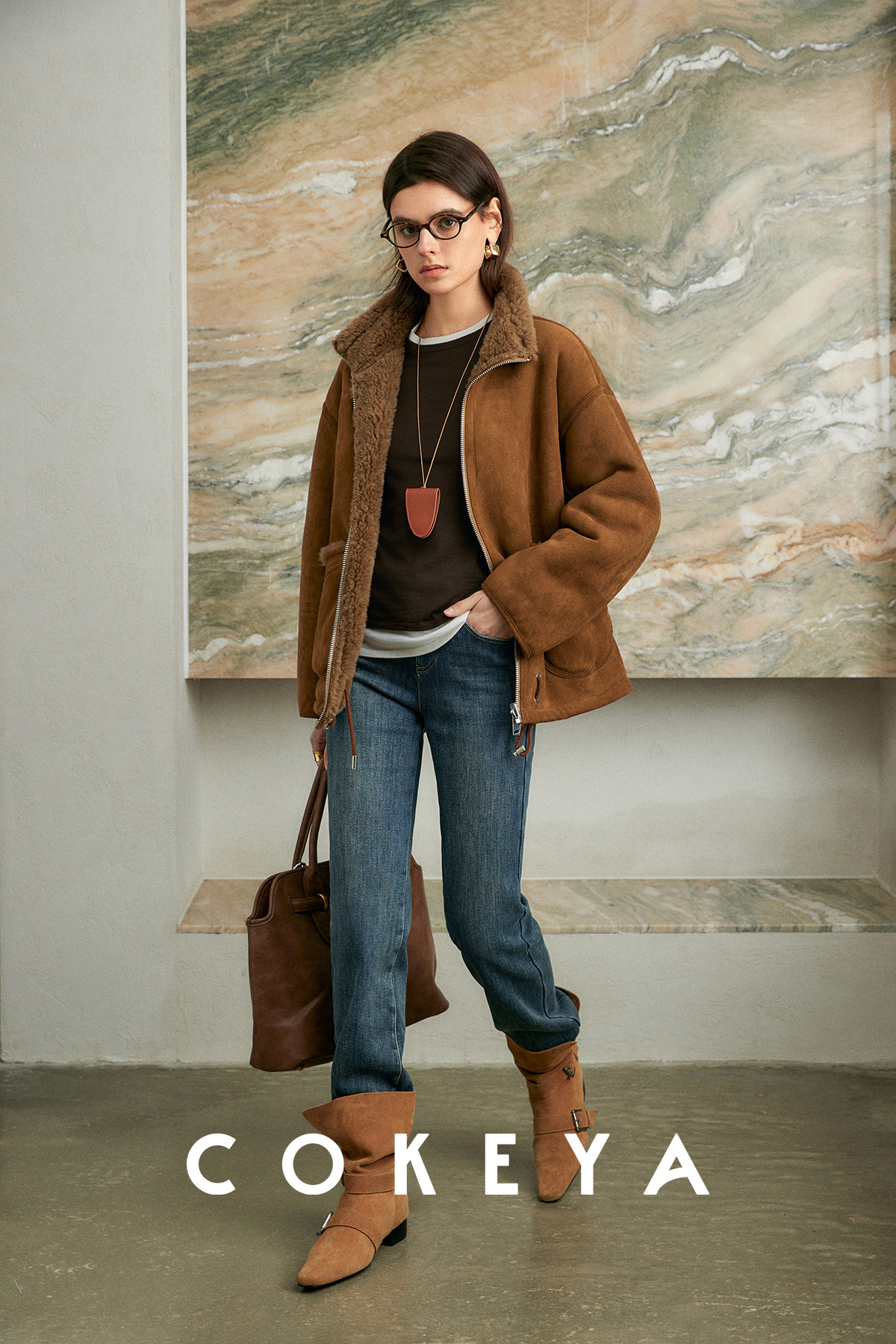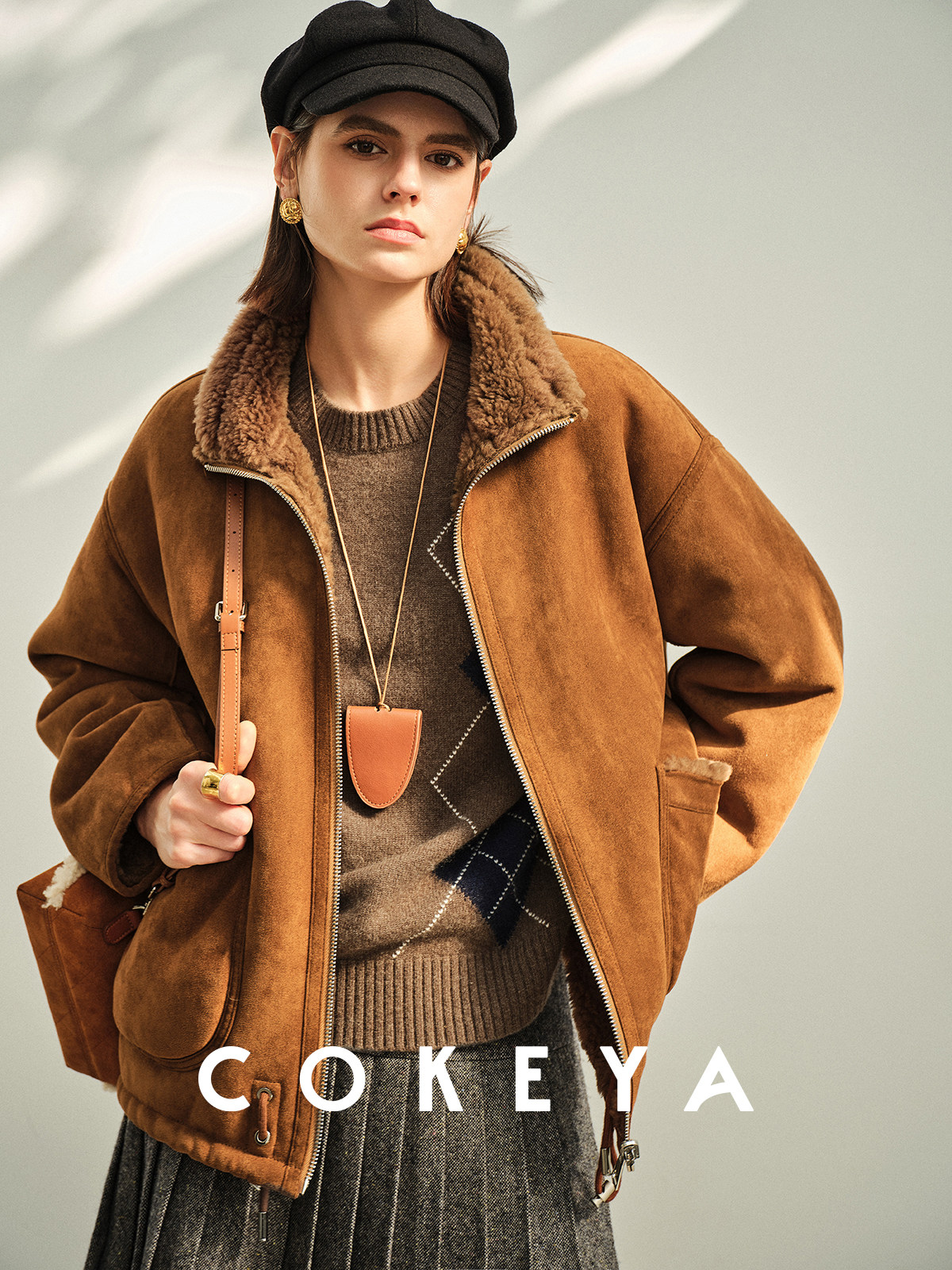 Cokeya/Coffee-Colored Melard~ Suede Lambskin Fur Integrated Reversible Thickened Fur Jacket for Women