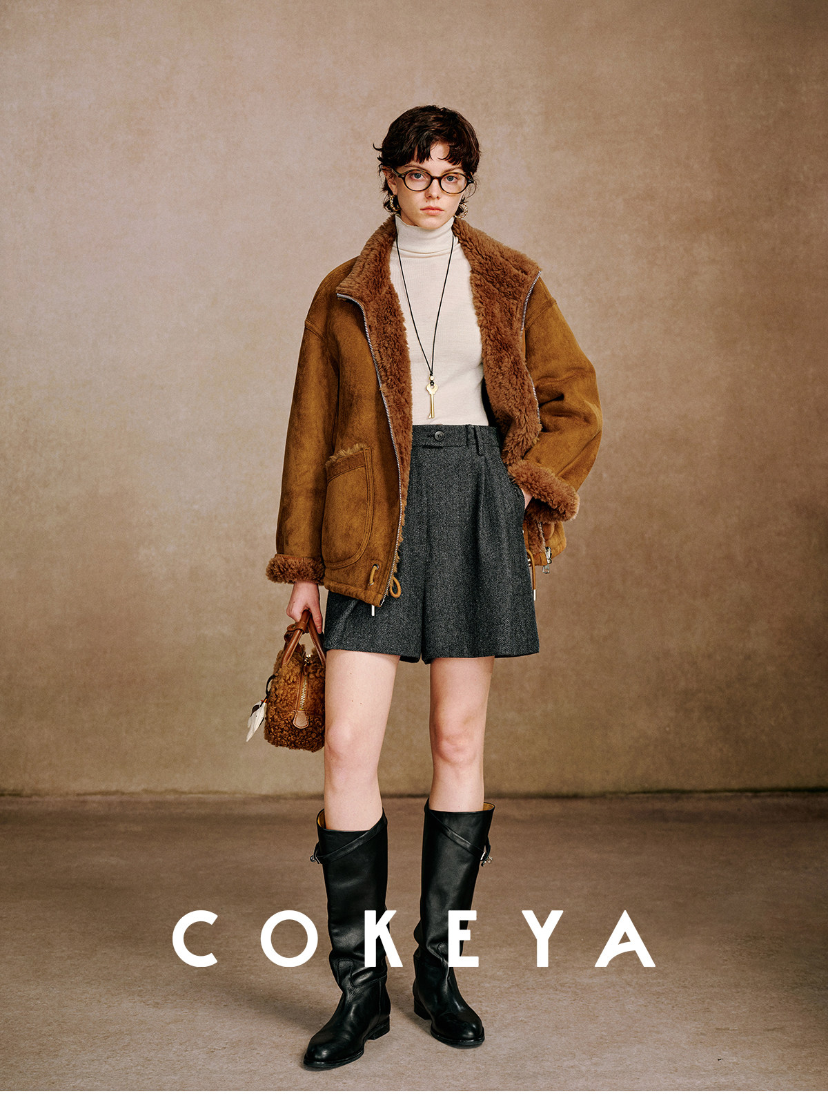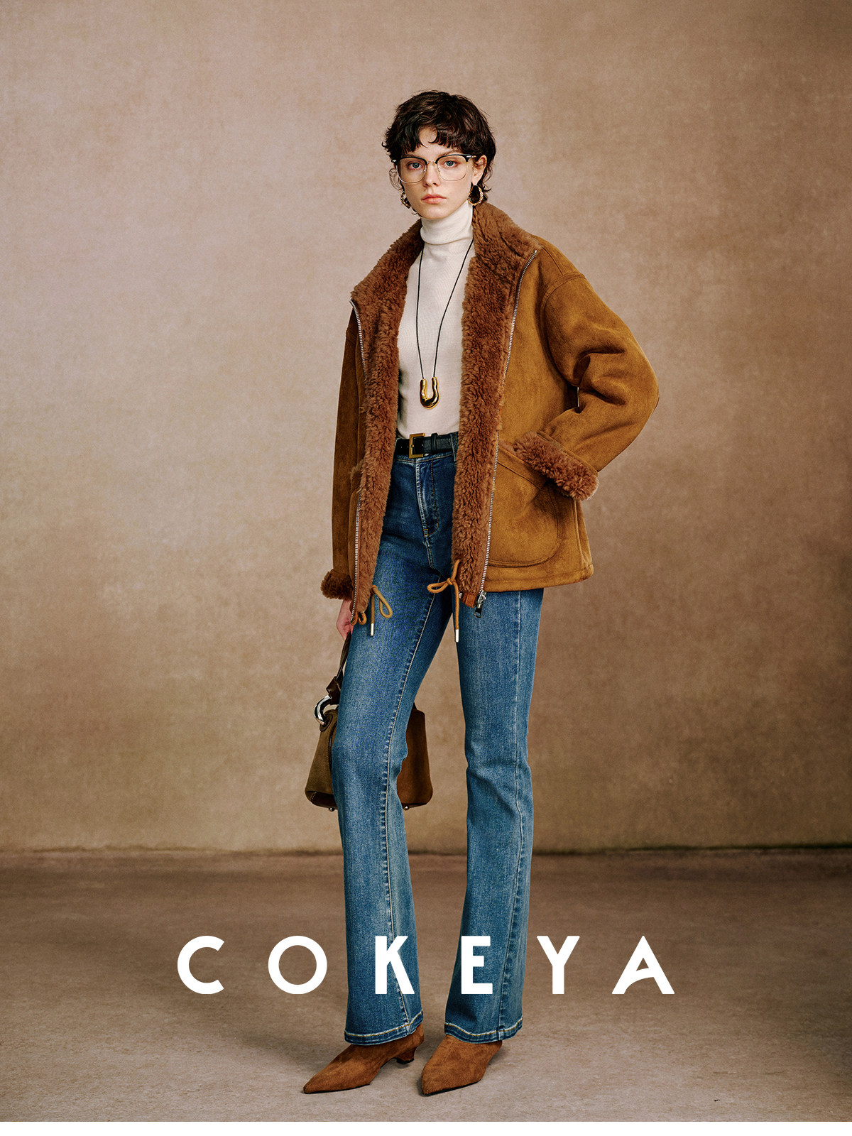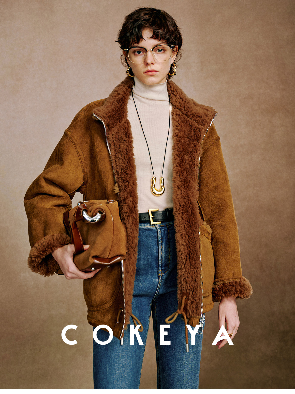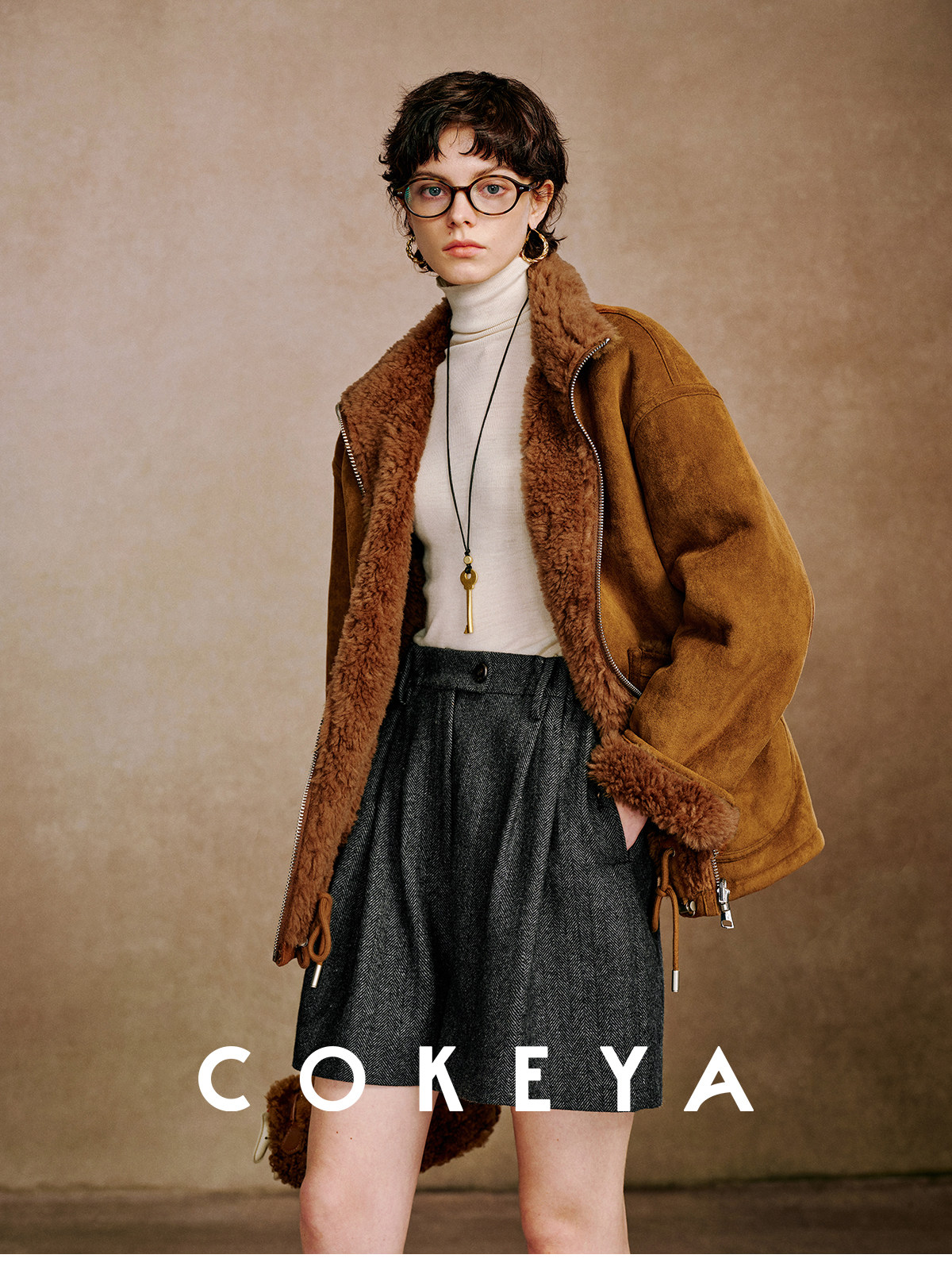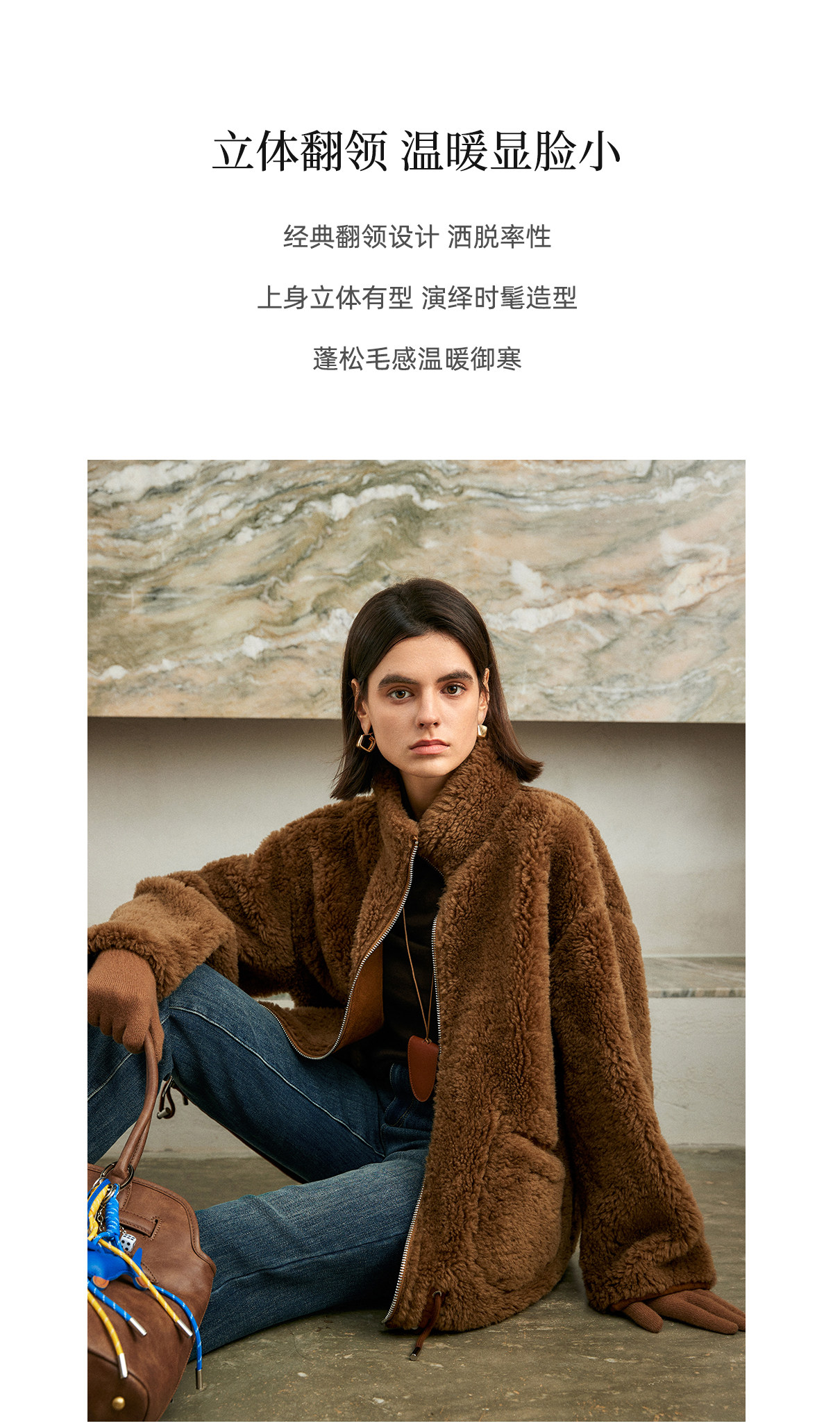 Cokeya/Coffee-Colored Melard~ Suede Lambskin Fur Integrated Reversible Thickened Fur Jacket for Women