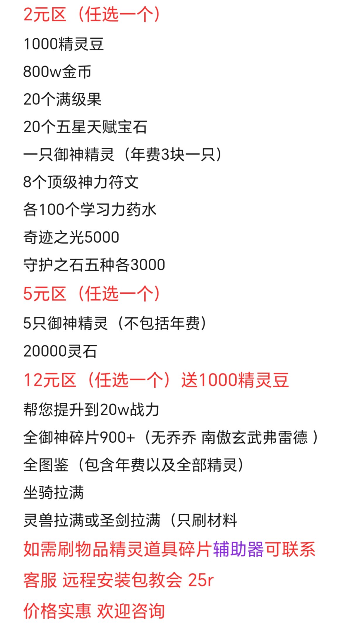 Color Classification Elf Beans 1000 (Daily Limit 1000),8 Million Gold Coins (Daily Cap: 800,000),1000 Elf Beans + 8 Million Gold Coins,20 Tiered Fruit Bonuses,20 Five-Star Talent Gems,Any Elf,Any Annual Fee Elf,Eight Random Level 100 Divine Power Runes,Five Royal Spirit Elves or Three Annual Fees,Order the Following Products and Get 1,000 Elf Beans for Free,Complete Illustrated Guide (All Elves),Most of the Fragments of the Royal God Are 900+,Spirit Beast or Holy Sword Is Full (Only Materials Are Brushed),Mounts Are Full,Help You Increase Your Combat Power to 200,000.,Mount + Complete Illustrated Guide,Other Items