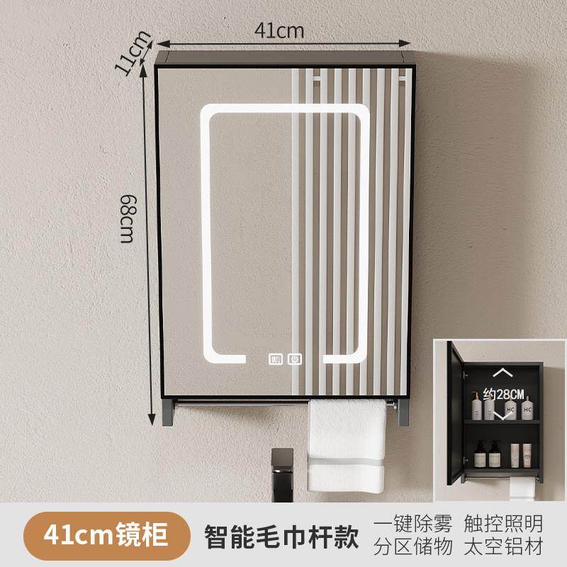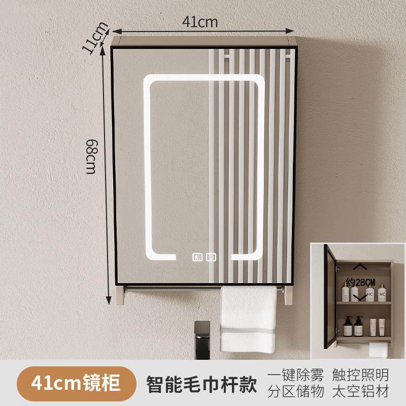 Japanese space aluminum smart bathroom mirror cabinet bathroom small apartment small size 40 wall-mounted with light defogging storage