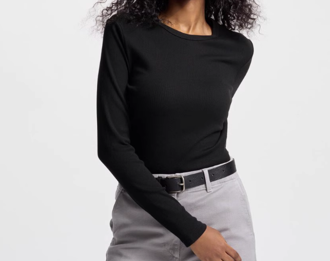 2024 Women's Soft Ribbed Crew Neck T-Shirt/Long Sleeve Solid Color Basic Style