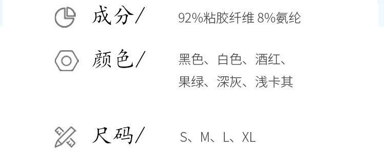 Material Composition Viscose Fiber (Viscose Fiber) 92% Polyurethane Elastic Fiber (Spandex) 8%