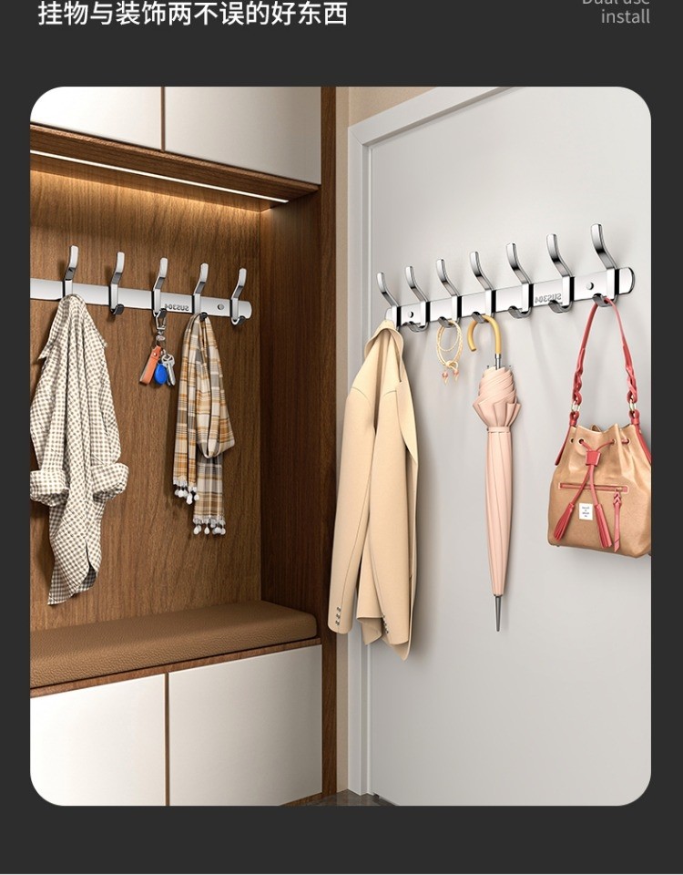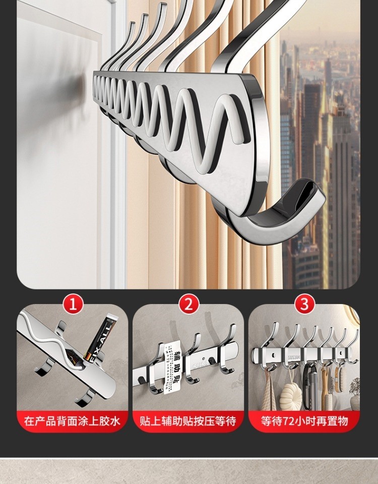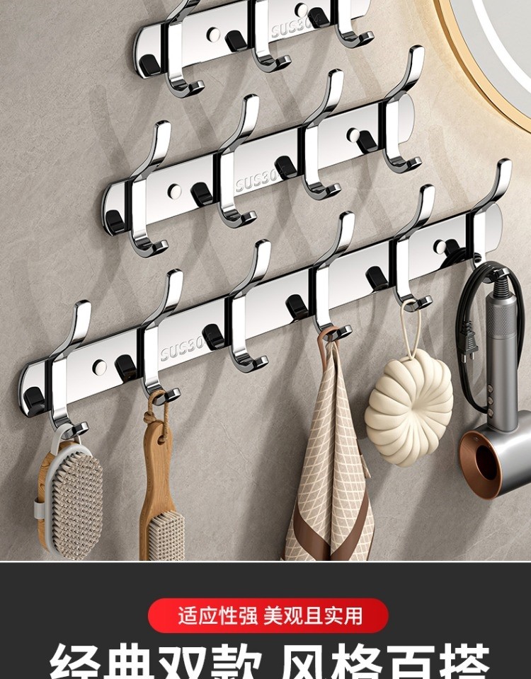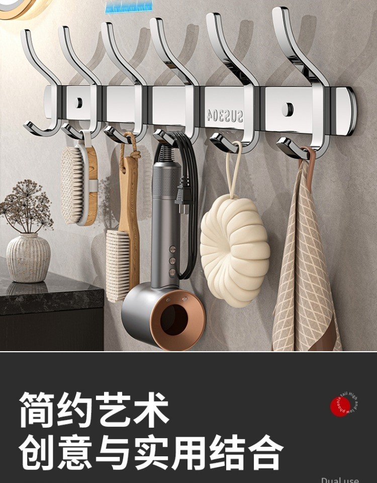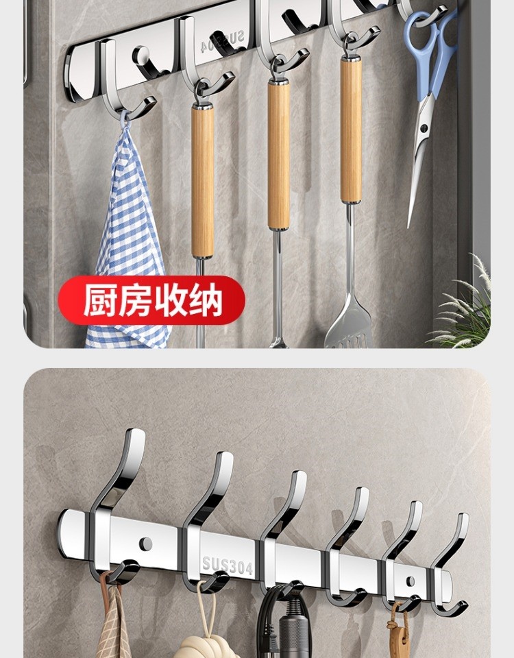 Japanese Imported Mujie304 Stainless Steel Hooks Bathroom Multi-Hook Rack Kitchen Wall Heavy-Duty Hook