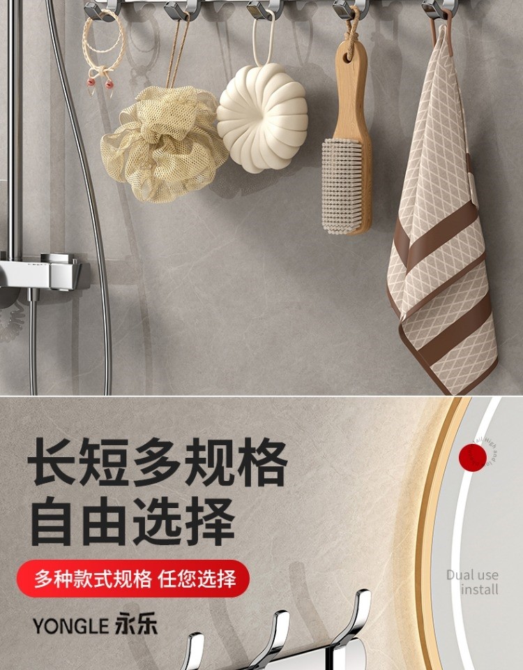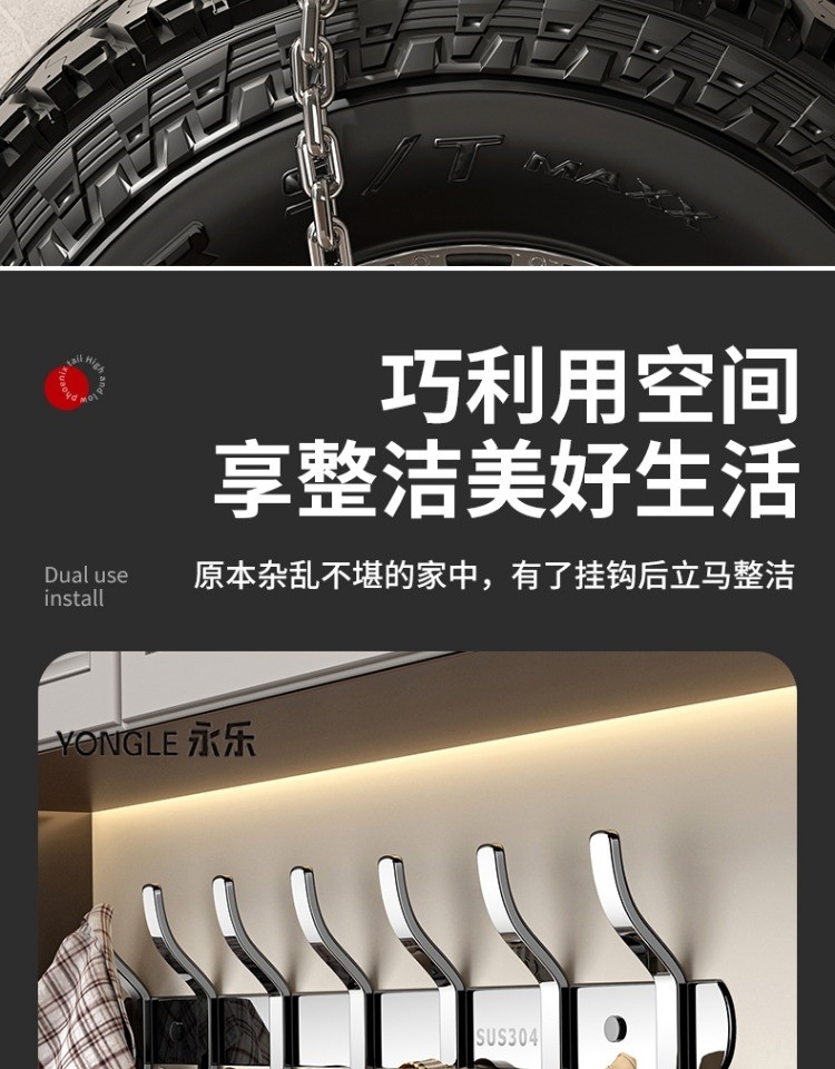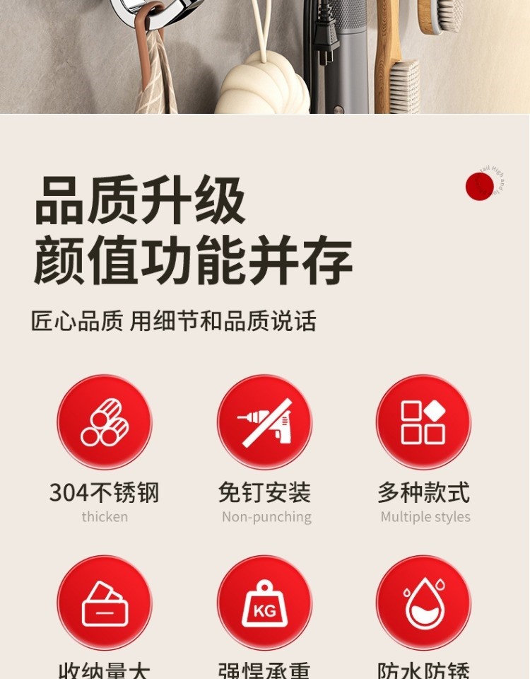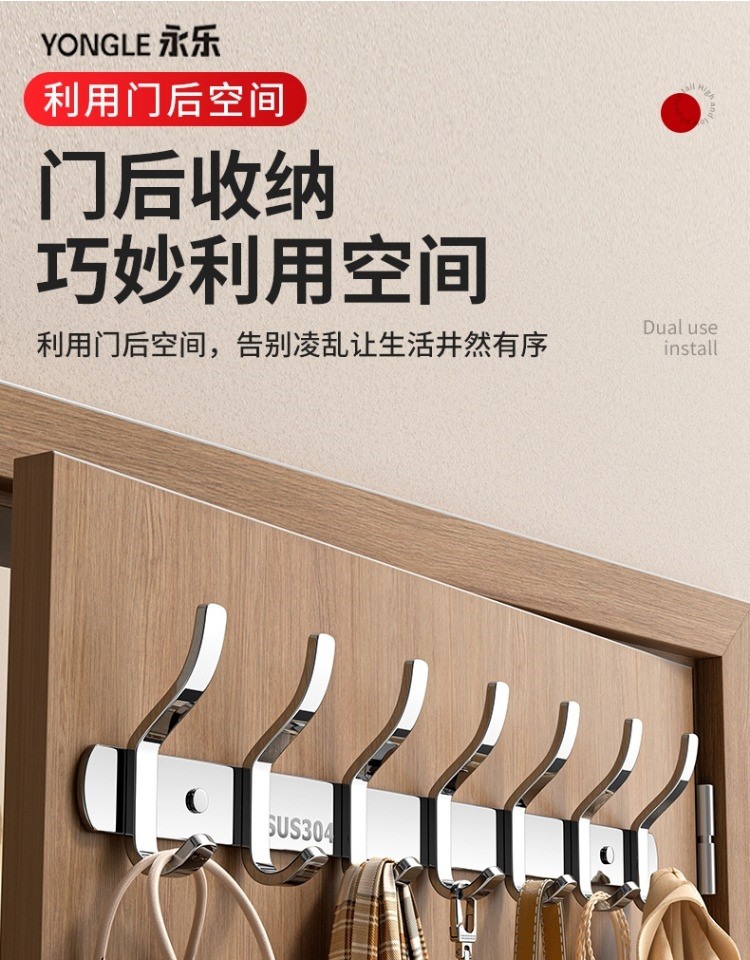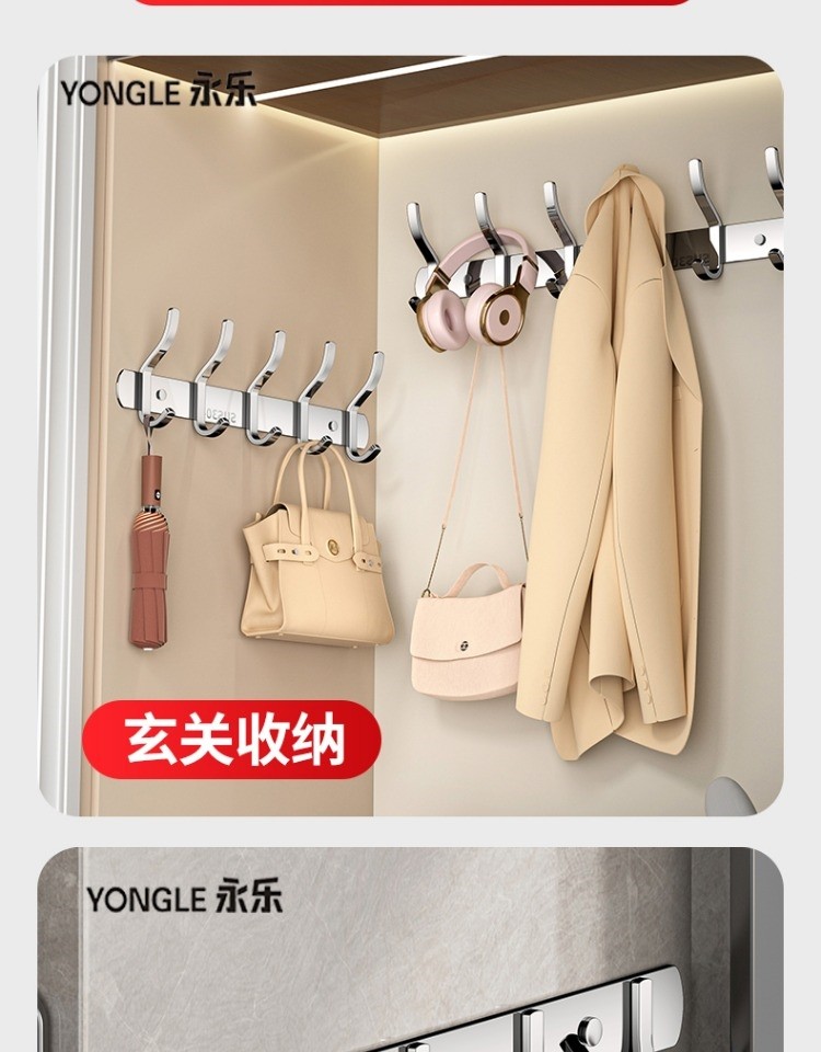Japanese Imported Mujie304 Stainless Steel Hooks Bathroom Multi-Hook Rack Kitchen Wall Heavy-Duty Hook