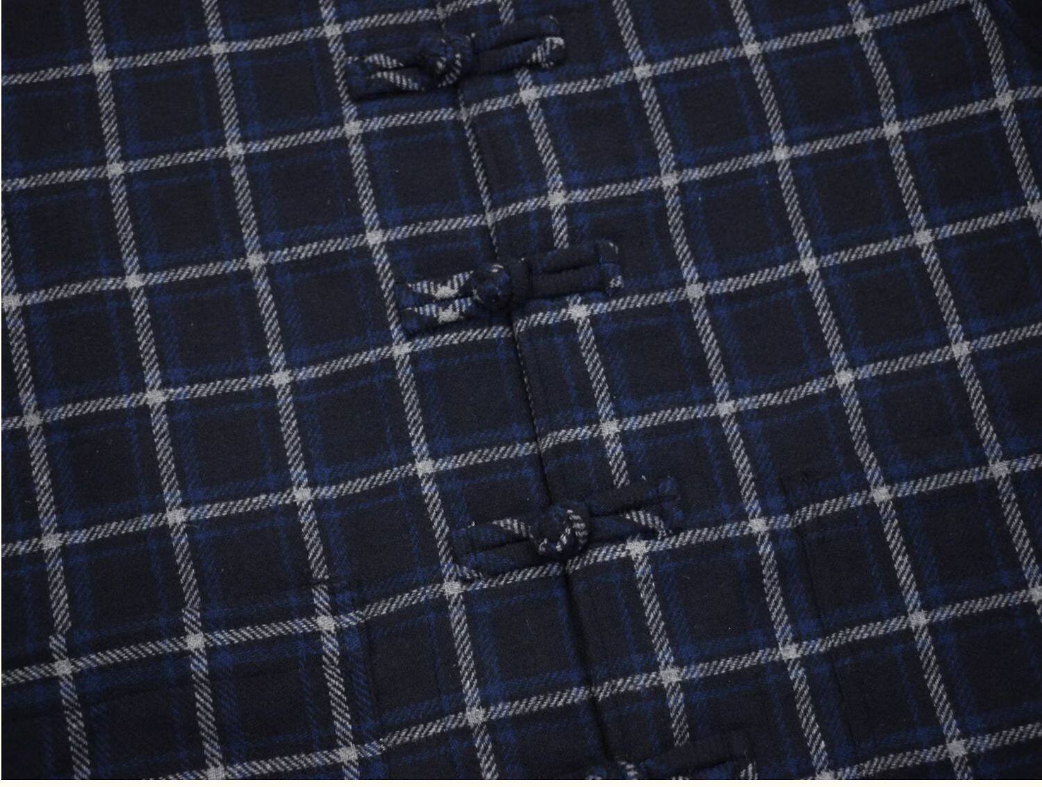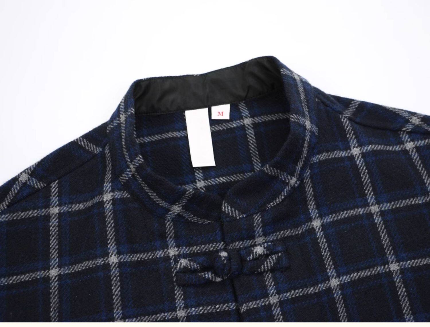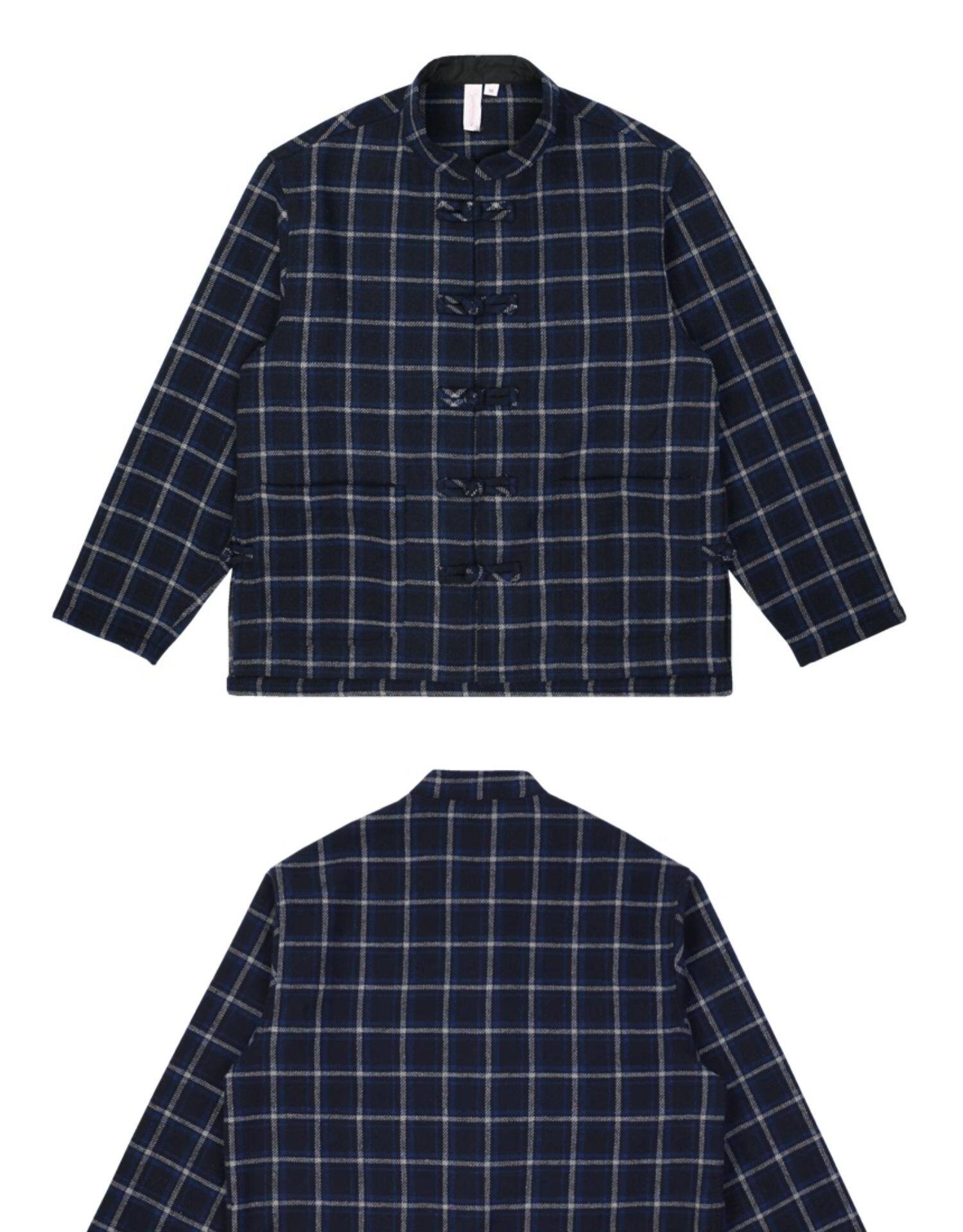 Jinfan Edison Chen's trendy brand same style wool plaid shirt men's Chinese style disc button blue plaid Guochao loose jacket