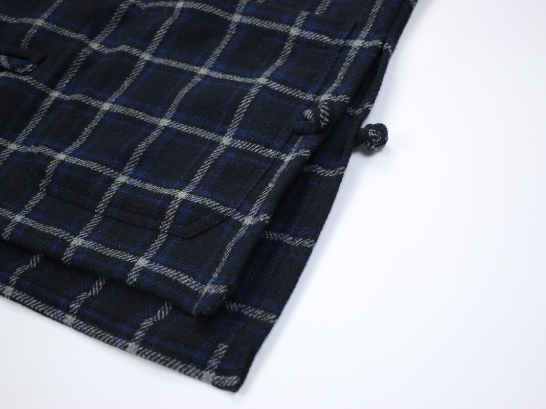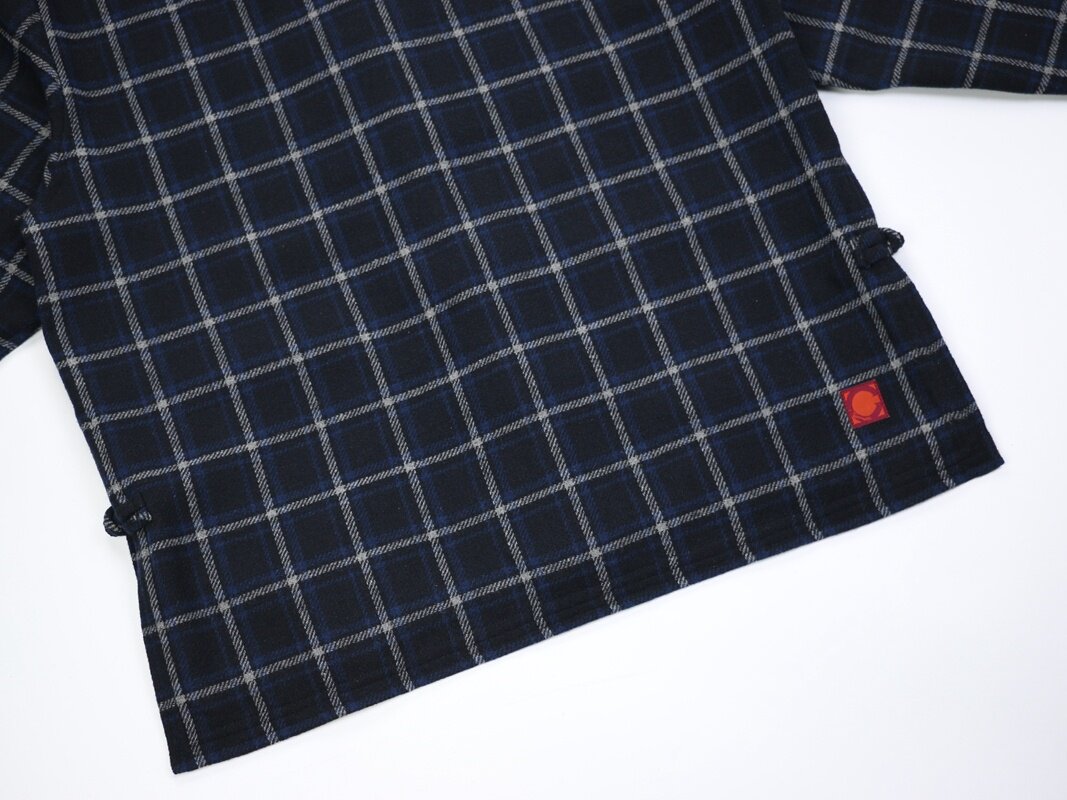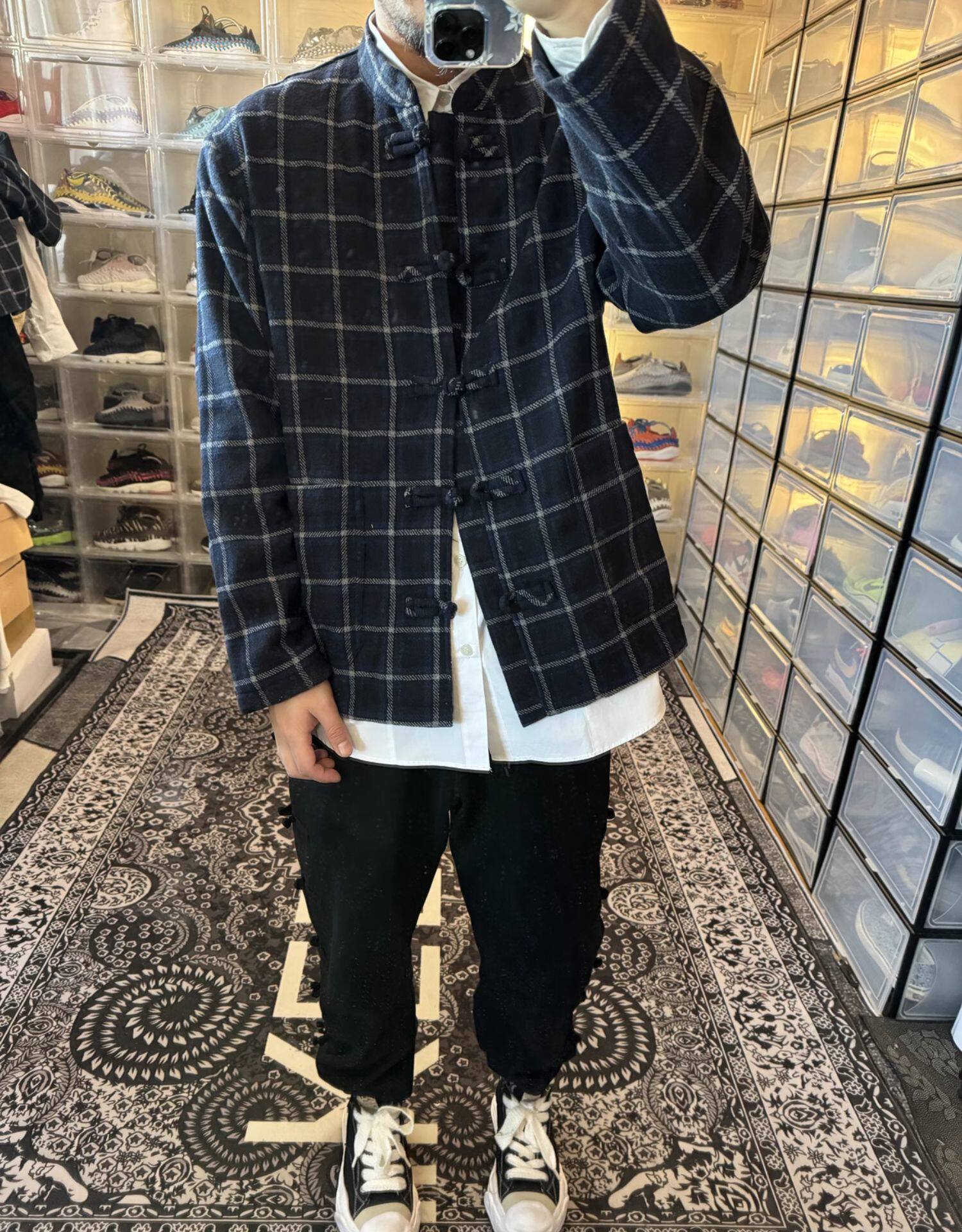 Jinfan Edison Chen's trendy brand same style wool plaid shirt men's Chinese style disc button blue plaid Guochao loose jacket
