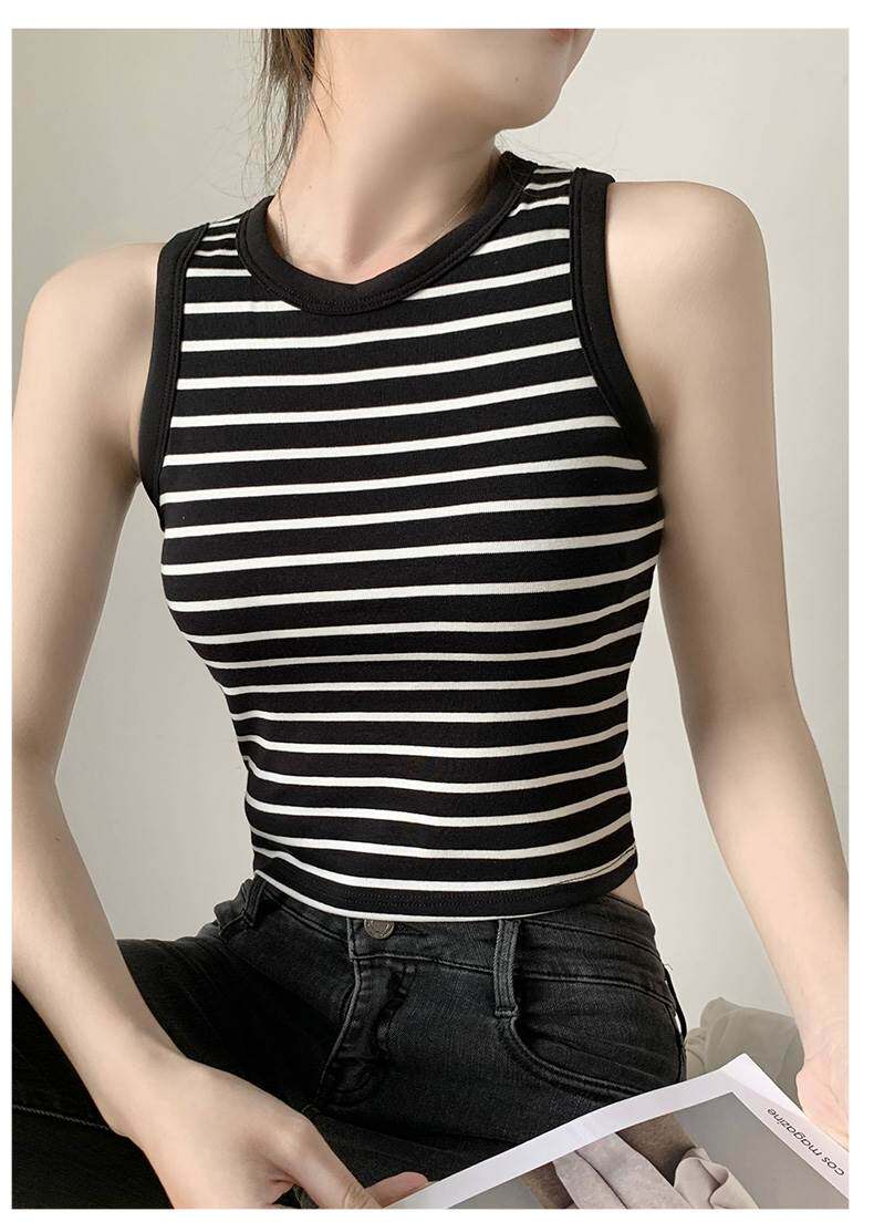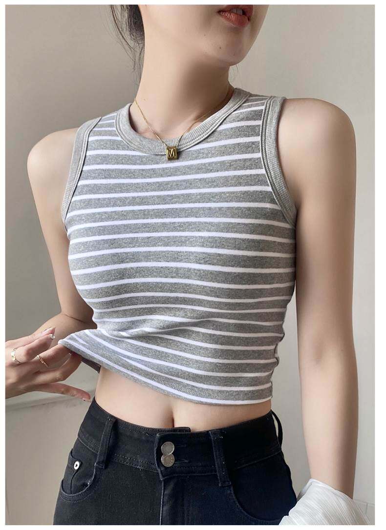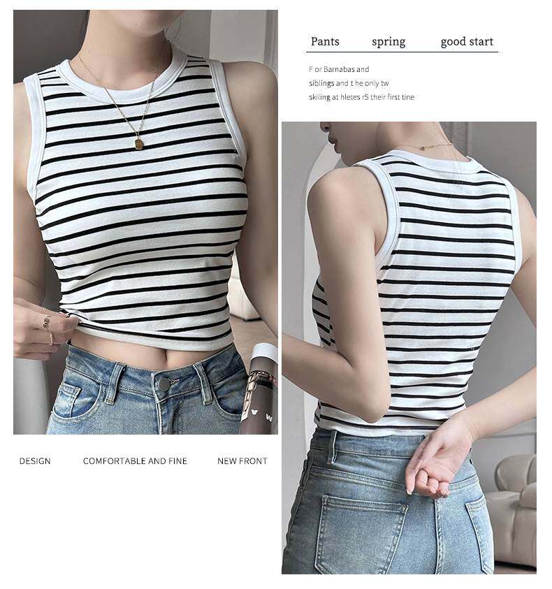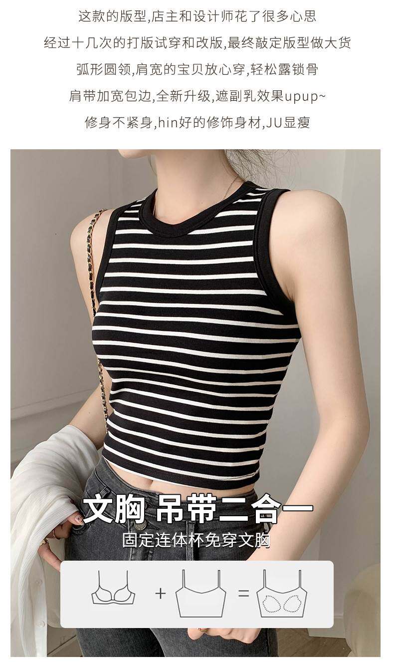 Spring and Summer Camisole Base Shirt for Women 2025 New Style with Stripes ins European and American Style Outerwear with Chest Pads