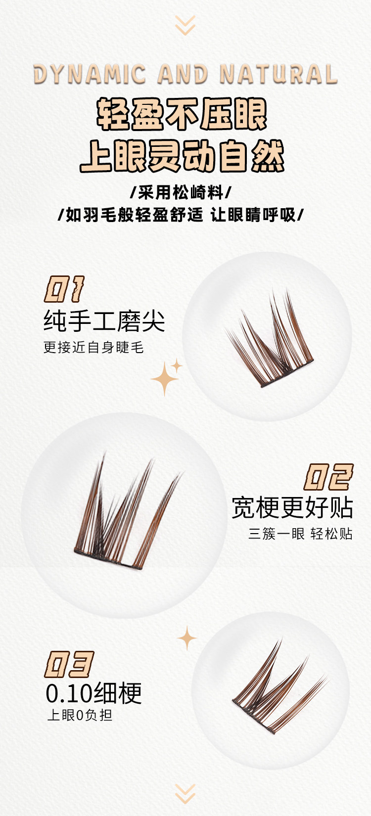 False Eyelashes Style Big Round Eyes❤️Honey Tea Brown 12-13.5mm,Small Wind Chime❤Big Dudu 9.5-13mm (48 Clusters),Small Round Eyes❤️Honey Tea Brown 9-10.5mm,Slim Eyes❤️Cold Tea Brown 9-11.5mm,Small Wind Chime❤️Xiaoxiaodu 8-11.5mm (48 Clusters),Small Wind Chime❤️Just Right 9-12mm (48 Clusters),[Glue-Free]Big Round Eyes-Honey Tea Brown (12-13.5mm),[Glue-Free]Slender Eyes - Cold Tea Brown (9-11.5mm),[Glue-Free Model]Small Wind Chime❤Just Right (48 Clusters),[Glue-Free Model]Small Wind Chime❤Little Dudu Brown (48 Clusters),Small Sticker❤ 9-11mm (42 Clusters) Glue-Free Model,Small Sticker❤ 9.5-13mm (42 Clusters) Glue-Free Model,Small Sticker❤ 9-11mm (48 Clusters),Small Sticker❤ 9.5-13mm (48 Clusters),Little Daisy❤Add Some Brown 9-10.5mm (48 Clusters),Little Daisy❤Charge with Eyes Closed 10-11.5mm (48 Clusters),Little Daisy❤A Bit Long 12-13.5mm (48 Clusters),Little Daisy❤Add Some Brown (Extended Version) 11-12.5mm (48 Clusters),A Little Korean❤Daily 8-11mm (Formal 64 Clusters),A Little Korean❤Photogenic 9-12mm (64 Clusters in Formal Wear),Xiaohuajuan·Just Right 10-11.5mm (48 Clusters),[Glue]Butterfly and Phoenix Tail 2.0,[Lower Eyelashes]Kitten Claw·123 Wooden Man