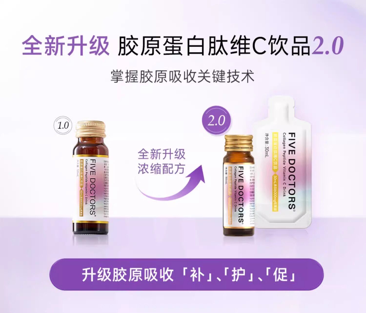 Five Female Doctors' Fish Collagen Peptide Vitamin C 2.0 Oral Liquid Drink with Niacinamide and Vitamin C, Official Genuine Product