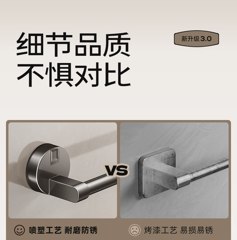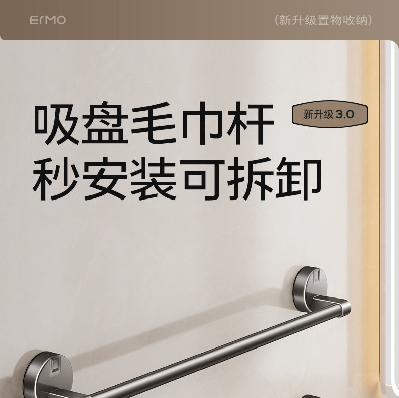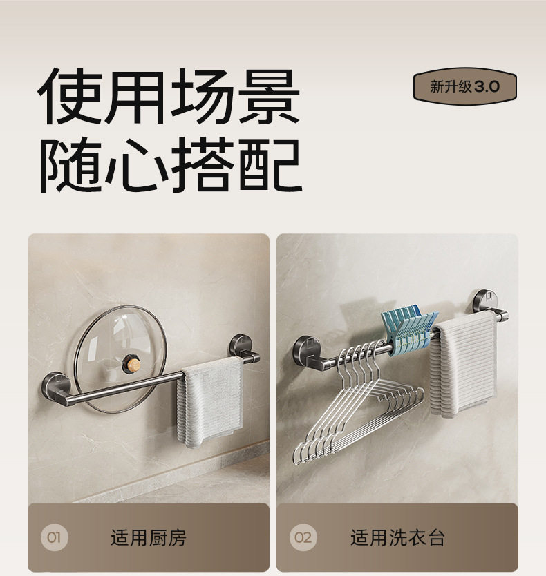 German Precision Suction Cup Towel Rack, Bathroom No-Drill Towel Bar, Bath Towel Wall-Mounted Storage Rack, Single/Double Rod Hanger