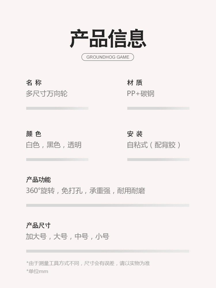 Adhesive Roller Swivel Wheels, New Model for Home Use, No Drilling Required, Wear-Resistant, High Load-Bearing, Household Hardware Accessories, Small Casters