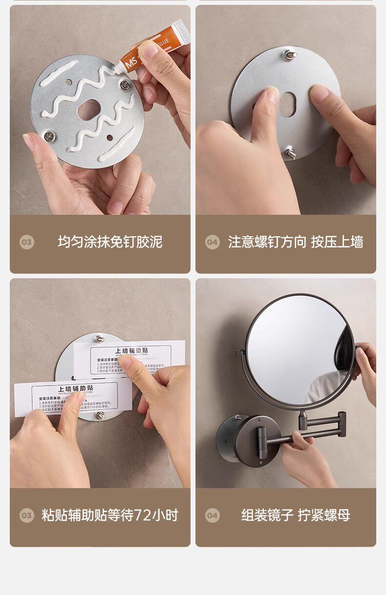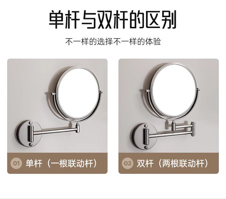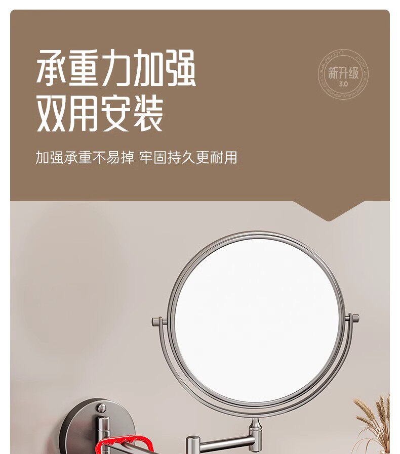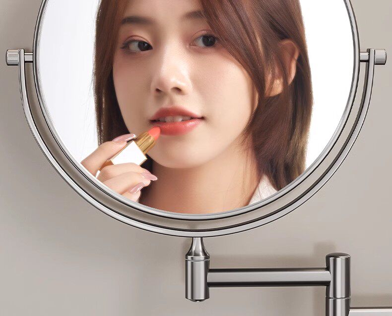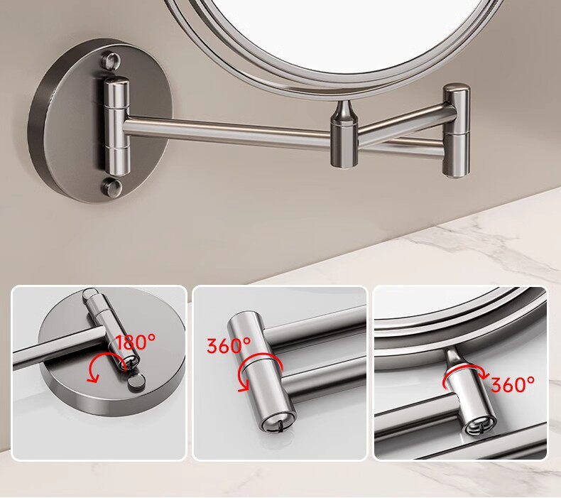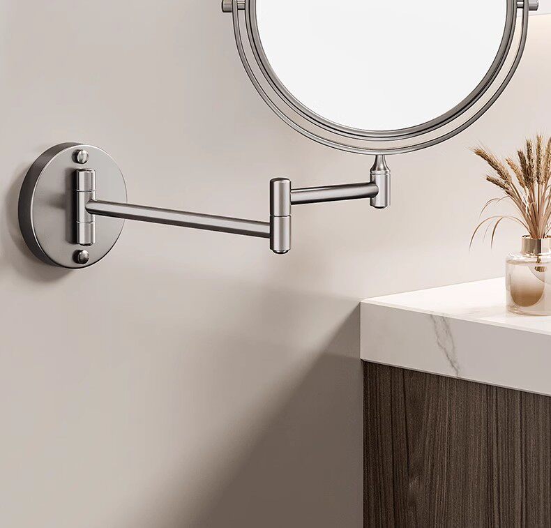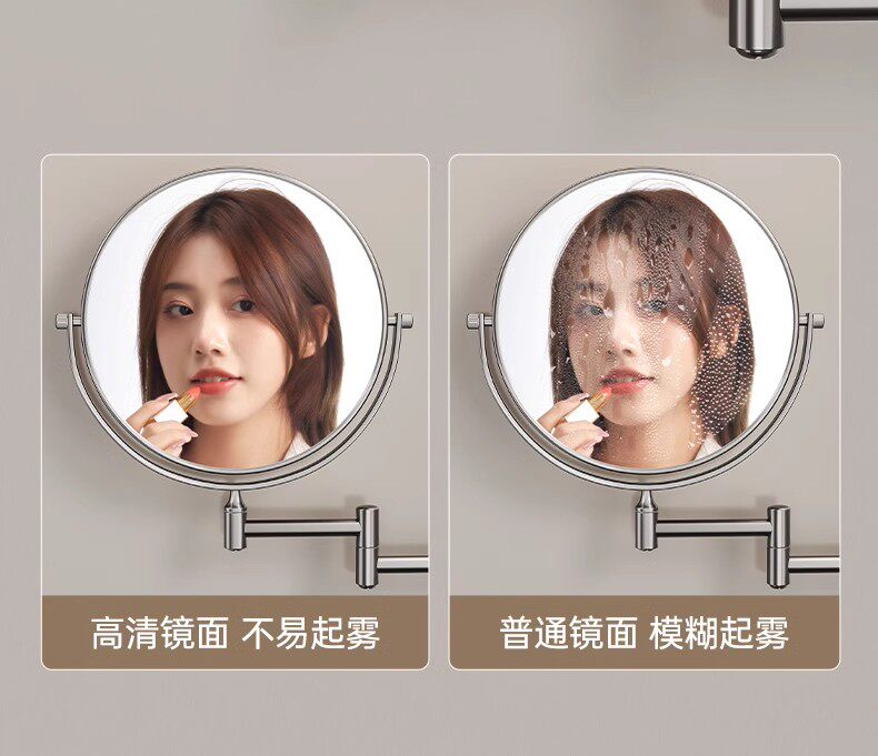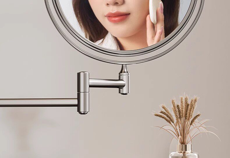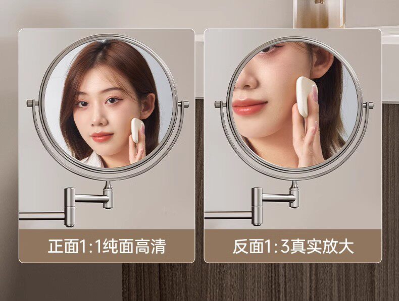 German Precision Bathroom Retractable Wall-Mounted Makeup Mirror, No-Drill Beauty Mirror, Foldable Magnifying Mirror