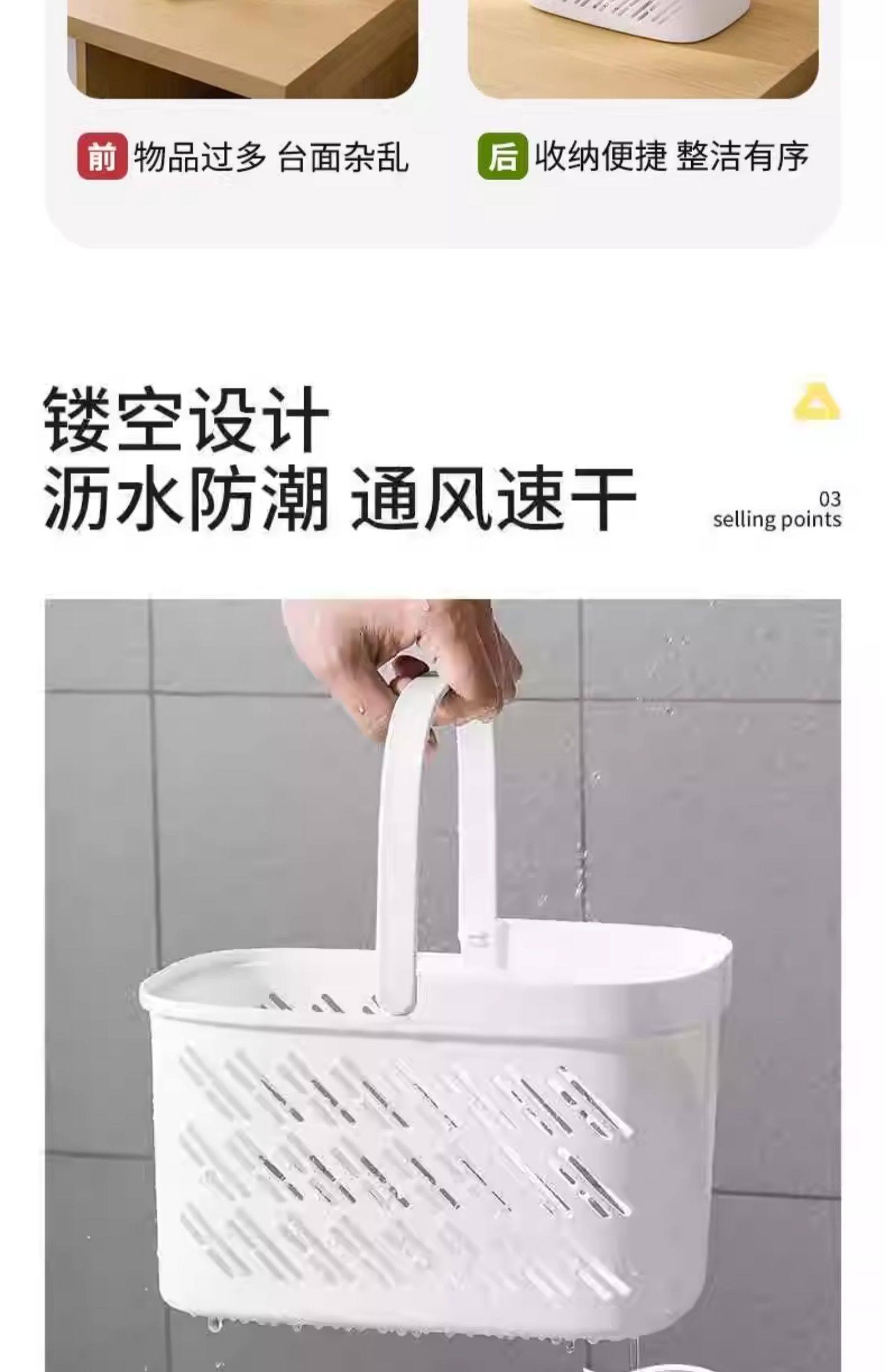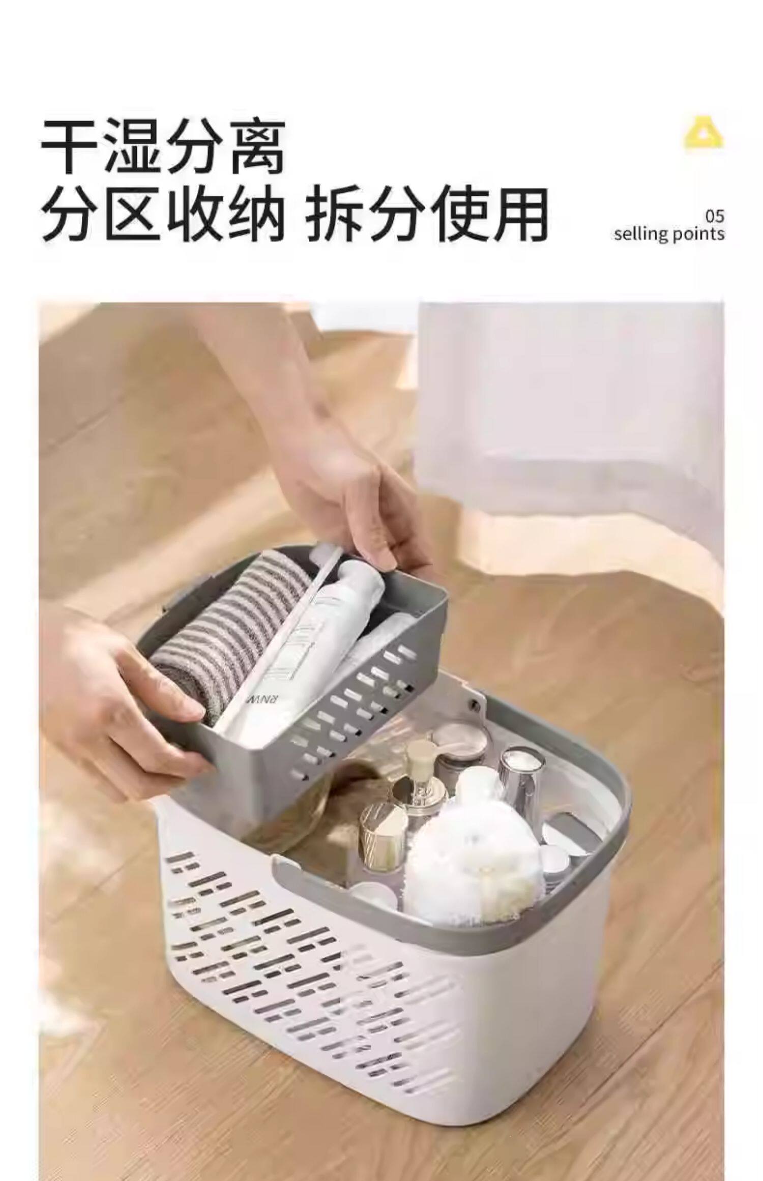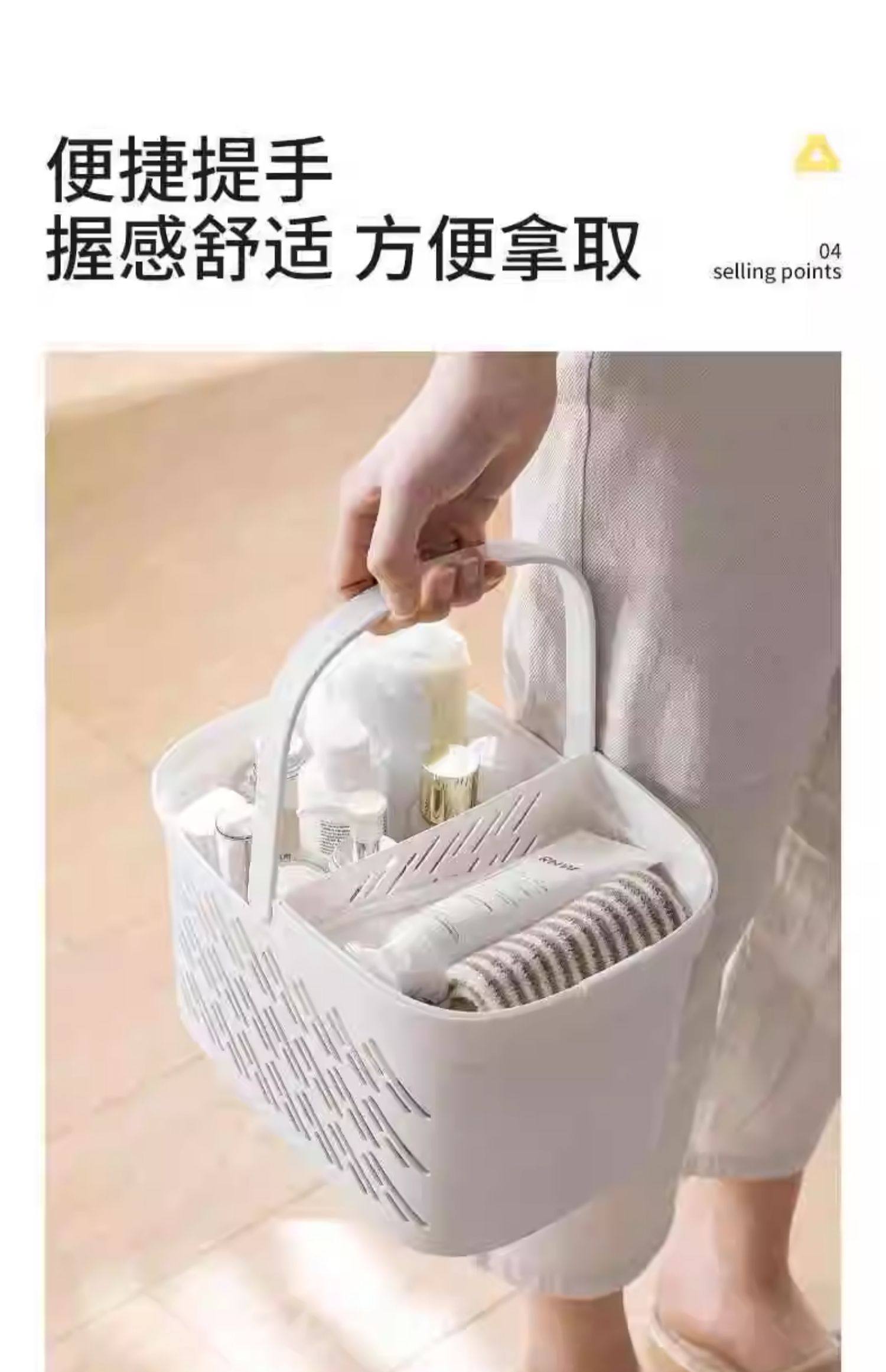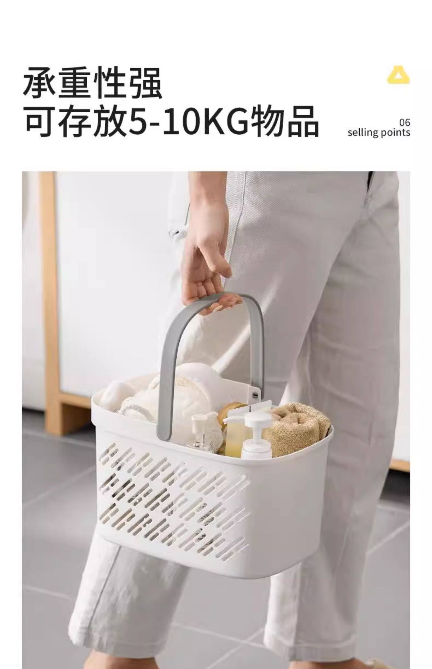 High-quality bath basket, bathroom portable bath basket, wet and dry separation, hollow draining wash basket with underwear storage mesh basket
