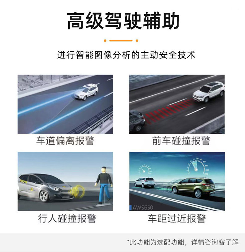 Function Enhanced Night Vision,Loop Recording,Forward Collision Warning,Fatigue Driving Reminder,Night Vision Fill Light,Parking Monitoring,Pedestrian Collision Warning,Short Video Sharing,Screen Deformation Correction,Positioning,Before and after Recording,Front Vehicle Distance Detection,Track Deviation Warning,Collision Sensing