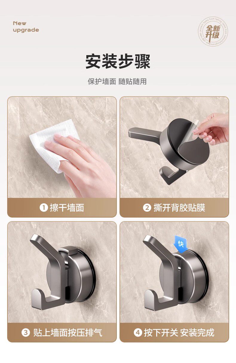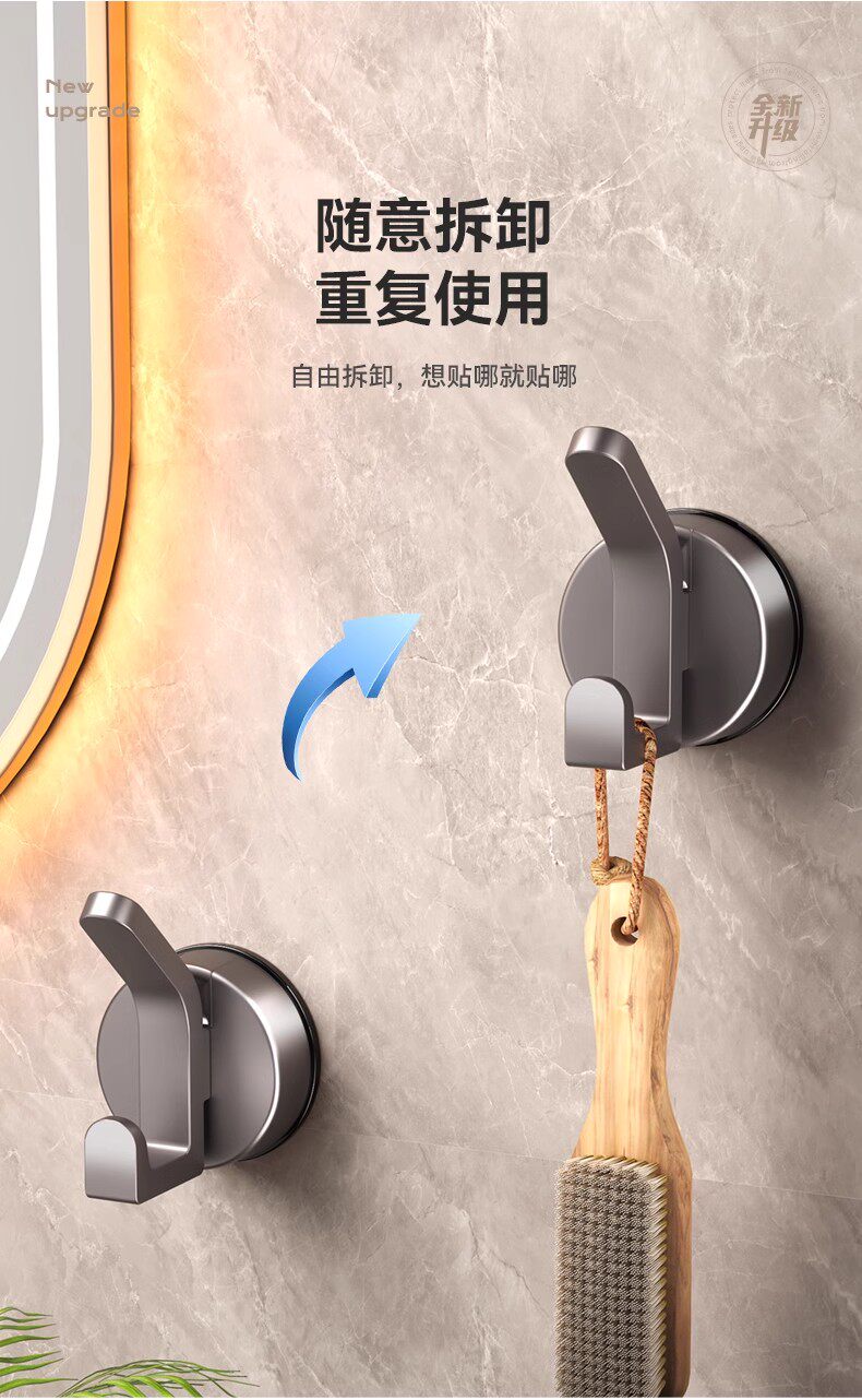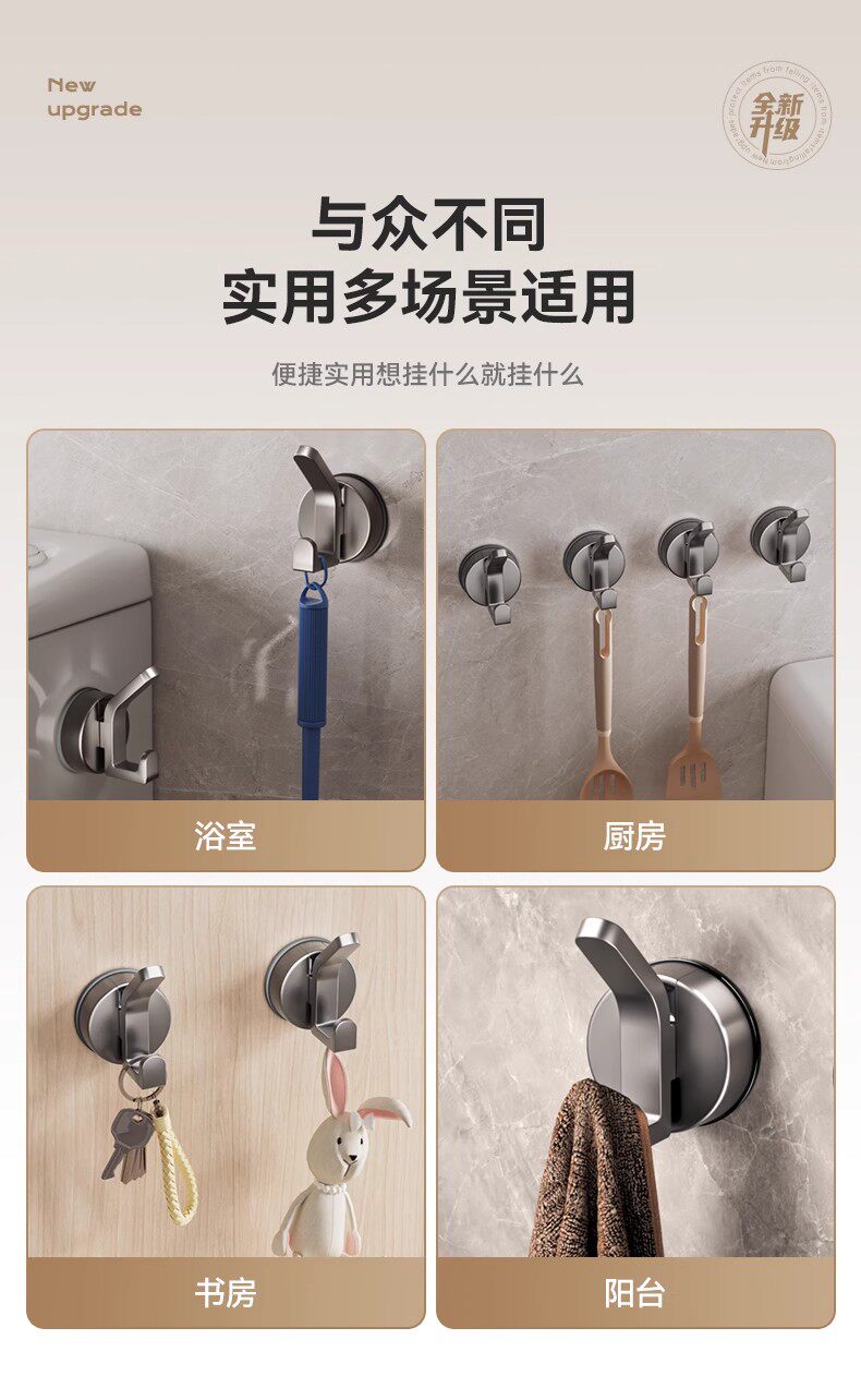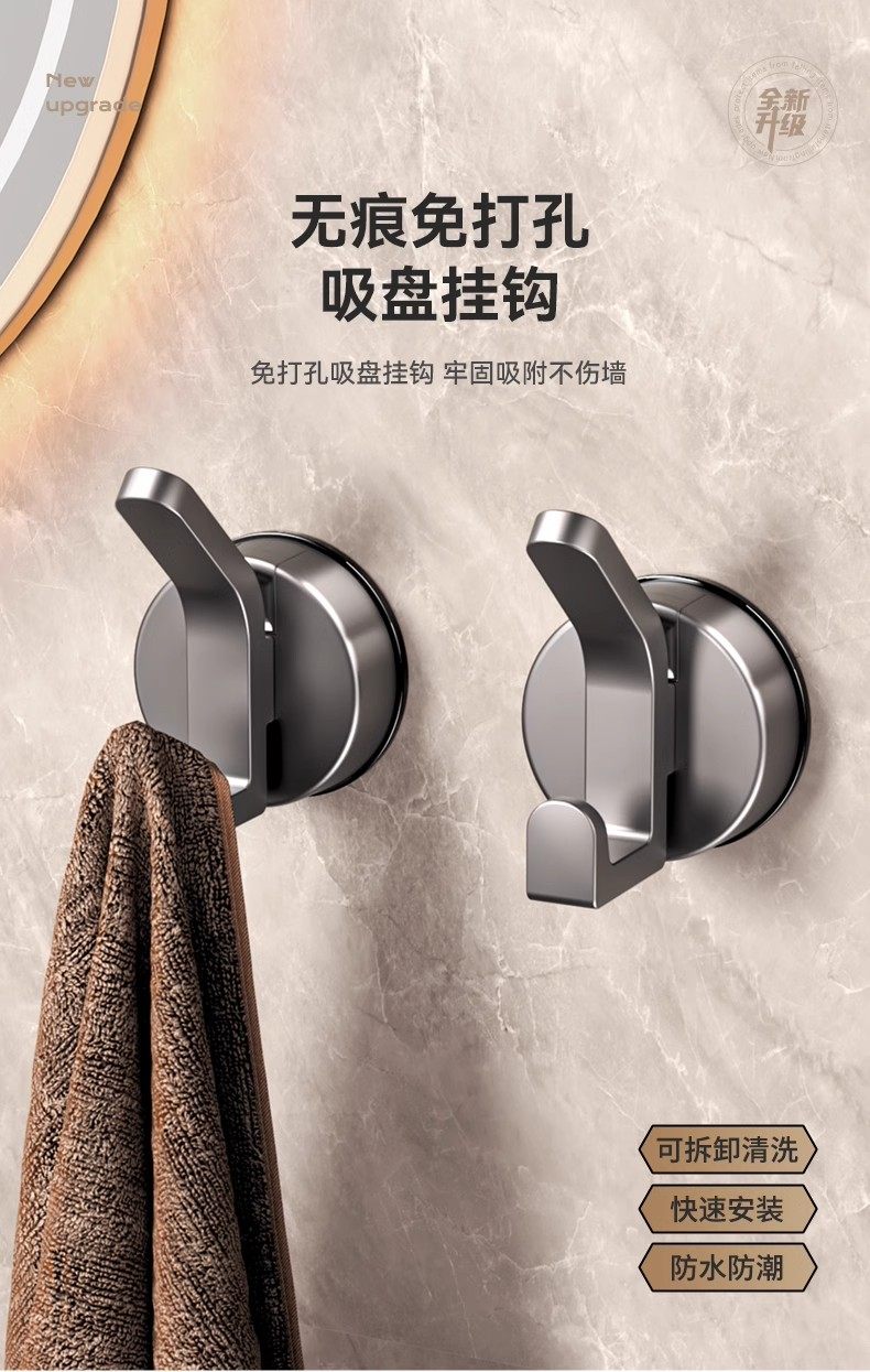 German Precision Suction Cup Hook, Strong Vacuum, No-Drill Wall-Mounted, Traceless Towel Adhesive Hook for Bathroom, Kitchen, and Behind Doors