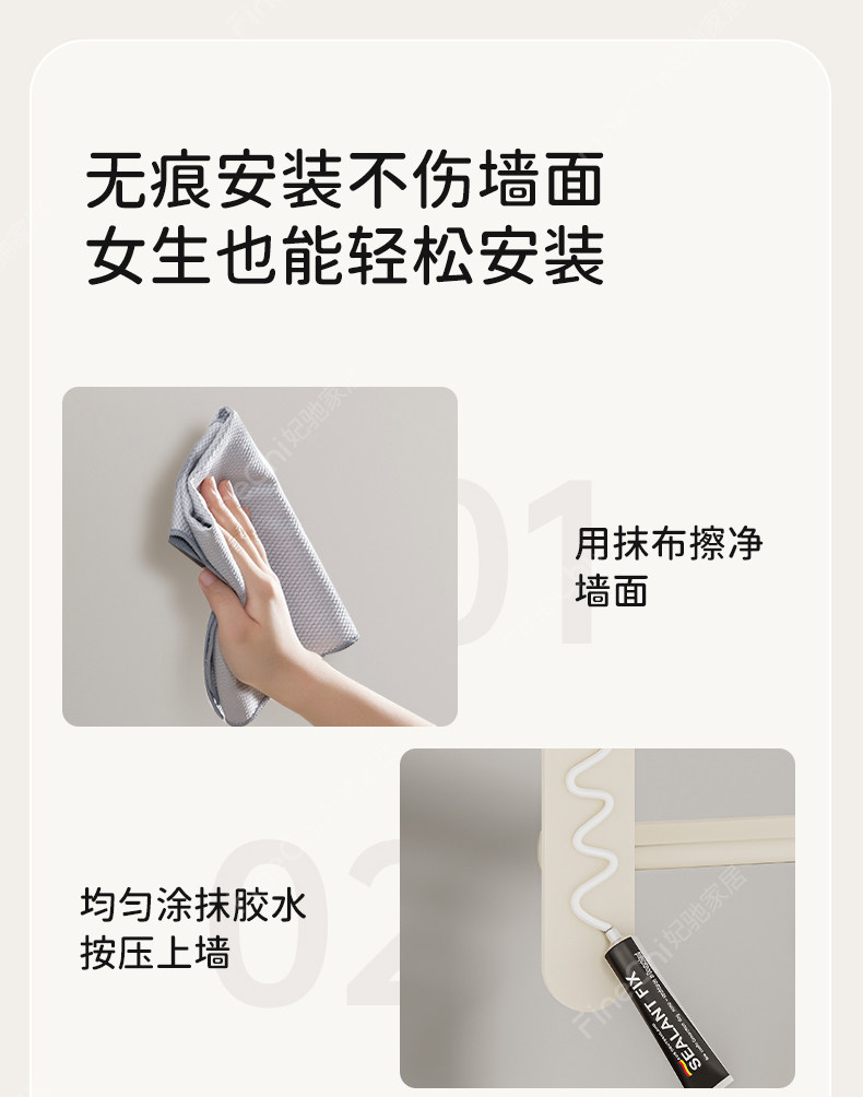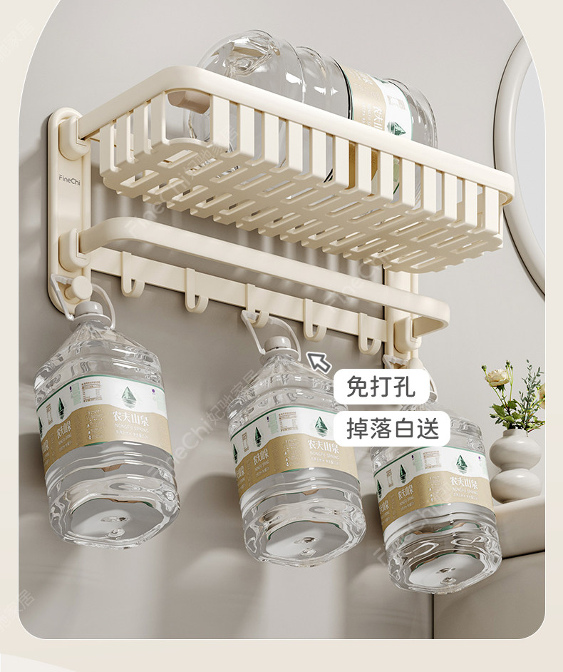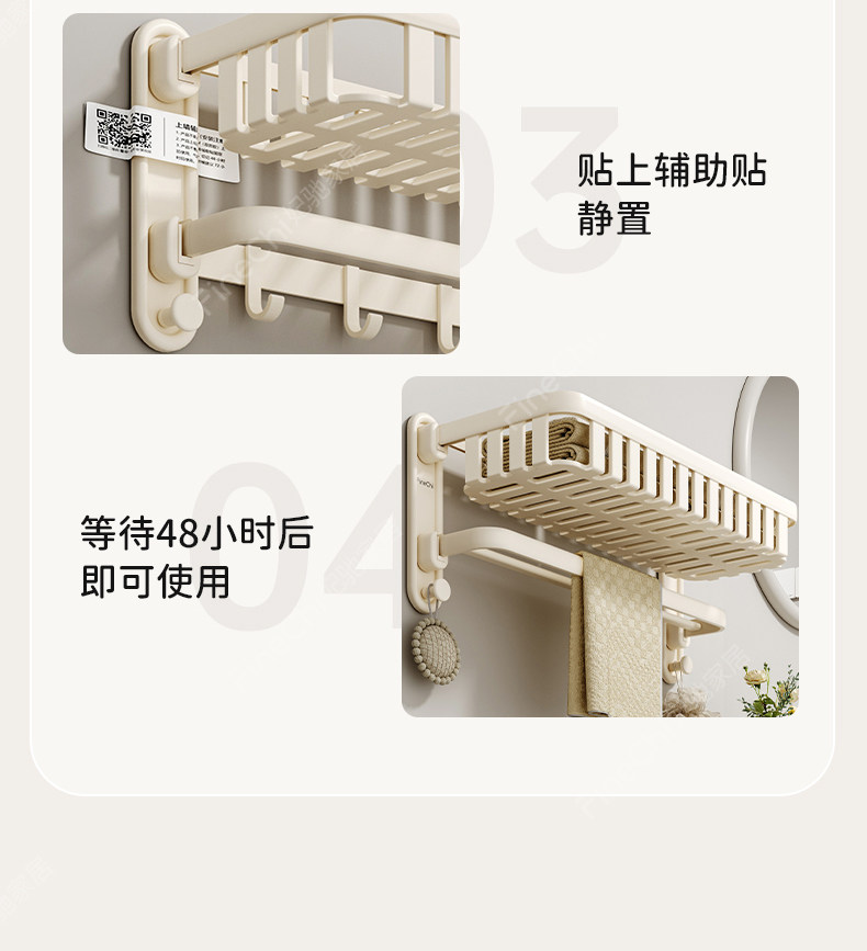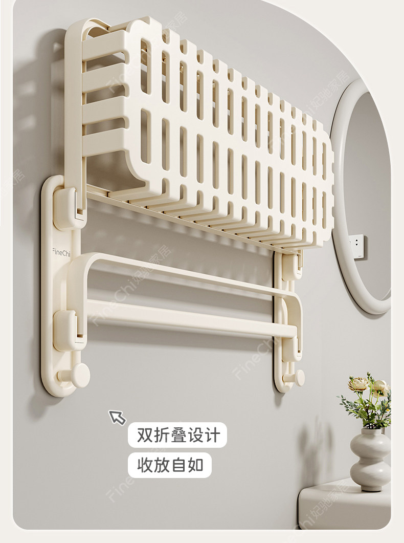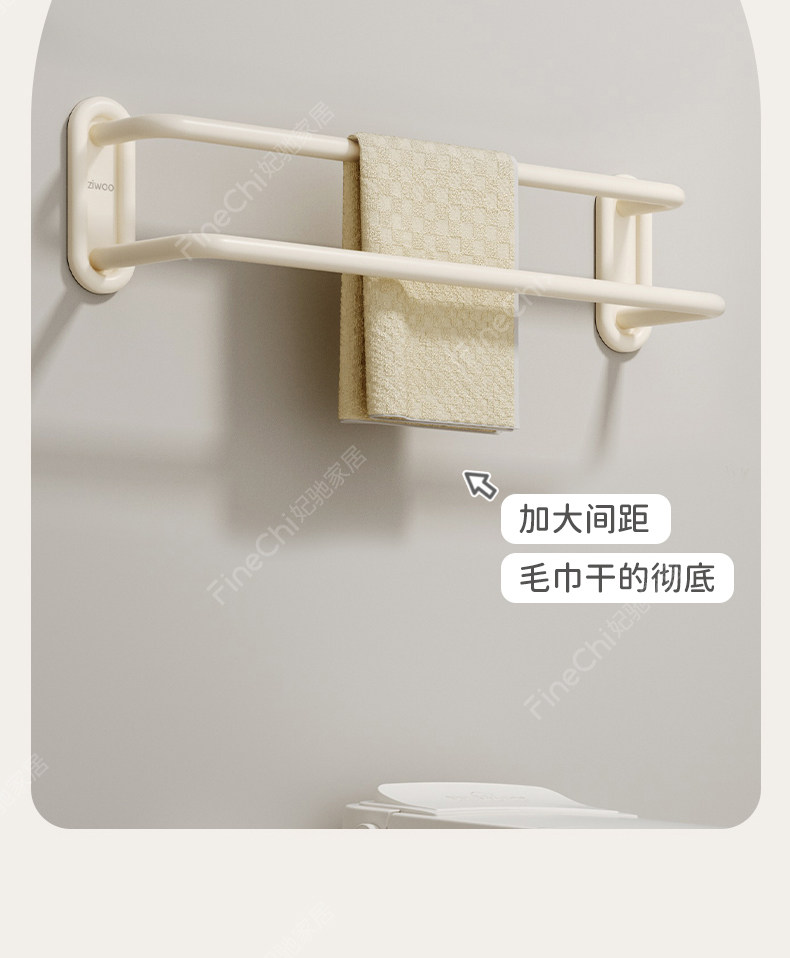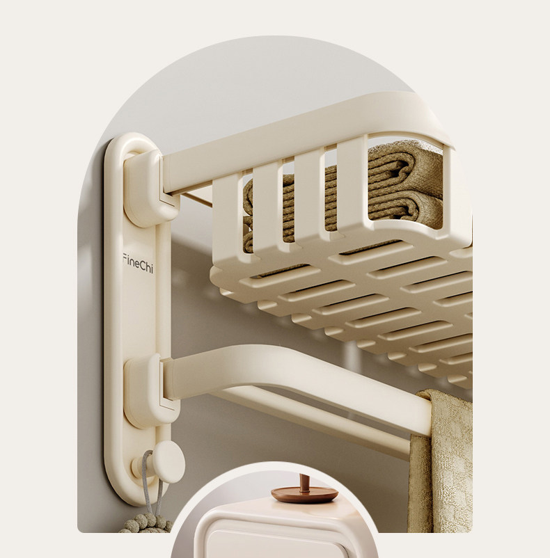Finechi Cream White Towel Rack, No-Drill Bathroom Storage Rack, Toilet Towel Rack, Space Aluminum