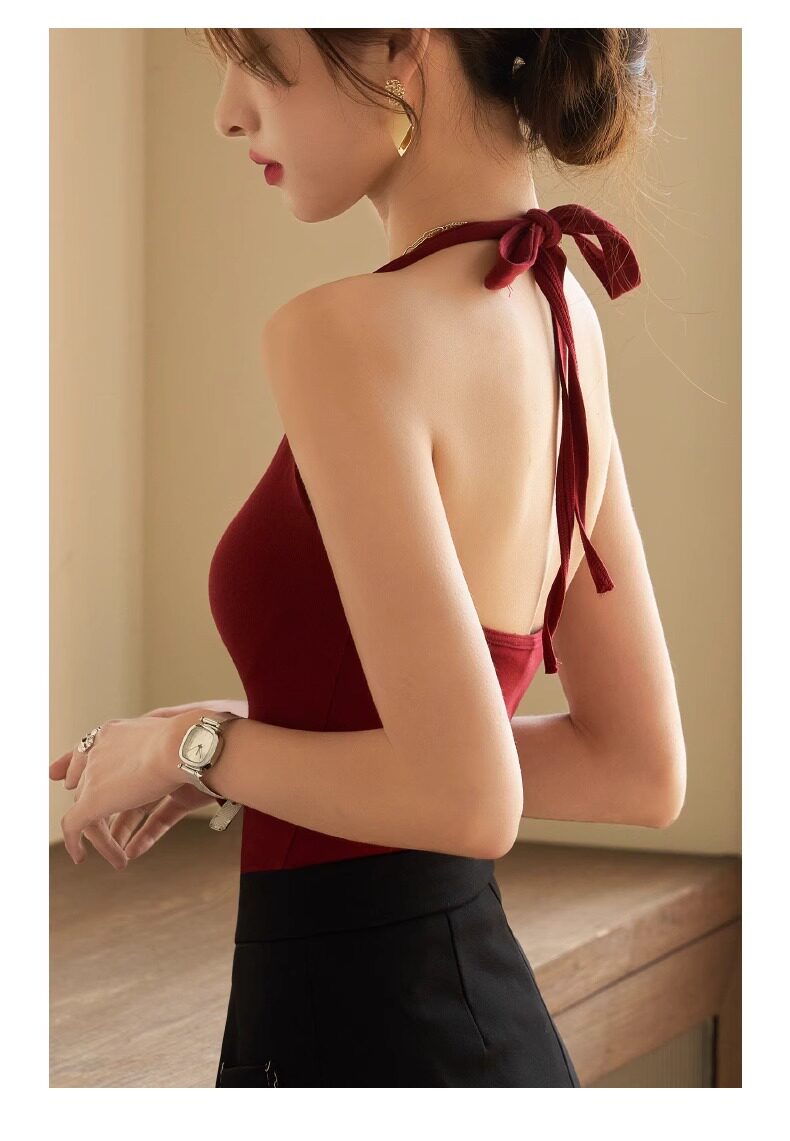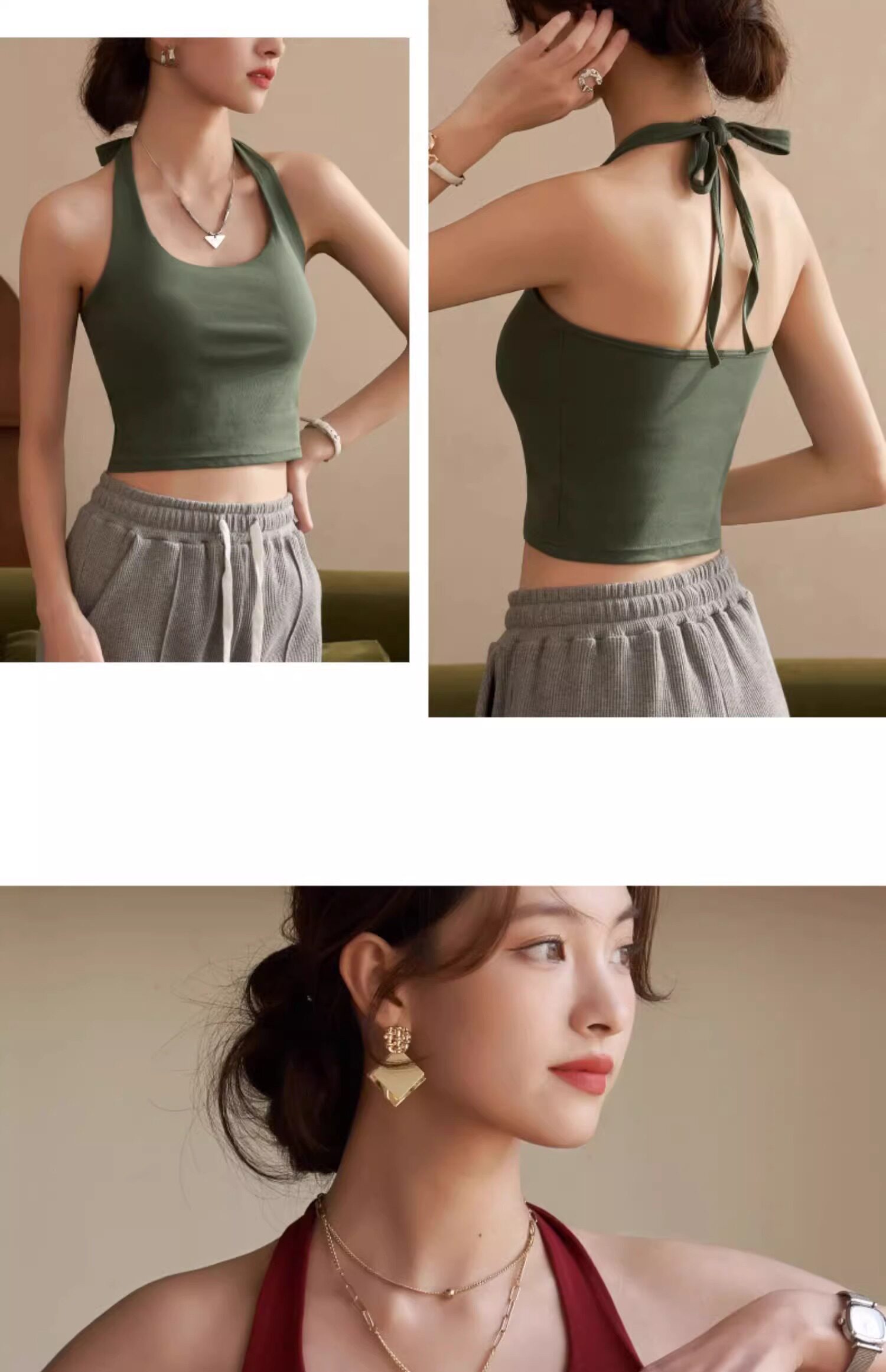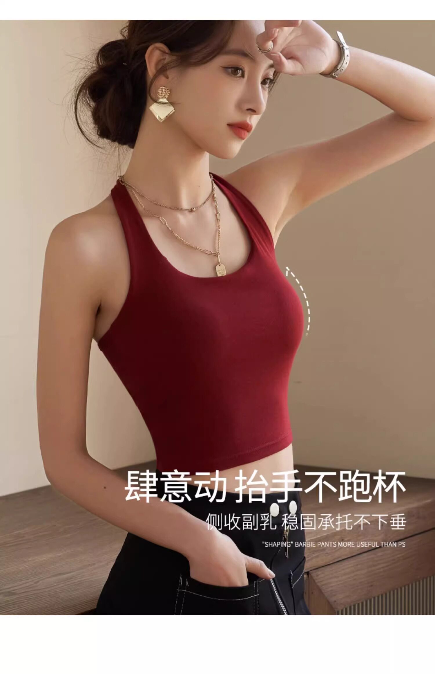 Trendy Halter Neck Yoga Tank Top for Women, Spring 2025 New Style, Slimming Inner Wear with Chest Pads, Beautiful Back Top