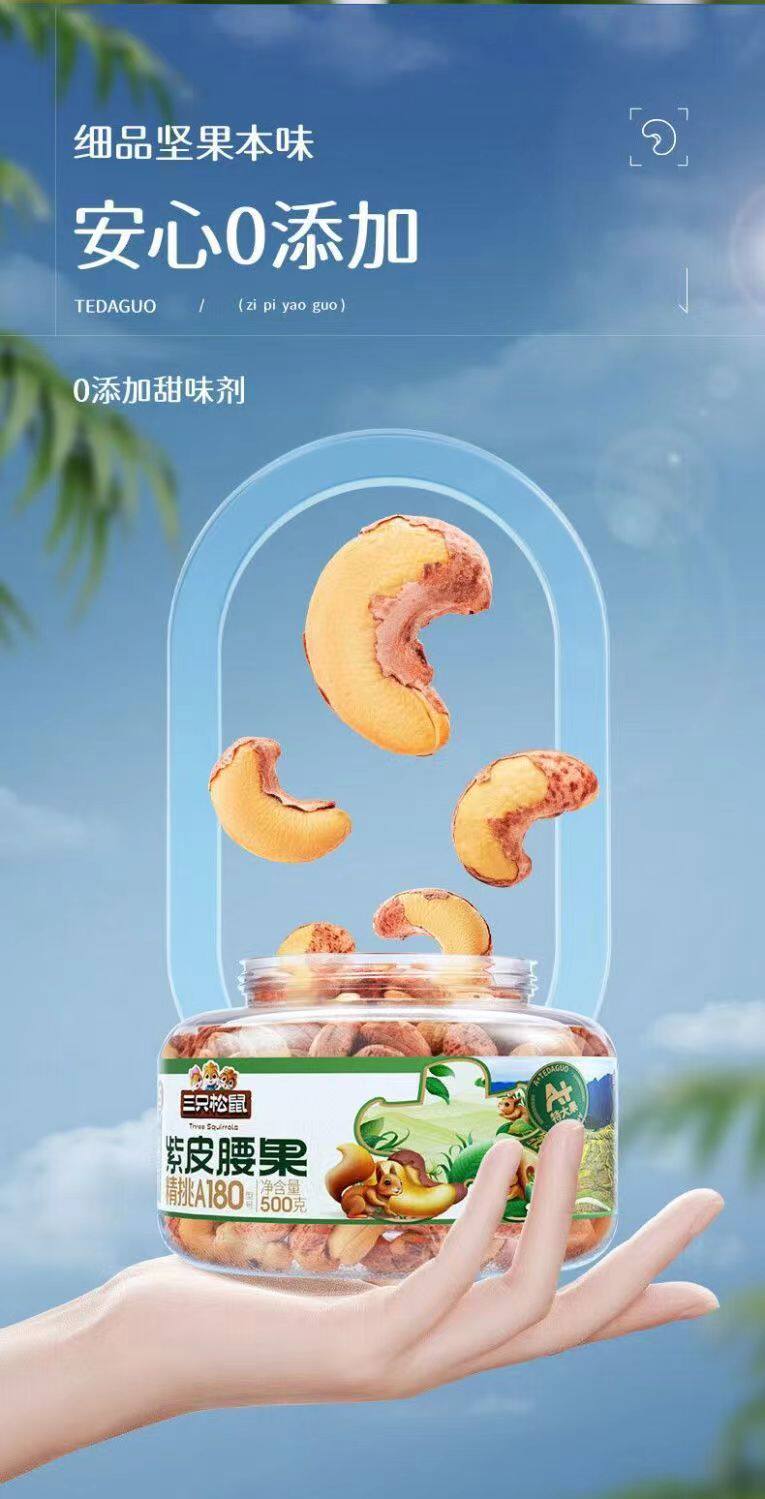Three Squirrels Purple Cashew Nuts Canned Nuts with Skin Original Flavor 275g Cashew Nuts Snacks Healthy