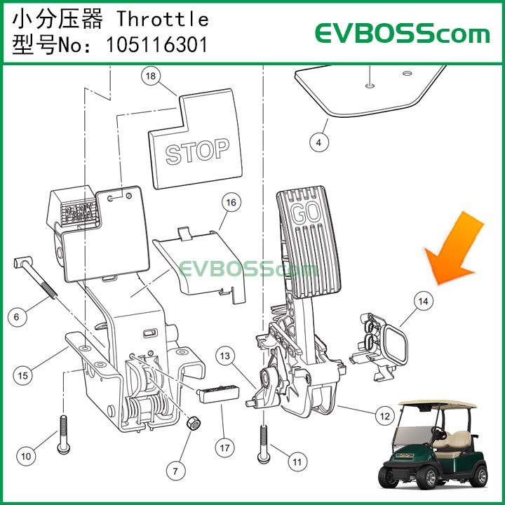 105116301 Small Pressure Regulator Throttle/Clubcar Accelerator Mcro4 Pioneer Golf Throttle