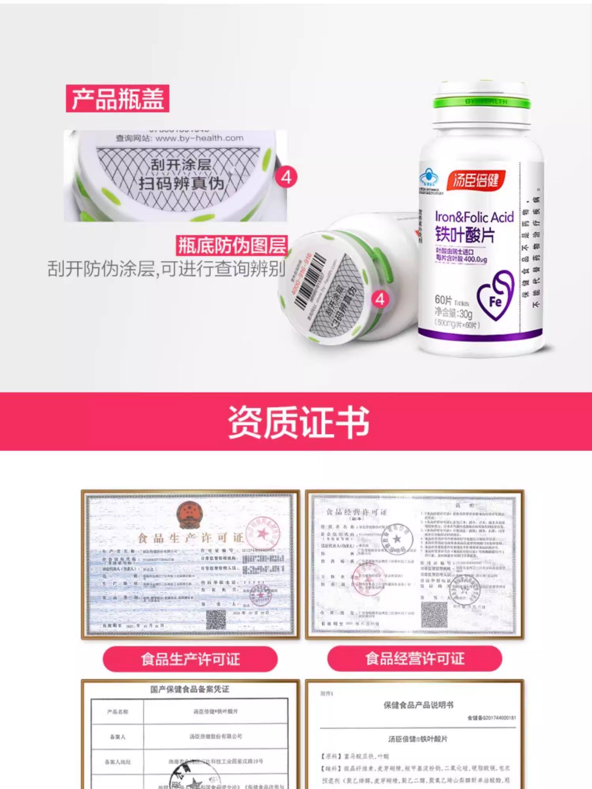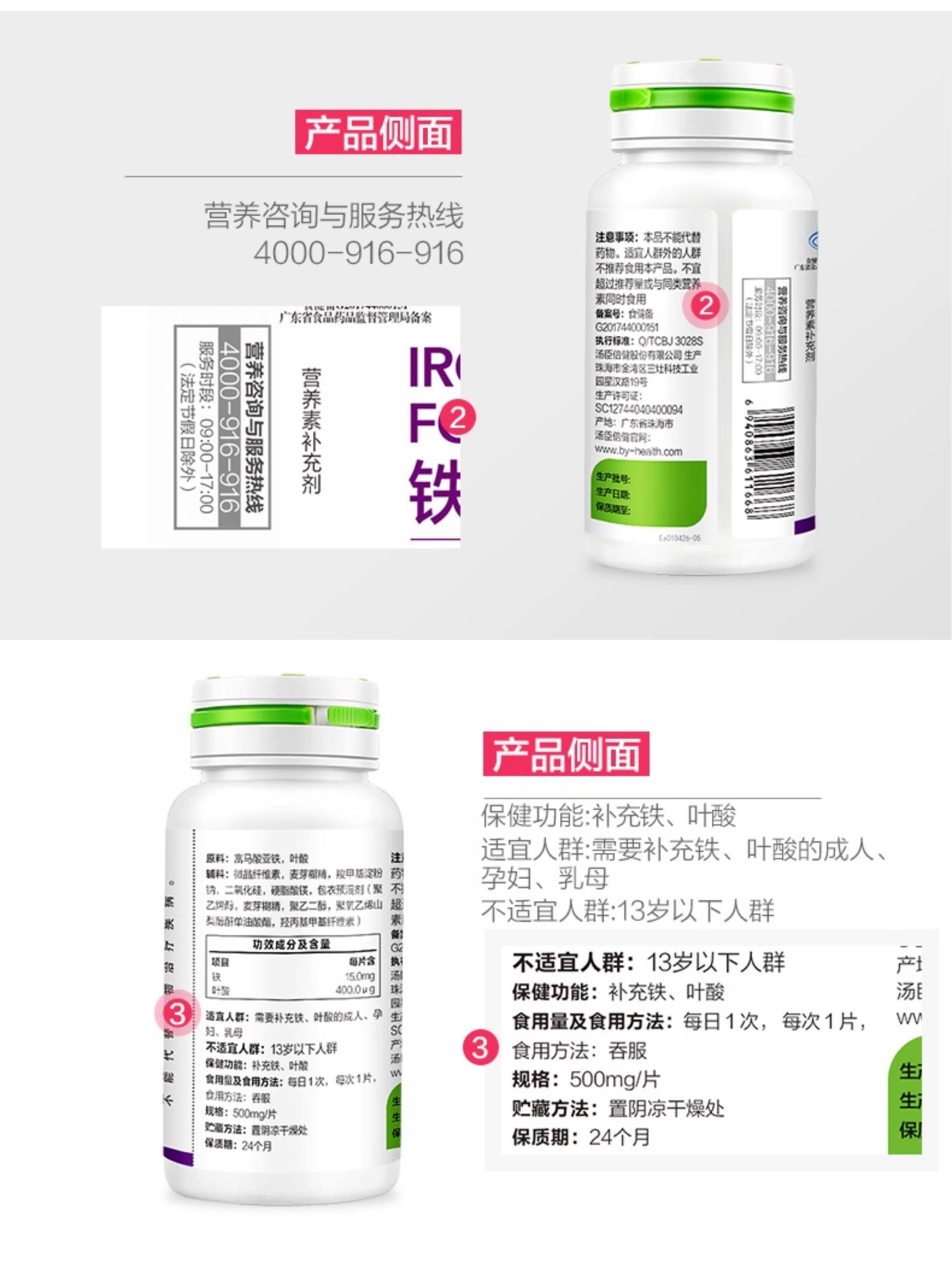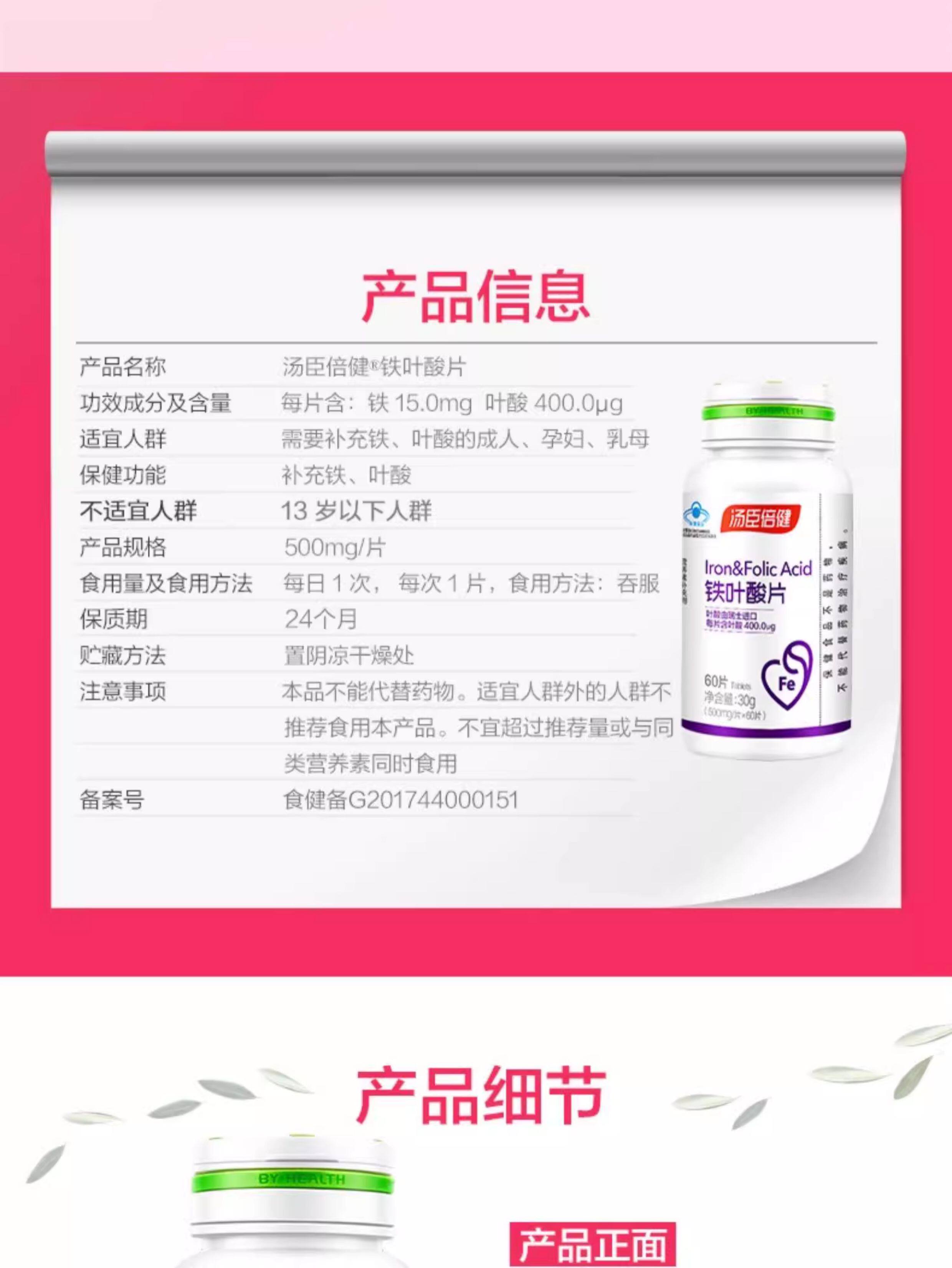 Tomson By-Health Iron Folic Acid Active Supplement for Men and Women during Pregnancy, Early Pregnancy, Pre-Pregnancy, and Lactation Official Genuine Product
