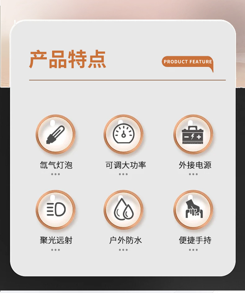 Outdoor Xenon Handheld 12V External Power Supply Spotlight Waterproof Fishing Caving 1000W Car-Mounted Marine Searchlight