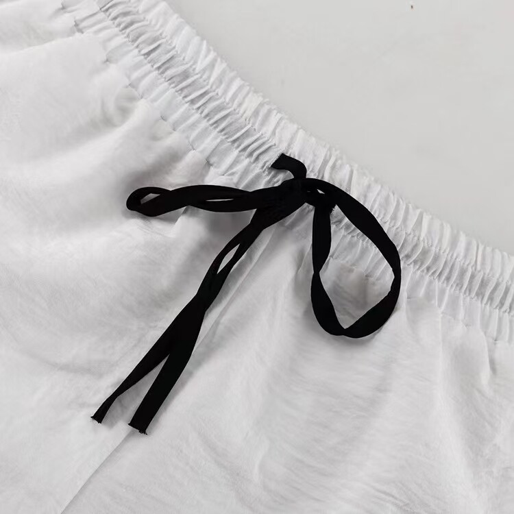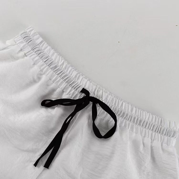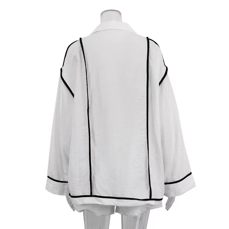 European and American style loose lapel cardigan top and lace-up shorts two-piece set Loose top and shorts set