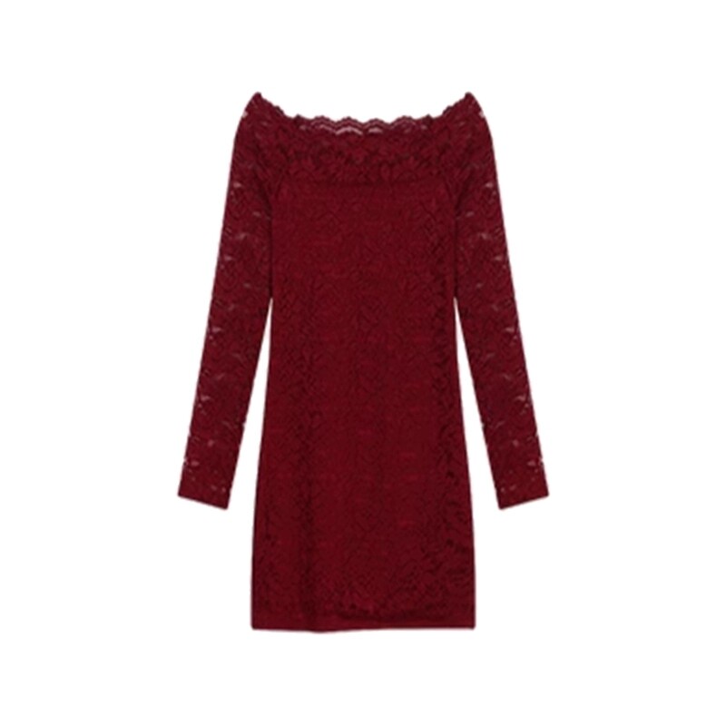 Purely Sensual Red Sexy Off-The-Shoulder Tube Top Long-Sleeved Dress, a Stylish and Alluring Figure-Hugging Lace Bodycon Dress