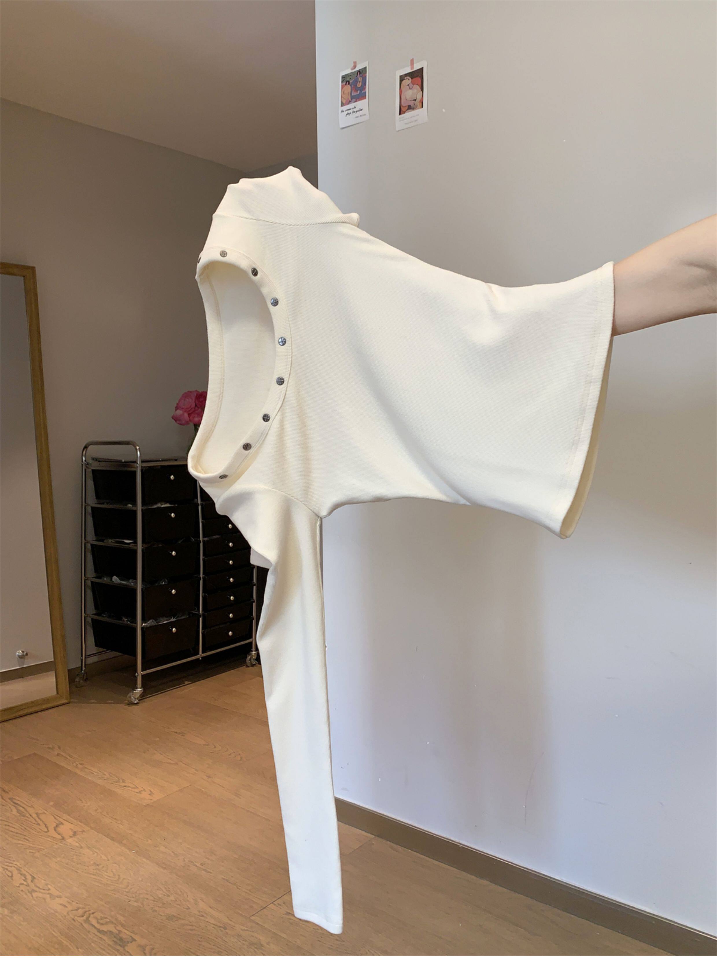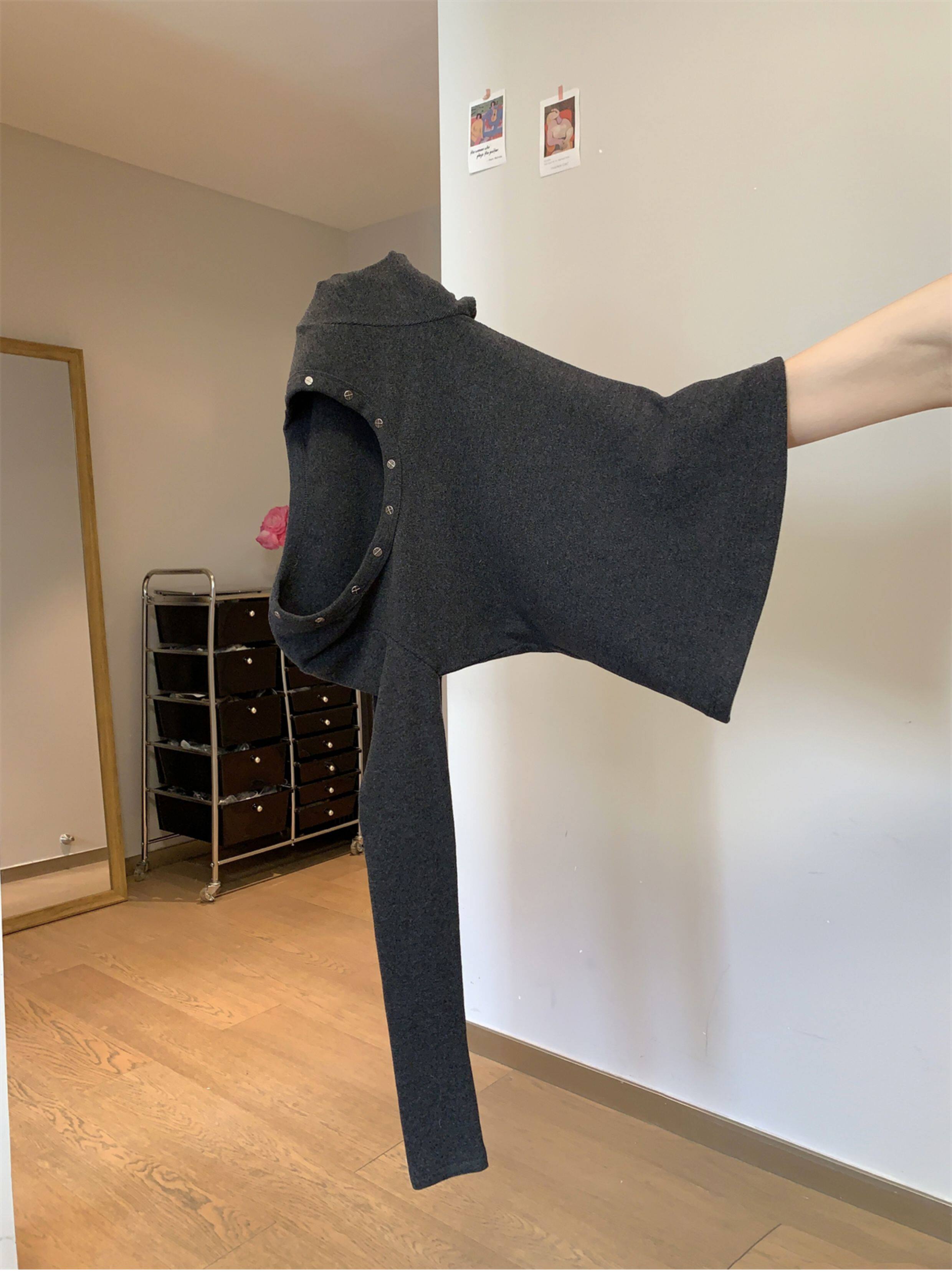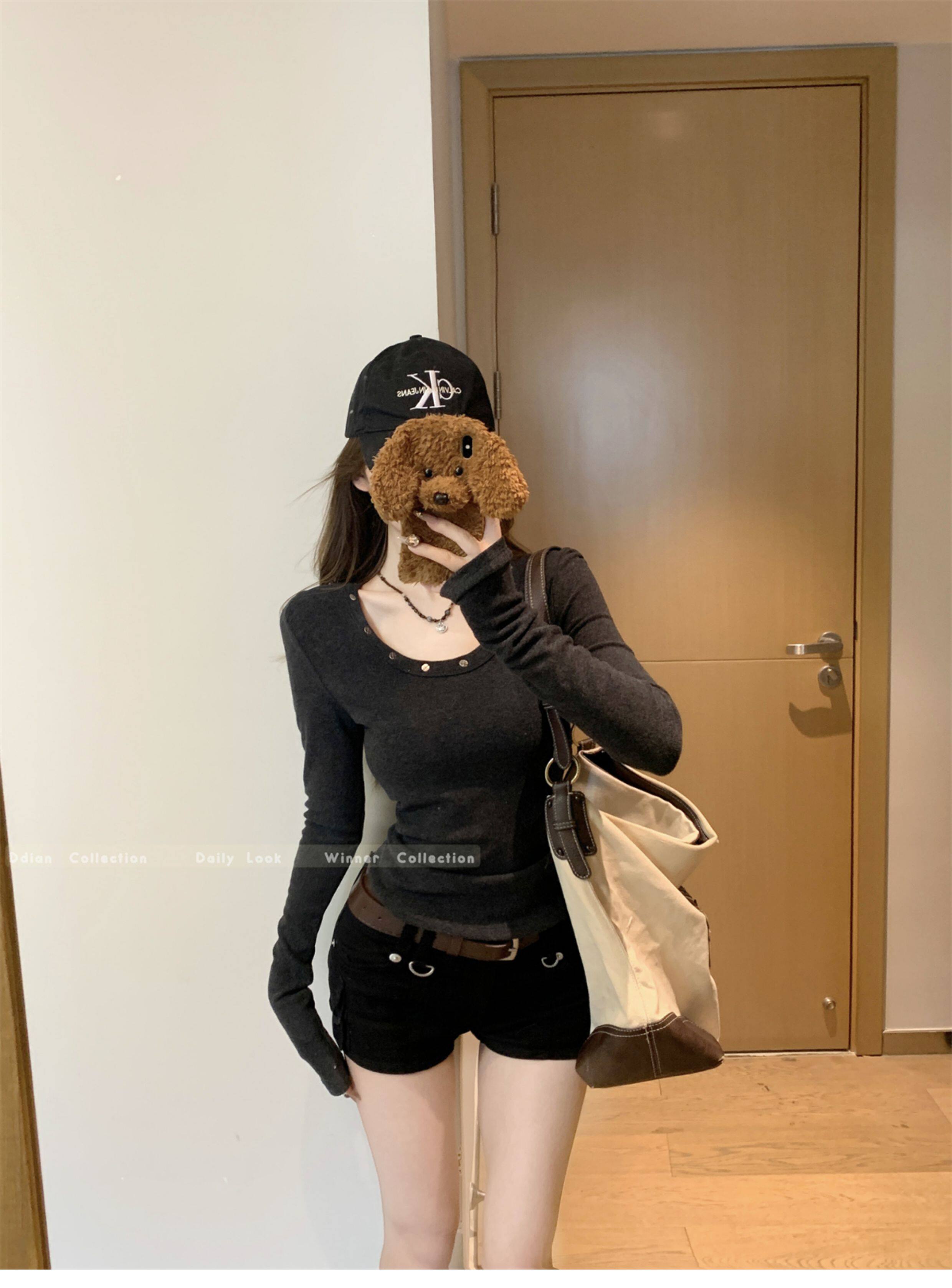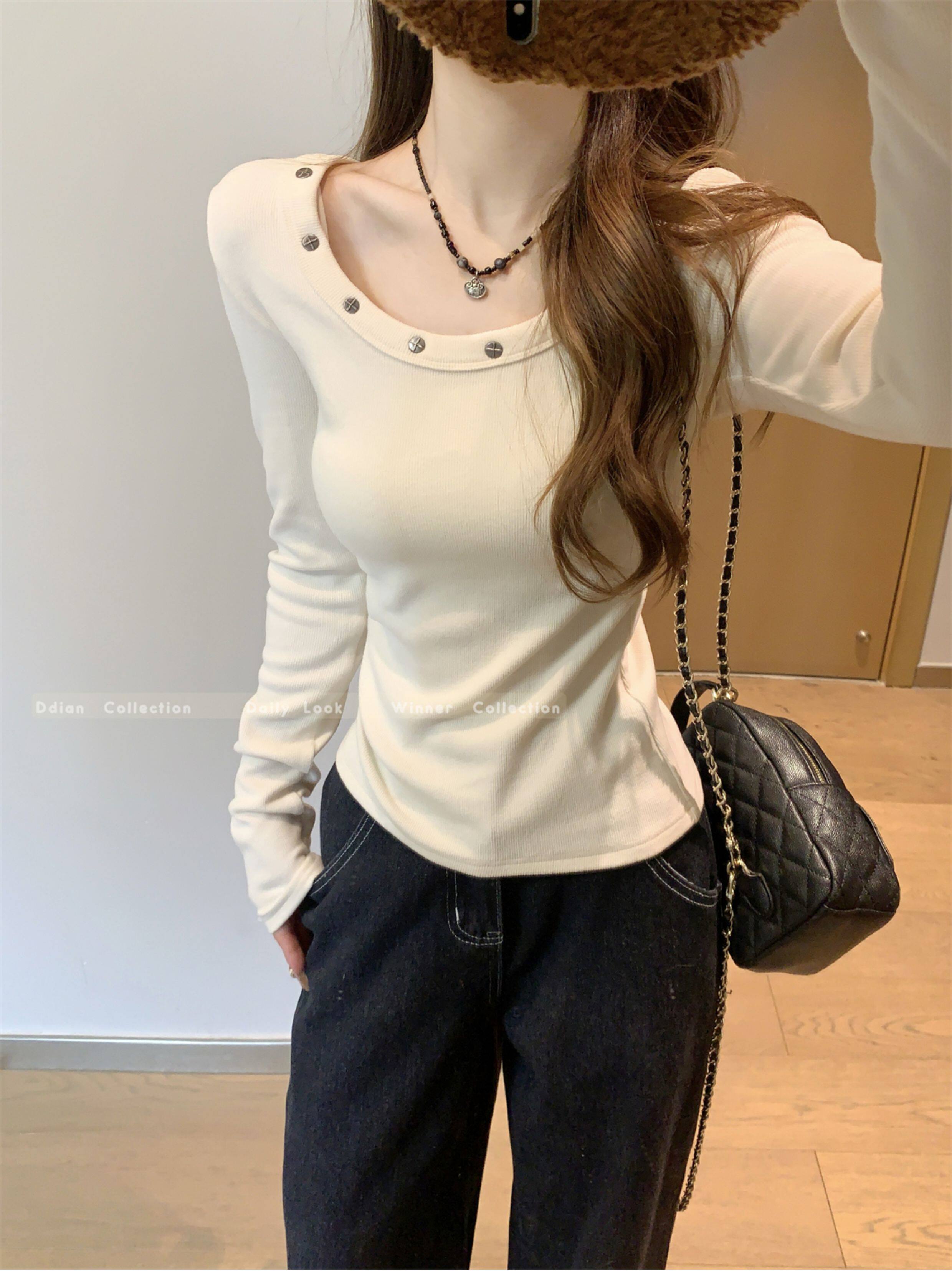 Low Round Neck Rivet Design Cashmere Base Shirt for Women, New Autumn and Winter High-End Gray Slim Fit Long-Sleeved T-Shirt Top