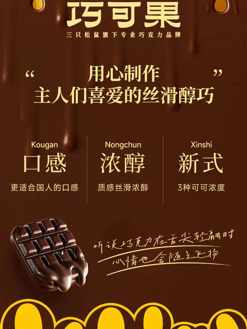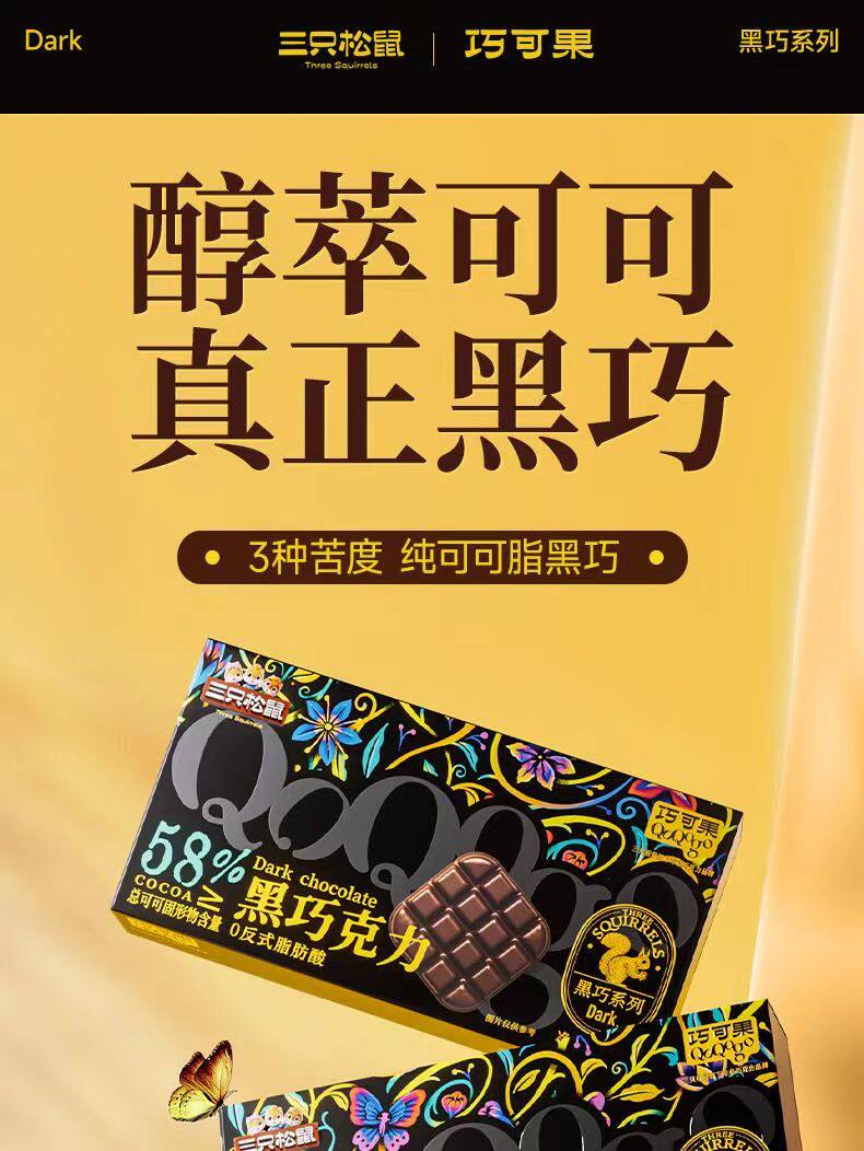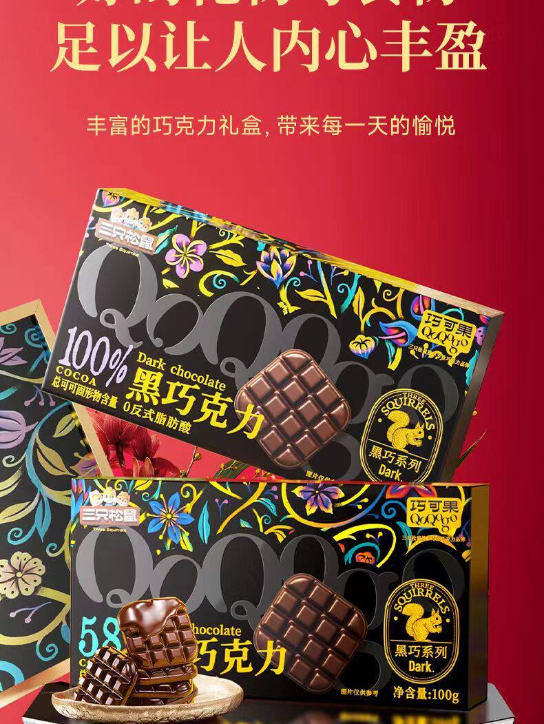 Three Squirrels Dark Chocolate 100g Boxed Snacks Dark Chocolate Taste Silky and Great Value and Delicious