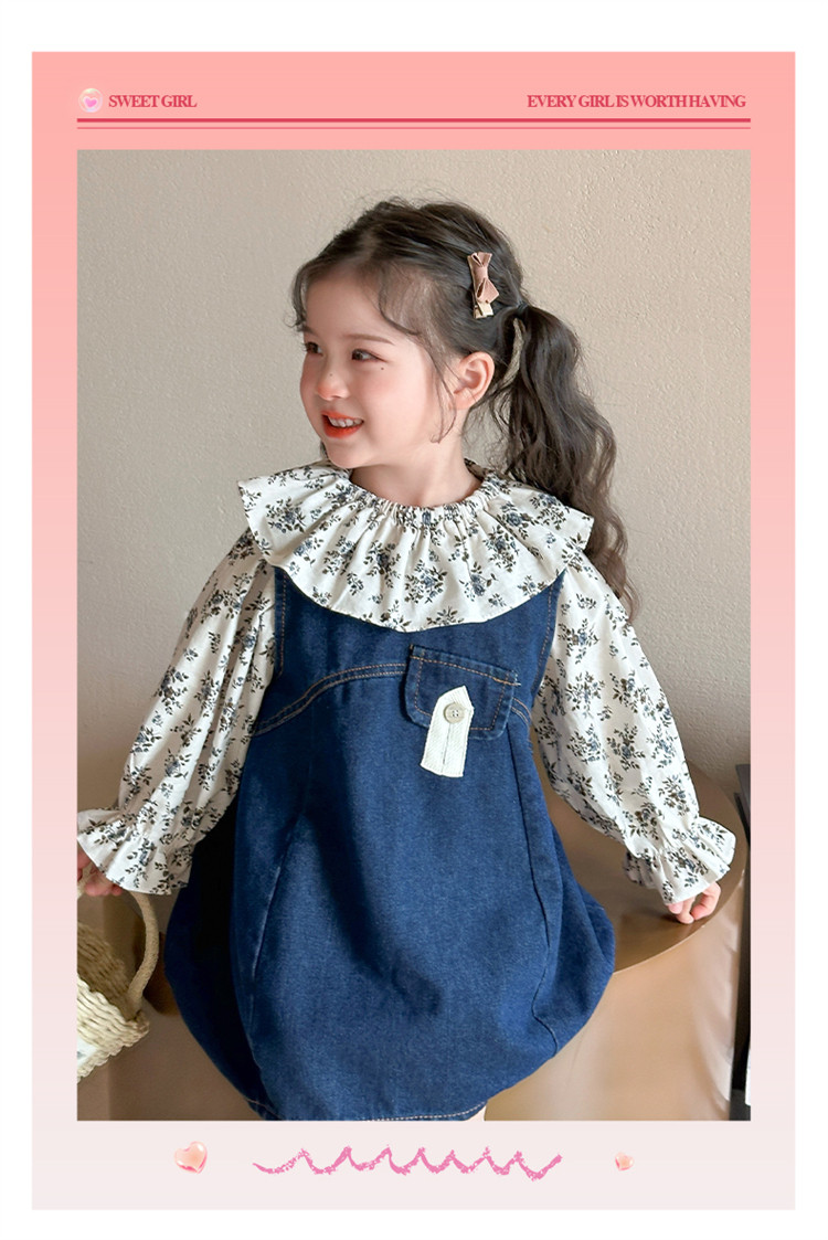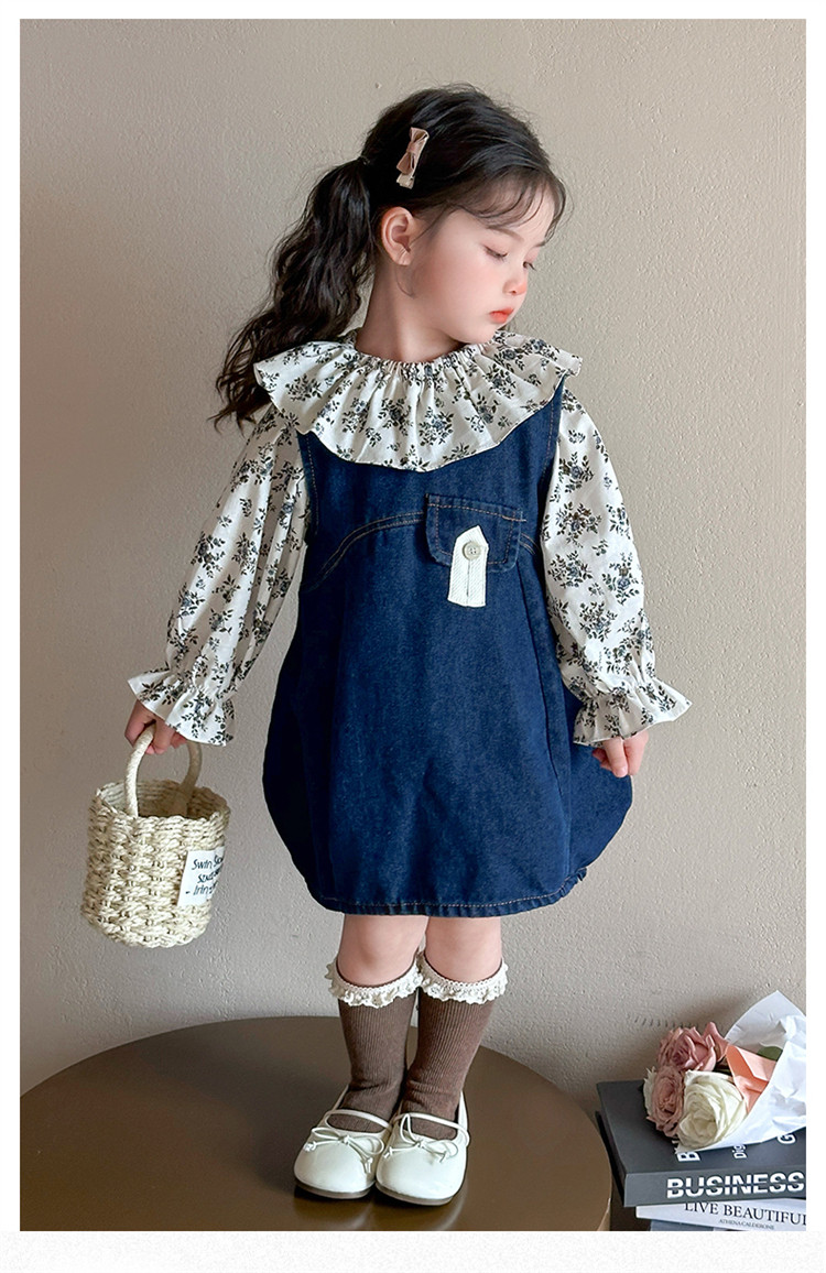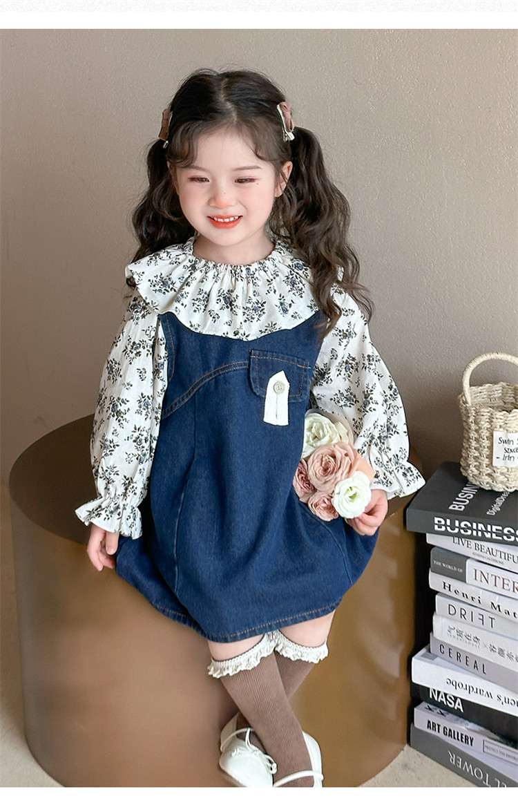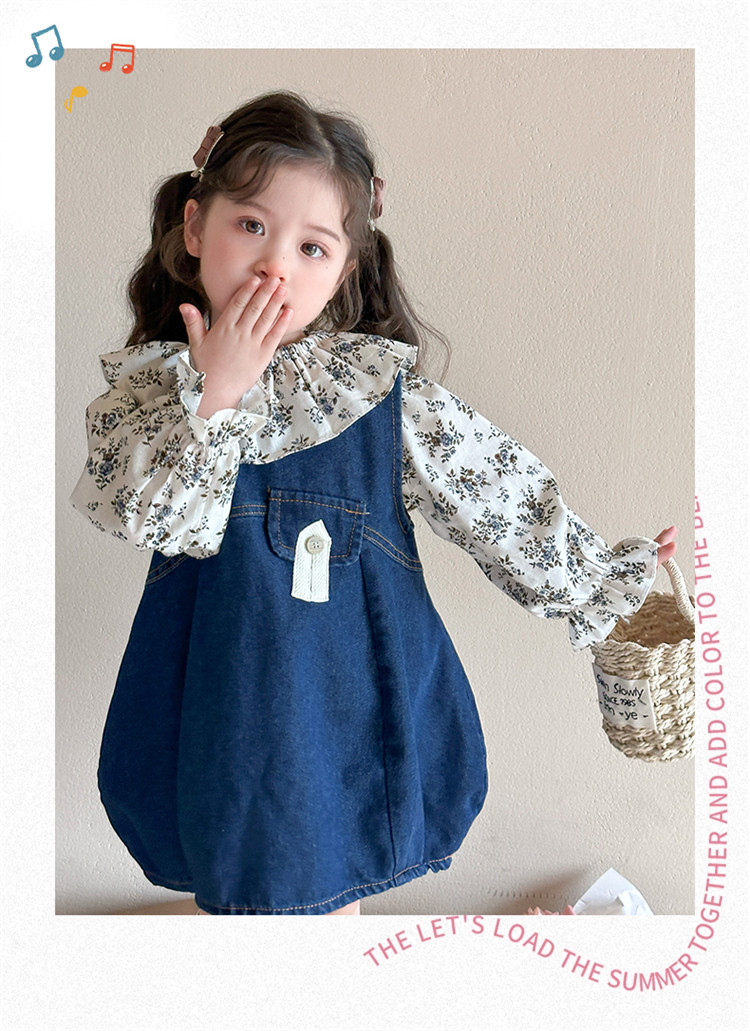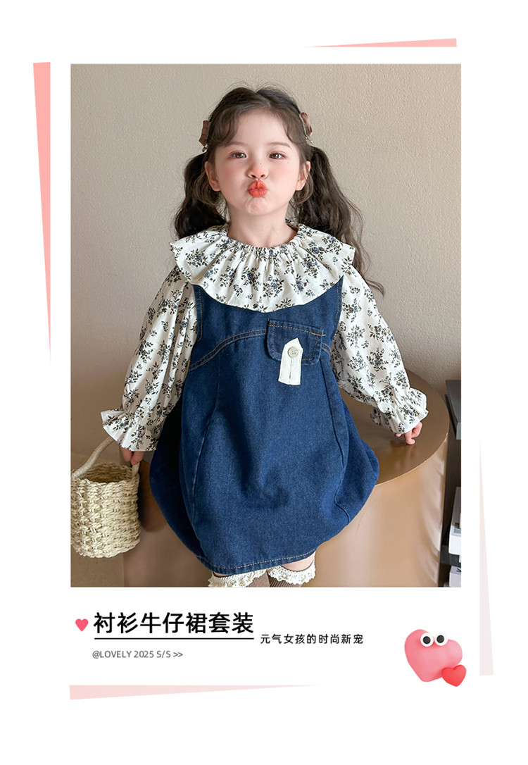 Girls' Denim Suspender Skirt Set 2025 Spring New Style Kidsren's Stylish Floral Dress Baby Two-Piece Set