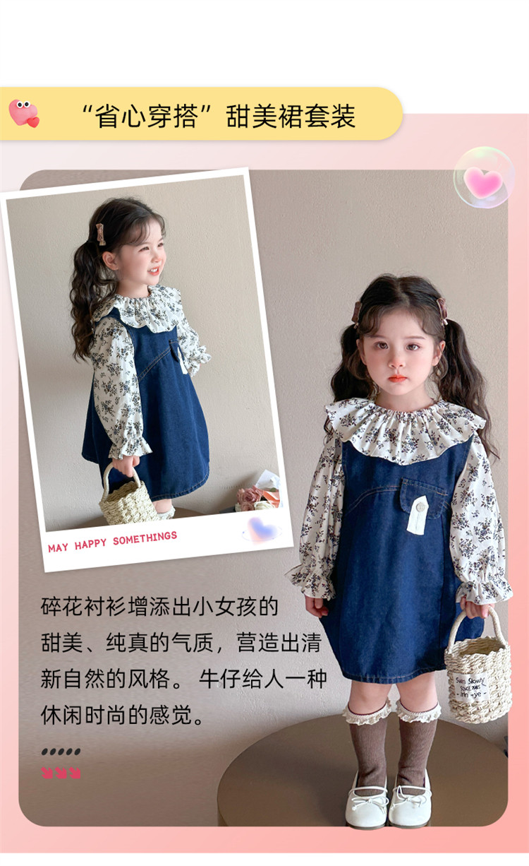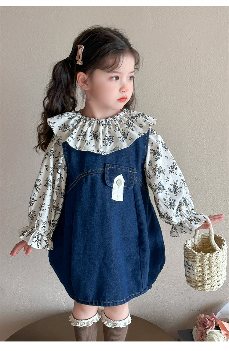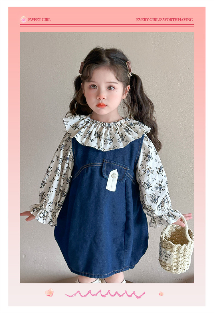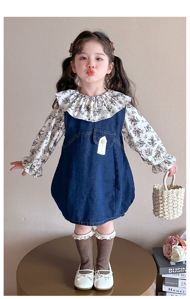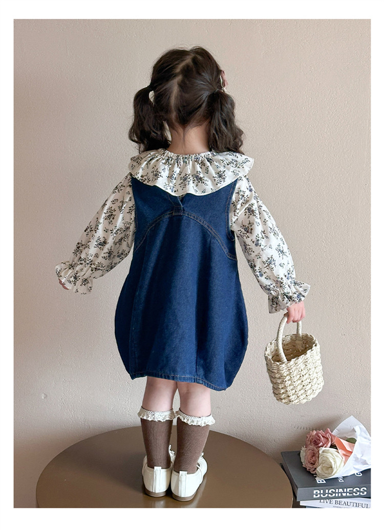 Girls' Denim Suspender Skirt Set 2025 Spring New Style Kidsren's Stylish Floral Dress Baby Two-Piece Set