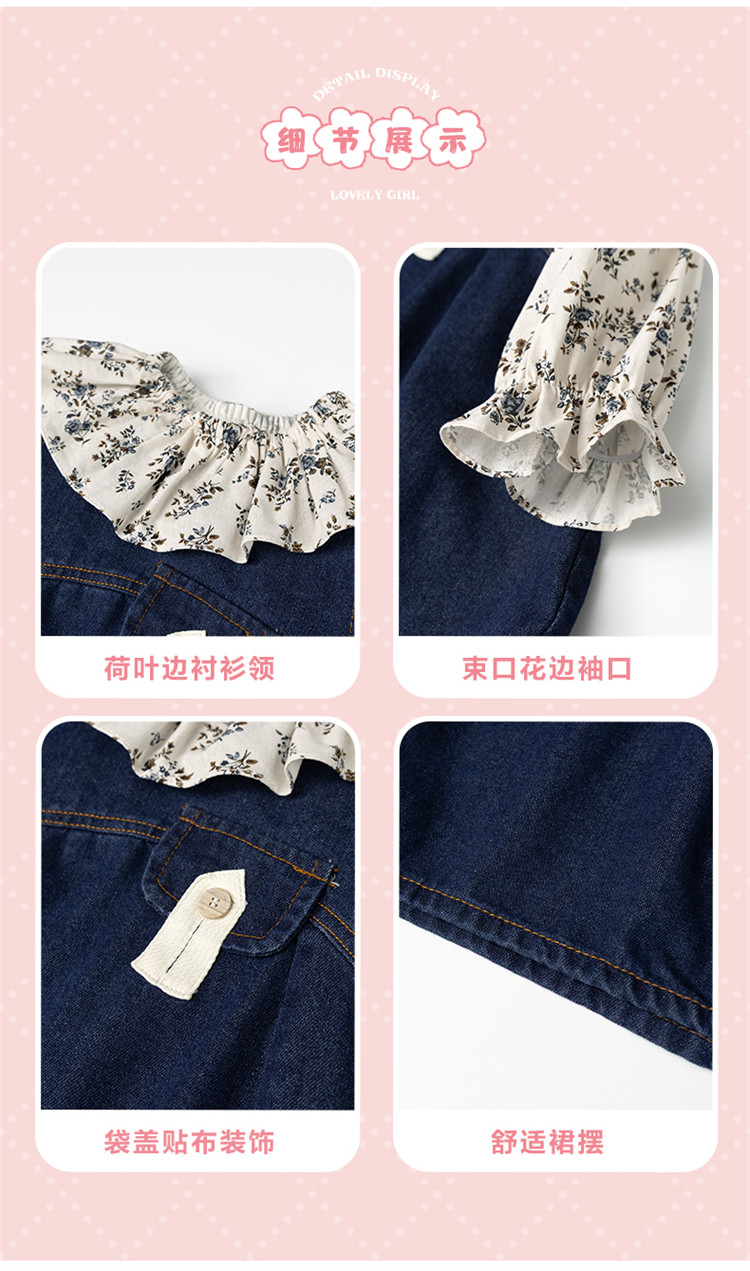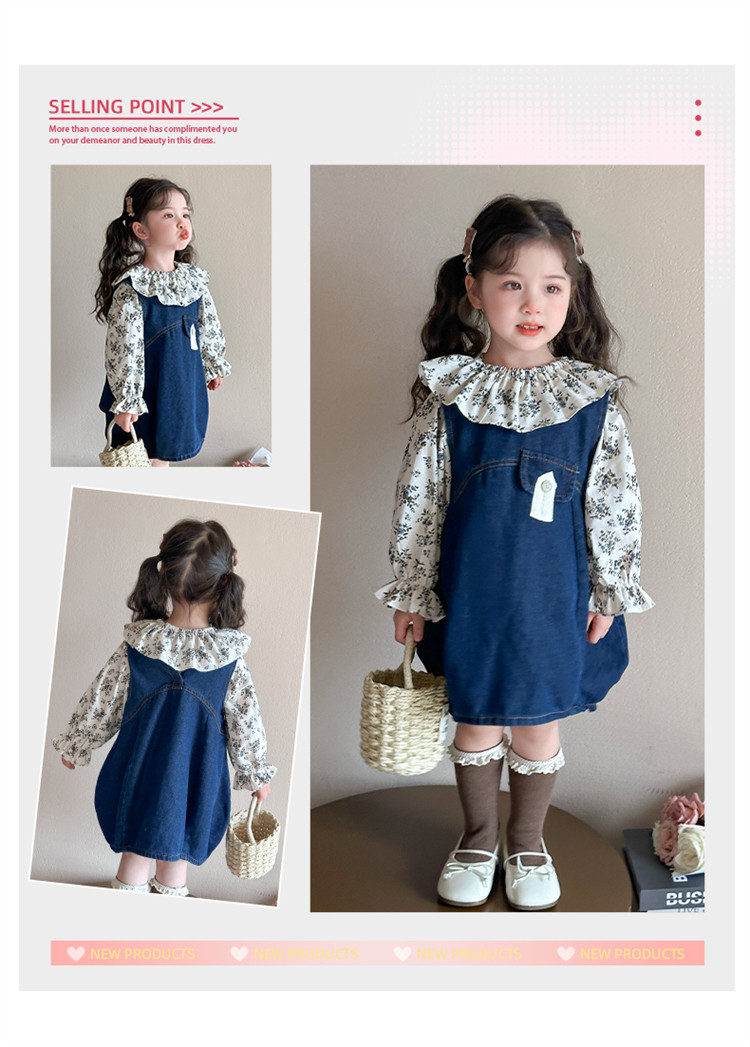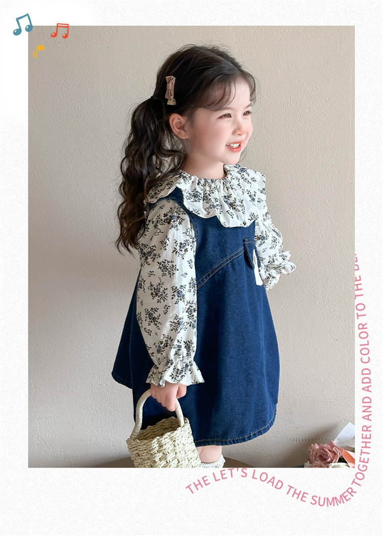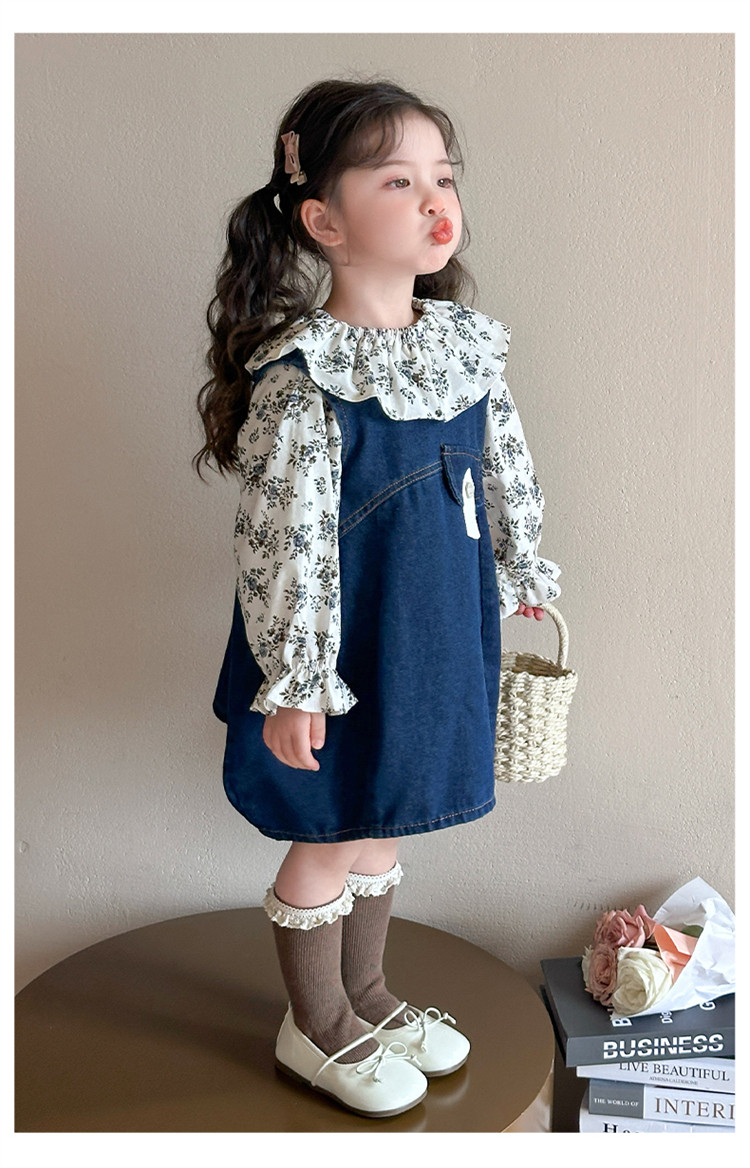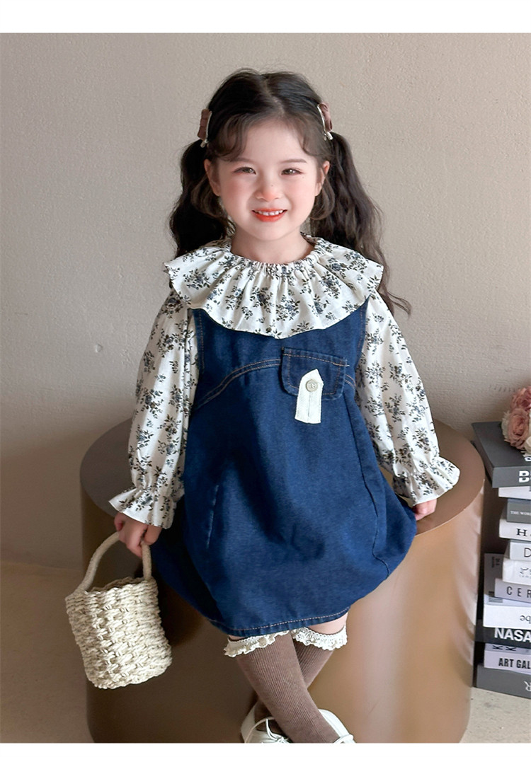Girls' Denim Suspender Skirt Set 2025 Spring New Style Kidsren's Stylish Floral Dress Baby Two-Piece Set
