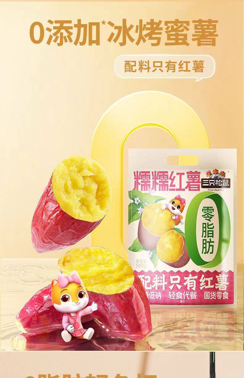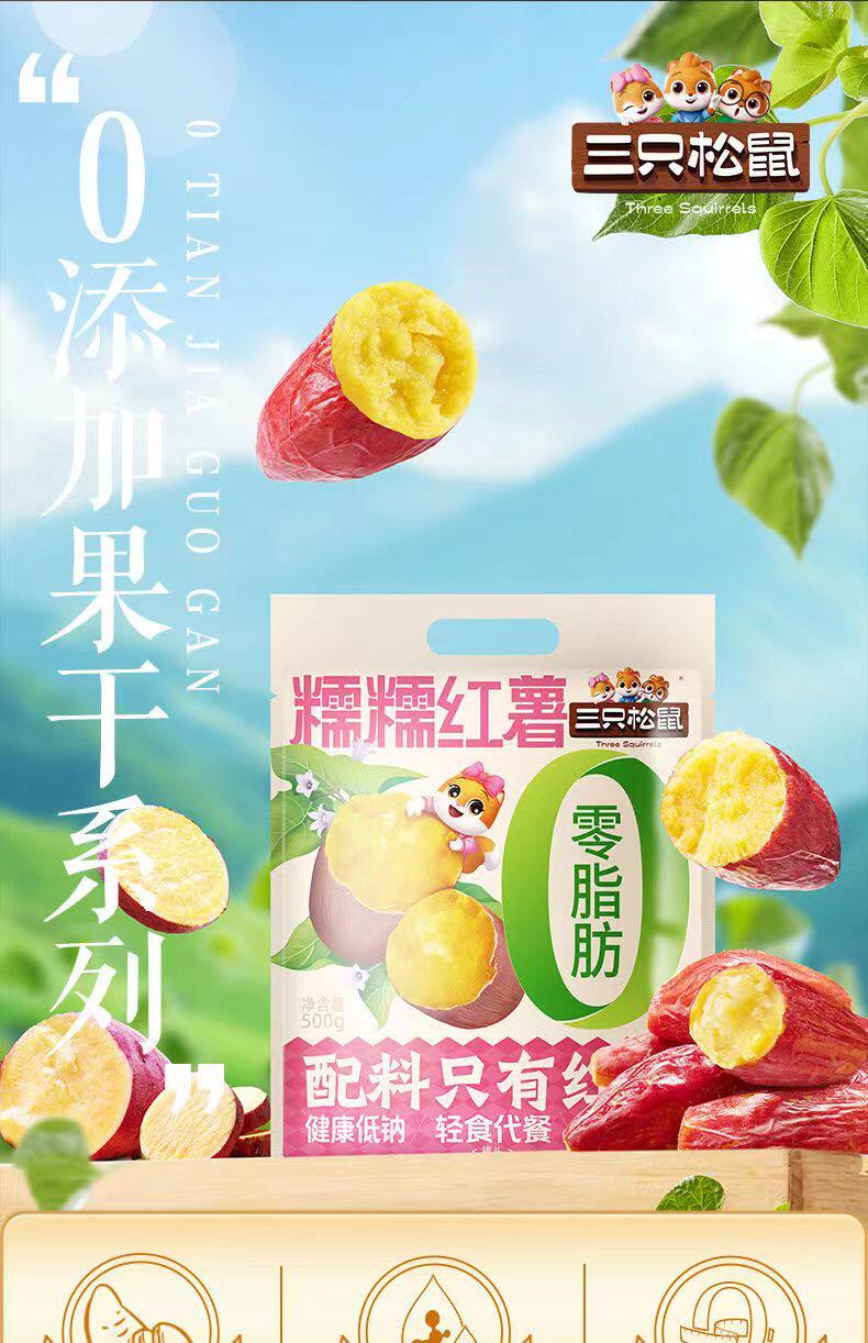 Three Squirrels Glutinous Sweet Potatoes 500g*1 Bag, a Healthy and Nutritious Snack with Great Value