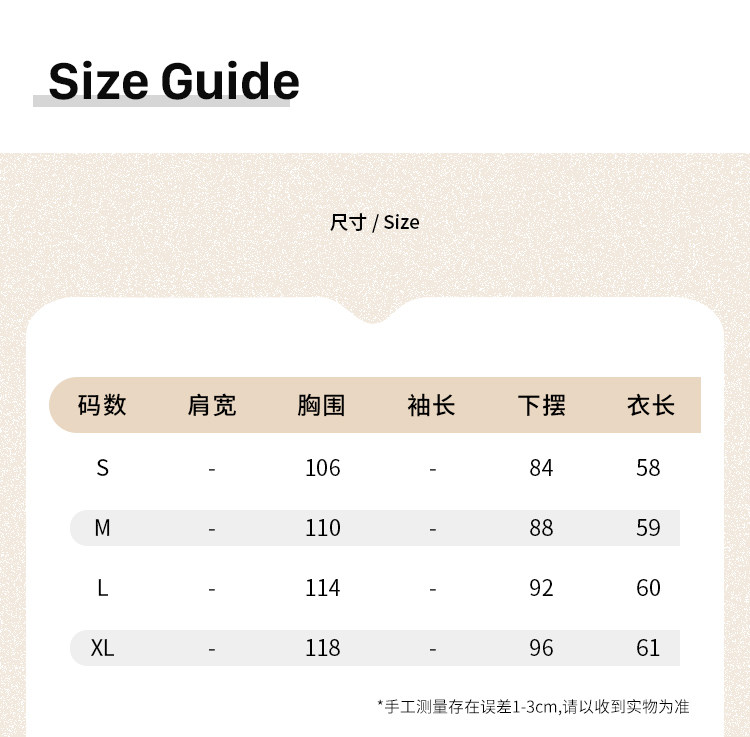 China (cm) 160-165/84-86 165-170 / 88-90 167-172 / 92-96 168-173 / 98-102 170-176 / 106-110