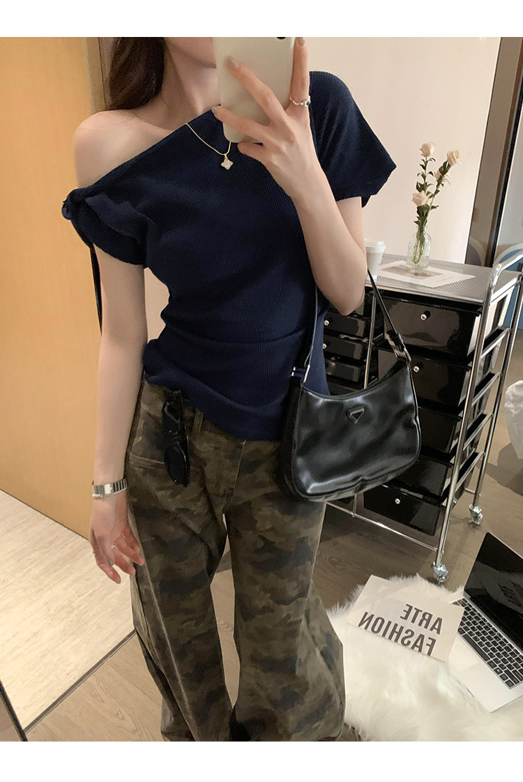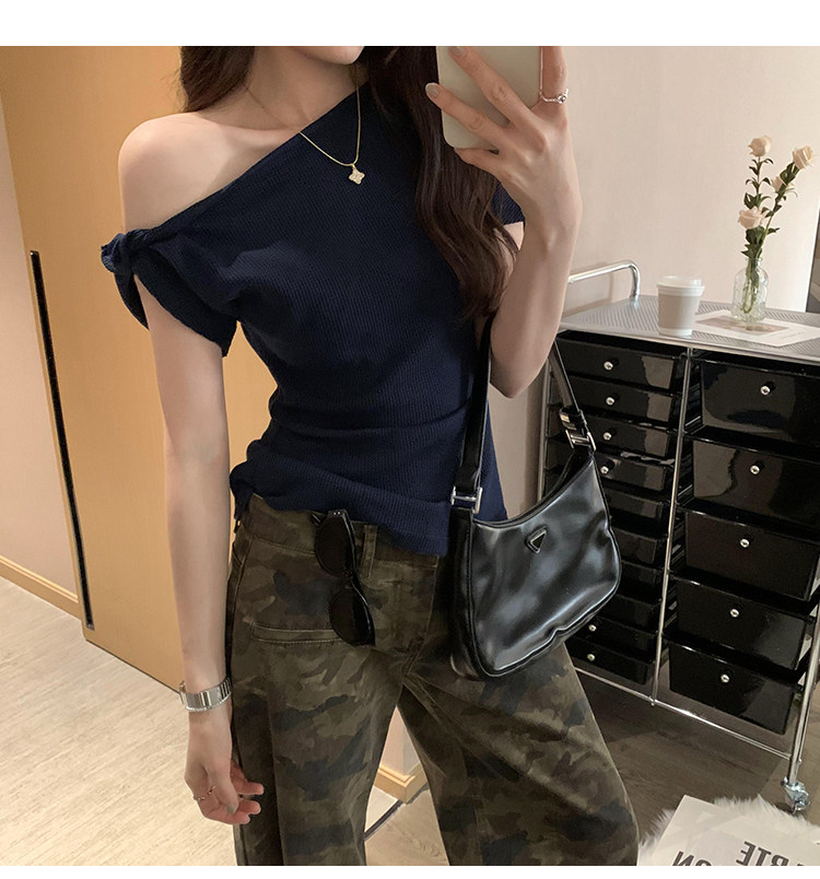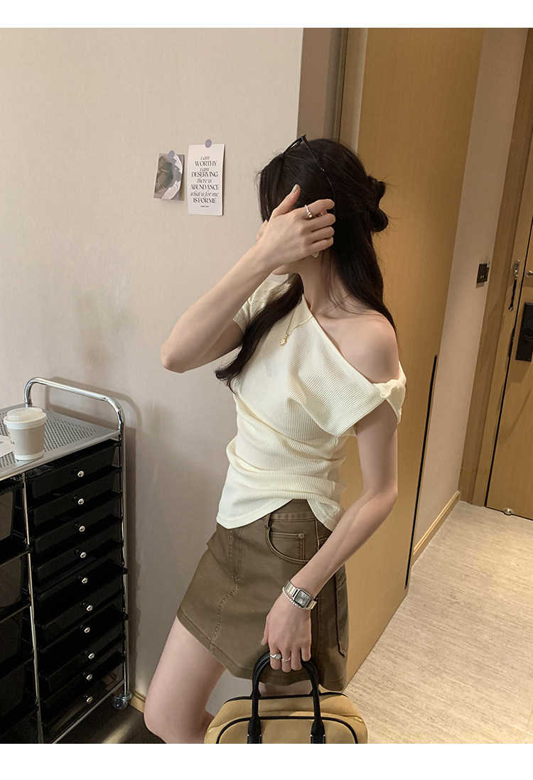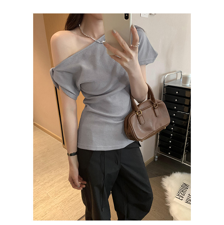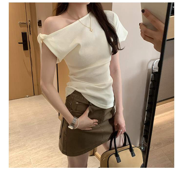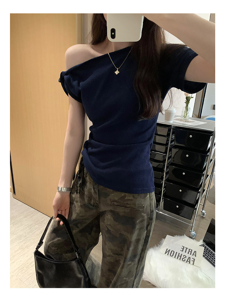 Unique Design Twisted Short-Sleeve Korean-Style Off-Shoulder T-Shirt for Women, Summer 2025 New Style, Pure and Sexy Off-Shoulder Top
