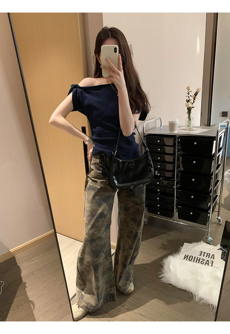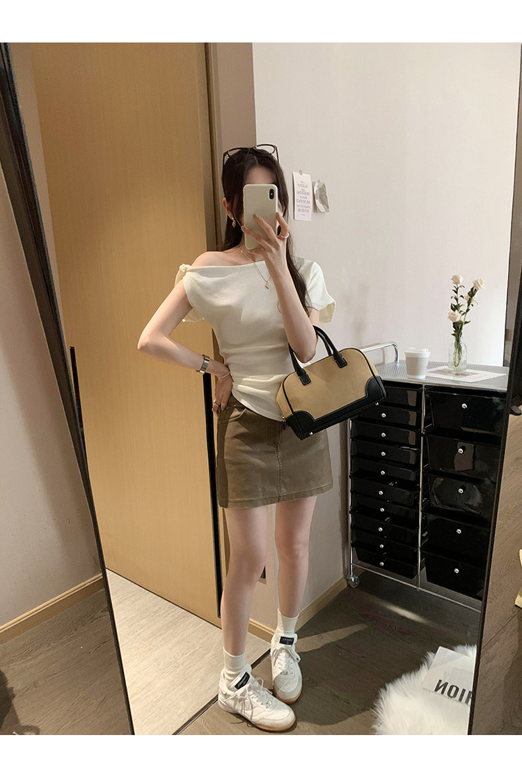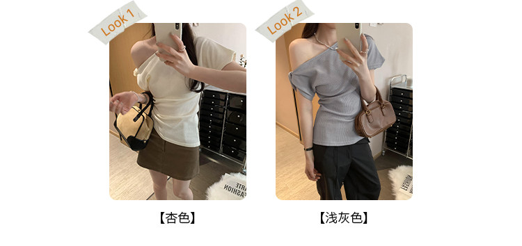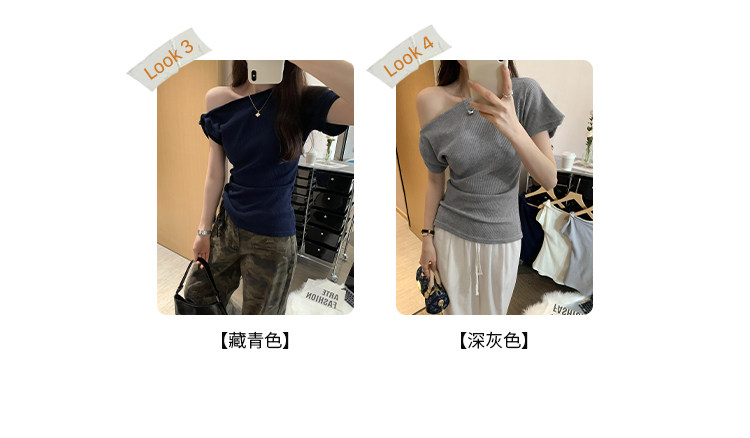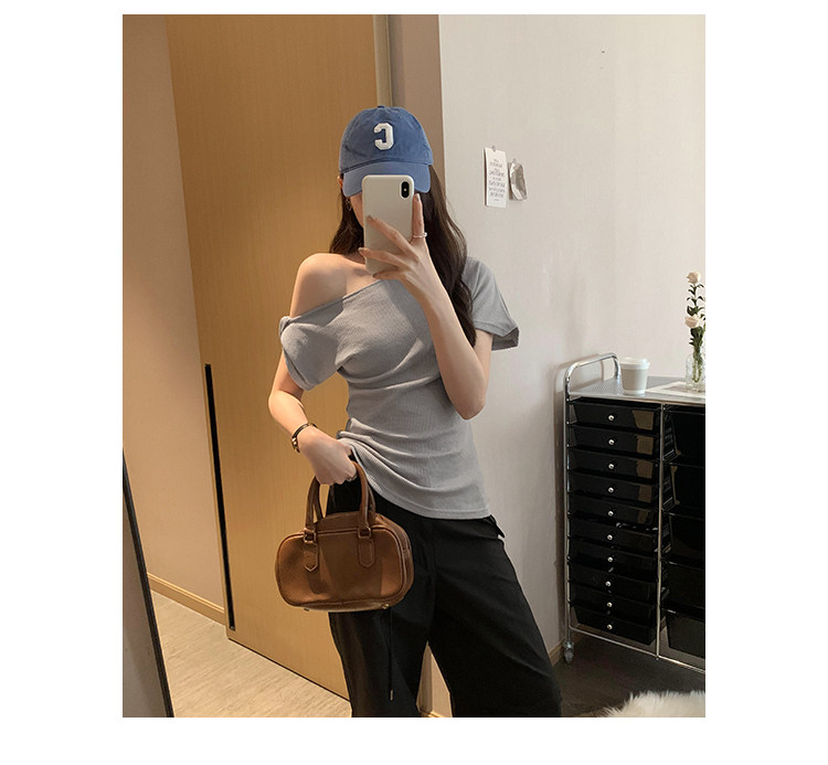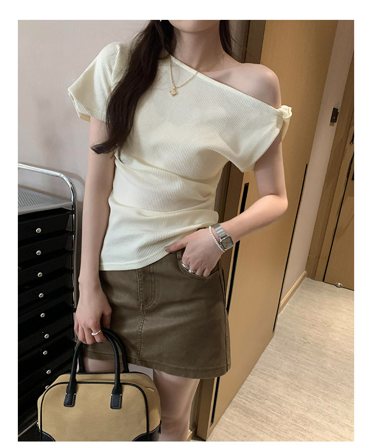 Unique Design Twisted Short-Sleeve Korean-Style Off-Shoulder T-Shirt for Women, Summer 2025 New Style, Pure and Sexy Off-Shoulder Top