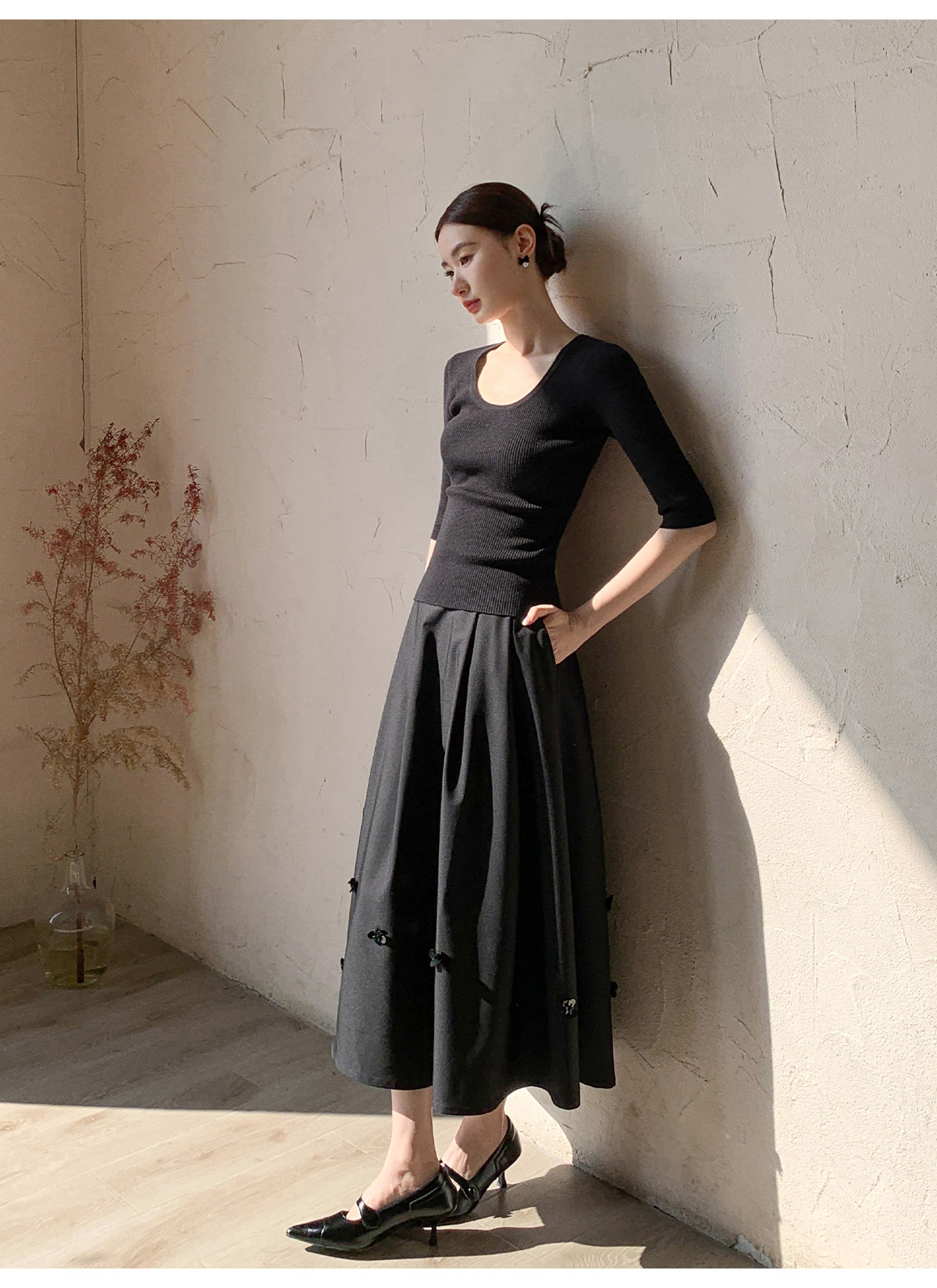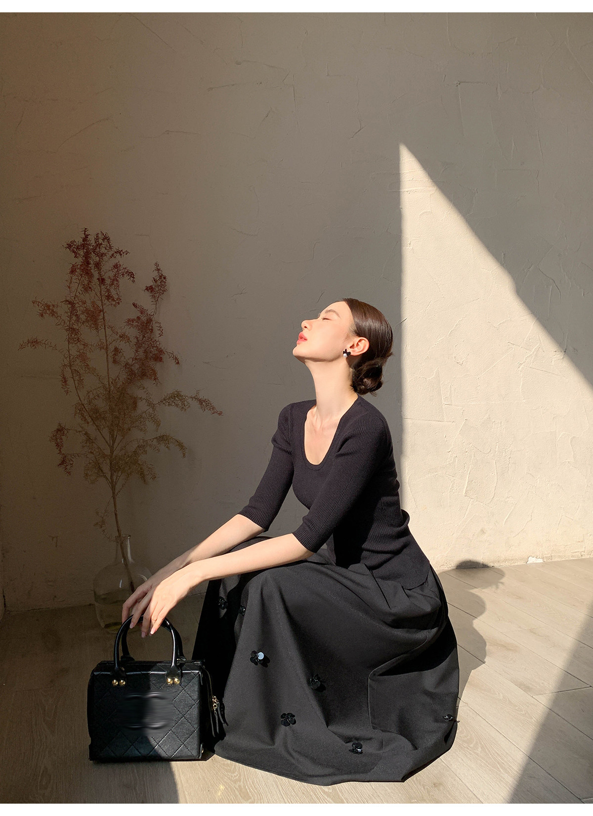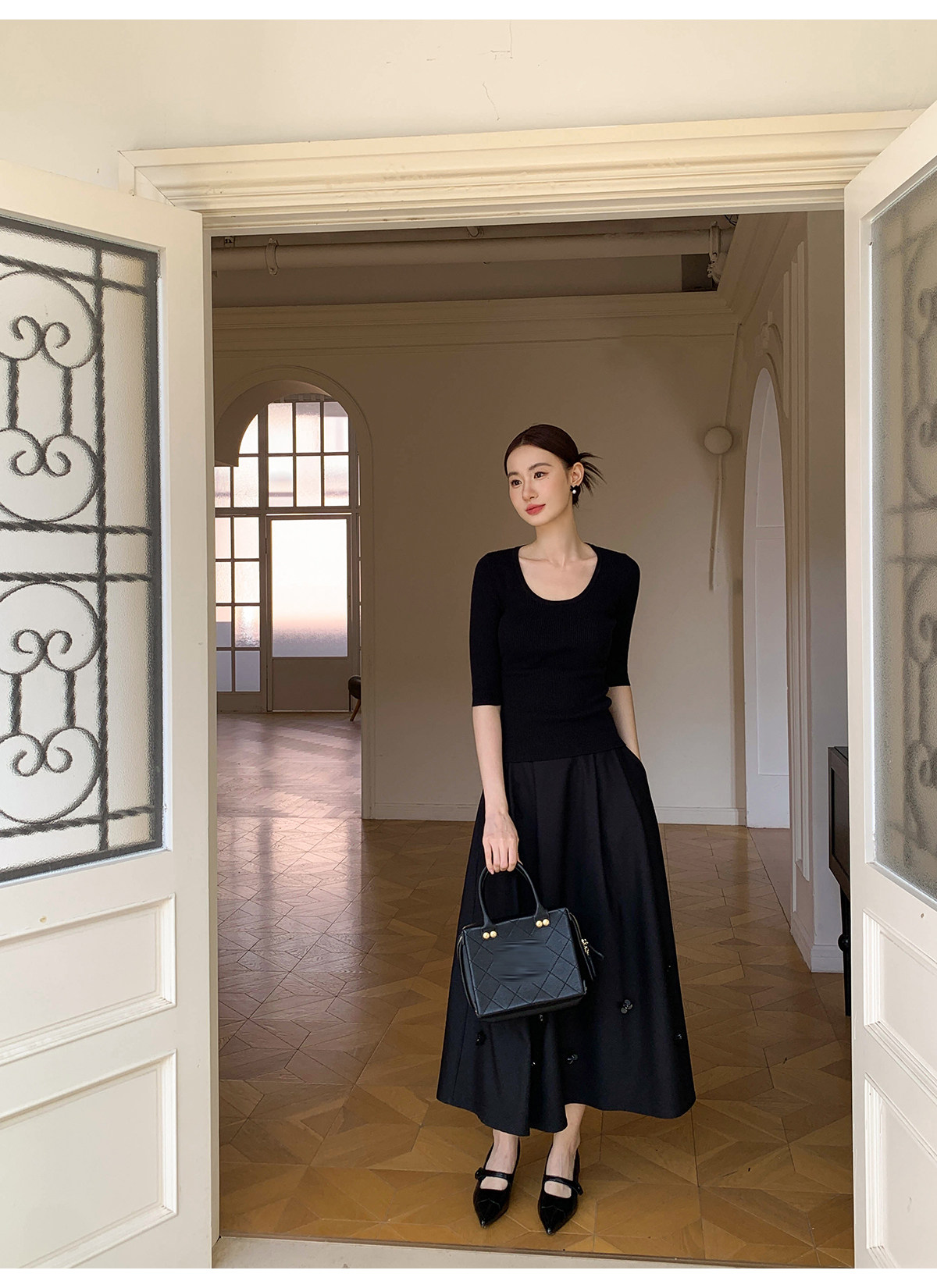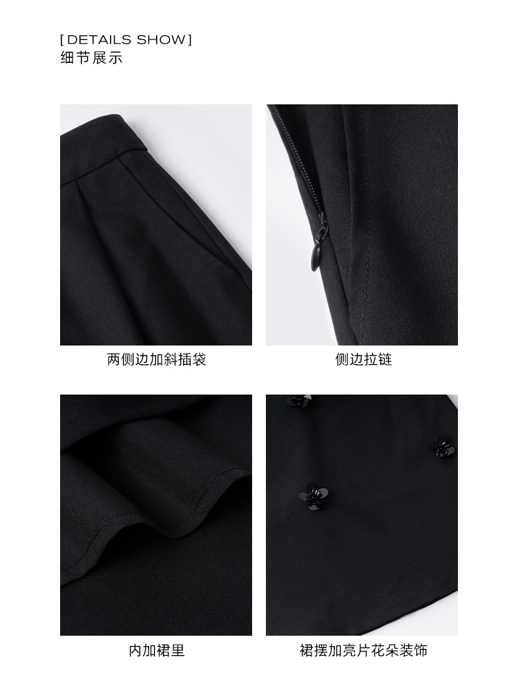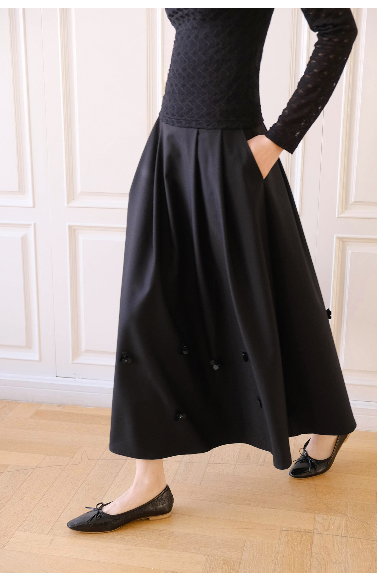 Xxning French Retro Handmade Beaded Sequin Half-Length Umbrella Skirt for Women, Stylish and Elegant, Slimming Long Skirt for Commuting