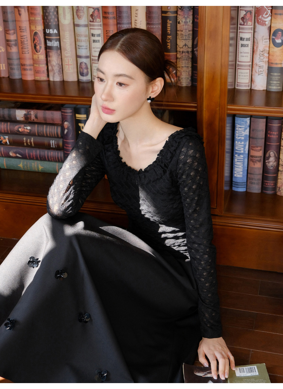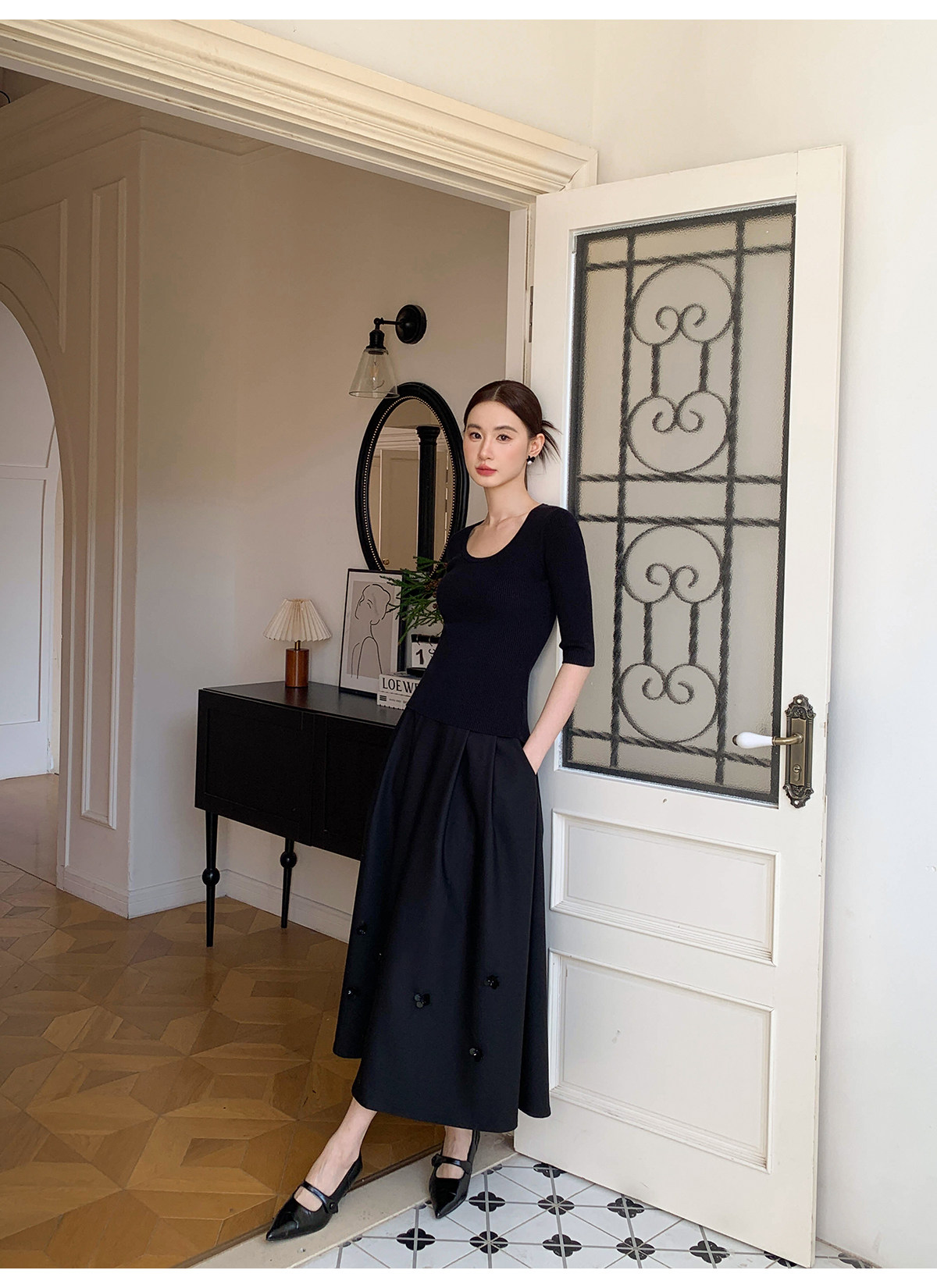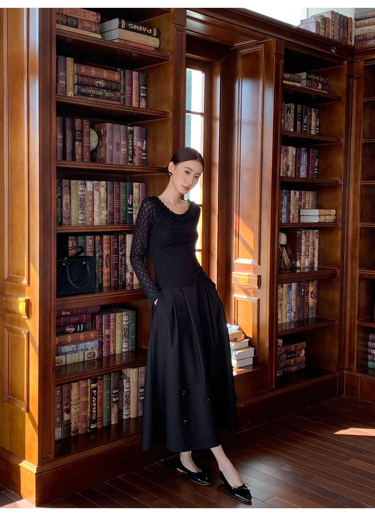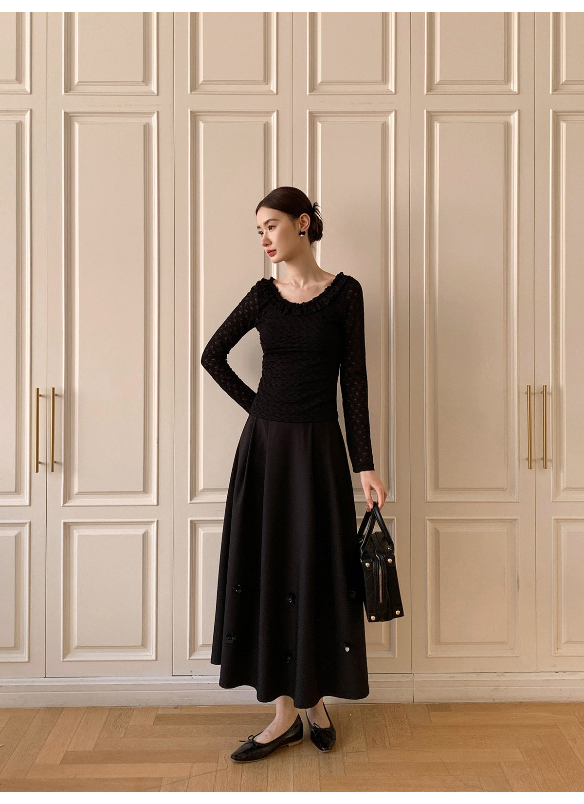 Xxning French Retro Handmade Beaded Sequin Half-Length Umbrella Skirt for Women, Stylish and Elegant, Slimming Long Skirt for Commuting