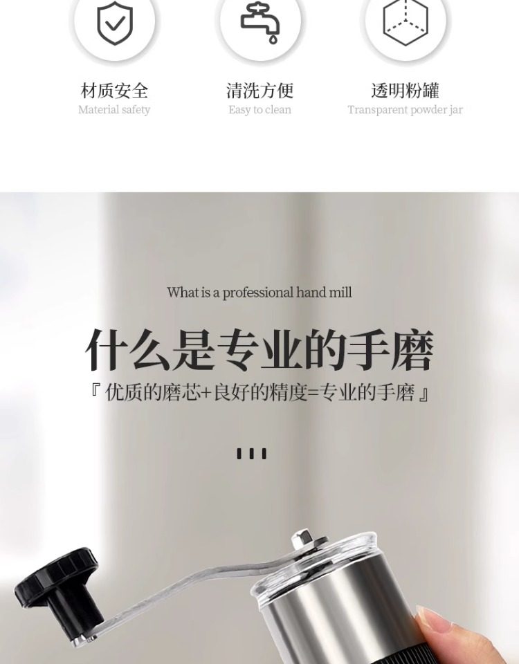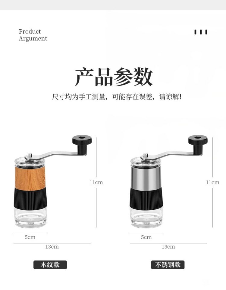 Color Classification Stainless Steel Color Grinder,Stainless Steel Color Grinder Comes with Brush,Stainless Steel Color Grinder + 50 Hanging Ears (Box) Free Gift,Stainless Steel Color Grinder Three-Piece Set with Brush,Wood Grain Color Grinder Comes with Brush,Wood Grain Color Grinder + 50 Hanging Ears (Box) Free Gift,Stainless Steel Color Grinder + Little Angel Gift,Wood Grain Color Grinder + Little Angel Gives Away Gifts,Stainless Steel Color Grinder + Bean Jar Free Gift,Wood Grain Color Grinder + Bean Jar Free Gift,Small Grinder [Comes with Cleaning Brush],Large Grinder [Comes with Cleaning Brush],Small Grinder + Glass Bean Powder Jar [Free Cleaning Brush],Large Grinder + Glass Bean Powder Jar [Free Cleaning Brush],Small Grinder + Folding Filter [Free Brush + Spoon],Large Grinder + Folding Filter [Free Brush + Spoon],Small Grinder + 50 Hanging Ears [Free Brush + Spoon],Large Grinder + 50 Hanging Ears [Free Brush + Spoon],First Generation-Stainless Steel Handle Model [Wood Grain],Second Generation - Wood Grain Large Handle Model,Second Generation-Marbled Large Handle Model,Stainless Steel Color Grinder,Stainless Steel Color Grinder Comes with Brush,Stainless Steel Color Grinder + 50 Hanging Ear Pieces (Box) Free Gift,External 35-Speed Thick and Thin Apricot White Hand-Cranked Model Comes with a Free Brush,External 35-Speed Thick and Thin Obsidian Black Hand-Crank Model Comes with a Free Brush,Stainless Steel Color Grinder Three-Piece Set with Free Brush,Wood Grain Color Grinder Comes with Brush,Wood Grain Color Grinder + 50 Hanging Ear Pieces (Box) Free Gift,Stainless Steel Grinder + Little Angel Free Gift,Wood Grain Color Grinder + Little Angel Gives Away Gifts,Stainless Steel Color Grinder + Bean Jar Free Gift,Wood Grain Color Grinder + Bean Jar Free Gift,Small Grinder [Comes with Cleaning Brush],Large Grinder [Comes with Cleaning Brush],Small Grinder + Glass Bean Powder Jar, Free Cleaning Brush],Large Grinder + Glass Bean Powder Jar [Free Cleaning Brush],Small Grinder + Folding Filter [Free Brush + Spoon],Large Grinder + Folding Filter [Free Brush + Spoon],Small Grinder + 50 Hanging Ears [Free Brush + Spoon],Large Grinder + 50 Hanging Ears [Free Brush + Spoon]