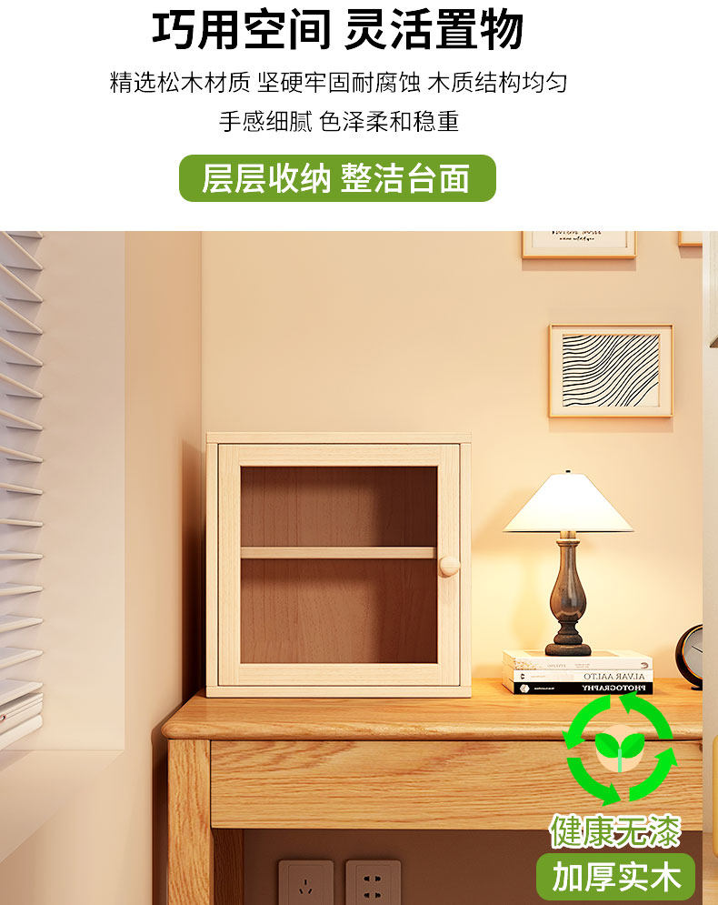 Solid Wood Desktop Bookshelf Integrated Small Bookcase Against the Wall, Narrow Cabinet for Home Use, Corner Storage Cabinet, Storage Cabinet