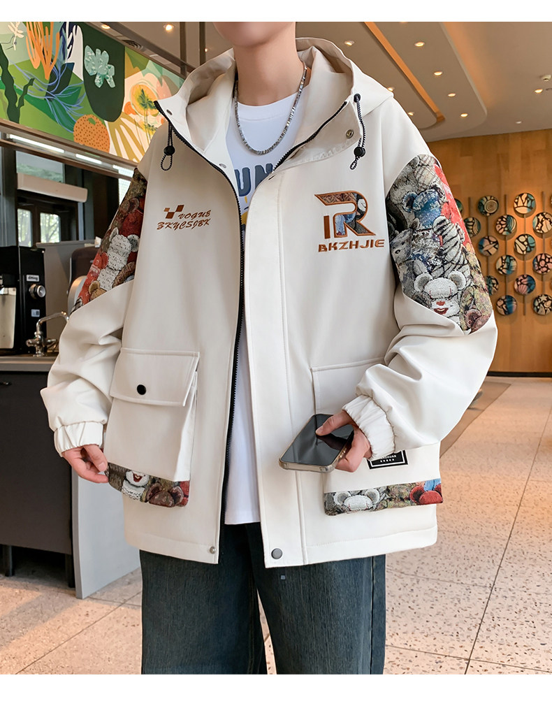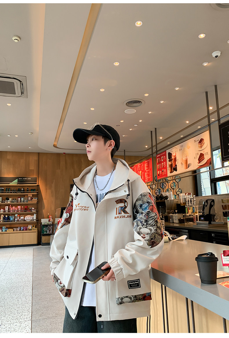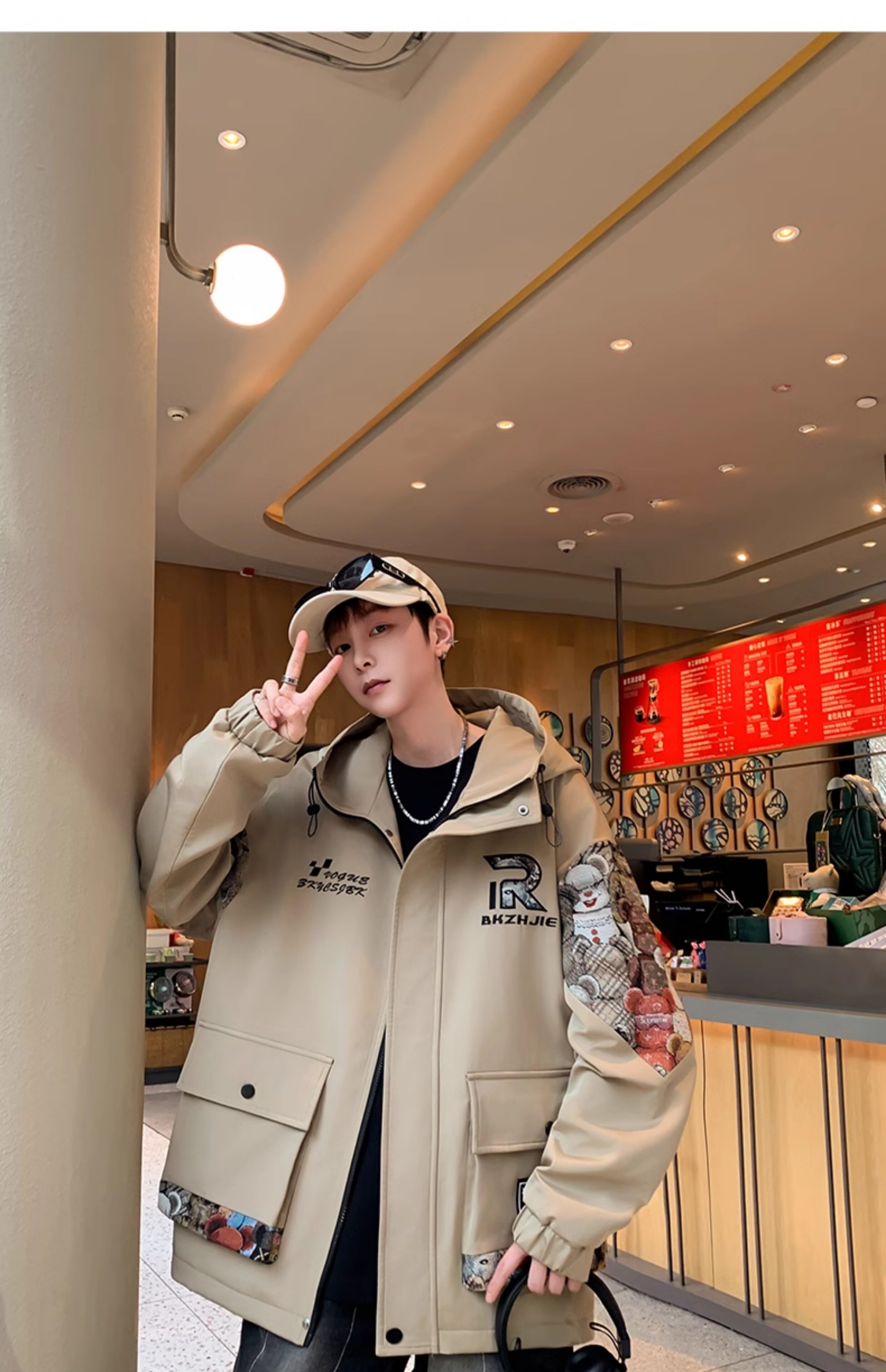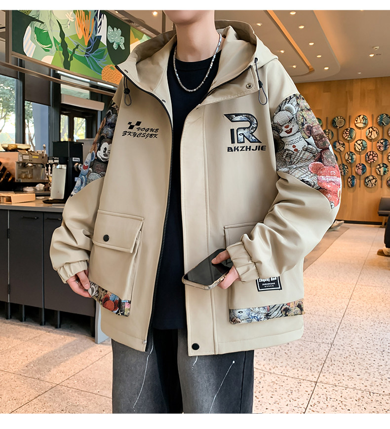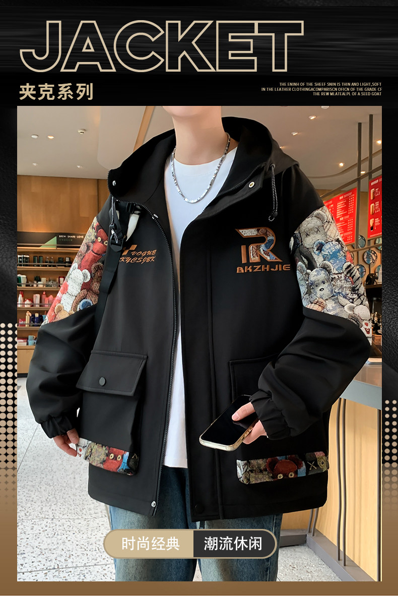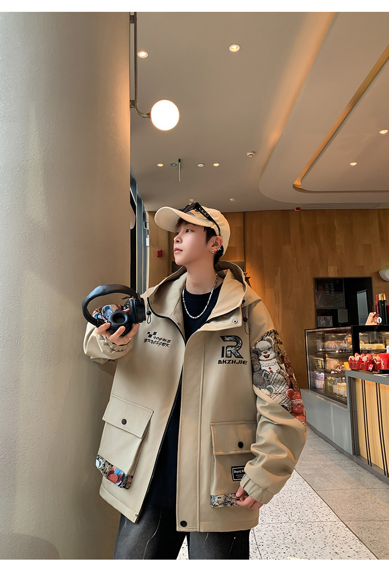 Work jacket men's spring and autumn new Hong Kong style hooded jacket trendy brand jacket teenagers handsome versatile top